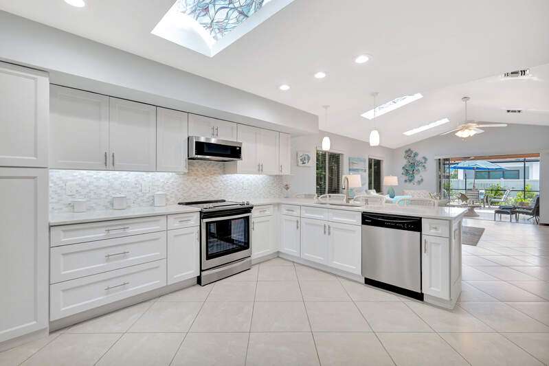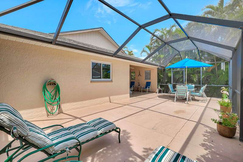 Welcome to the highly desirable location at the 500 Block on 94th Ave in Naples Park- NEVER FLOODED_ coveted X Flood Zone offers peace of mind, with numerous recent updates. Just .8 miles to Vanderbilt Beach and .8 miles to The Ritz Carlton in Naples, at 550 94th Ave N you will find this charming well maintained home, surrounded by million dollar properties, without the million dollar price tag. Great investment opportunity for AirBnB, with NO rental restrictions and NO HOAs- Or a fabulous place to call home year round or for your winter getaway. Thoughtfully redesigned light and bright kitchen (in 2018) opens to 2 separate living spaces, 3 bedrooms, 2 full baths, a 1 car garage with multiple car parking available in the drive. The back living area and primary bedroom sliders open to the 1272 sq ft screened lanai. Major upgrades have been recently done including roof replacement in 2021, AC in 2023 & water heater in 2024. Hurricane impact windows. Prime location near Mercato (about 1 mile featuring Whole Foods, Movie Theater, shopping and plenty of dining and nightlife options (events weekly) as well nearby conveniences such as Publix, WalMart, Trader Joes and Wiggins Pass State Park. With new projects like the multi million $ Ritz Carlton residences on the Corner of Vanderbilt Beach, redevelopment of multi million $ waterfront properties, and upscale new construction homes in Naples Park- you cant go wrong with obtaining your piece of paradise here for $875,000. Pride of ownership shines throughout with the home's well-kept, move-in-ready condition. 3D Tour available on request, video tour in the MLS shows ariel run from property to the white sandy beaches on the Gulf.