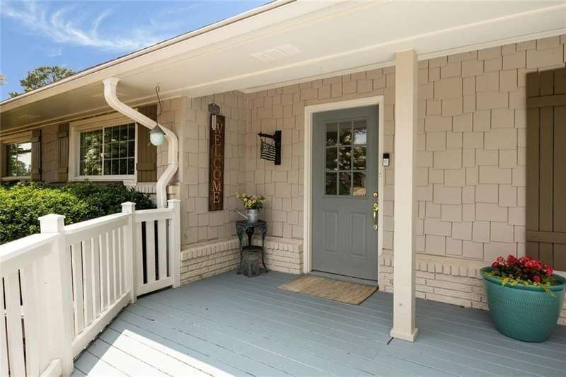 Welcome to your enchanting Cape Cod-inspired retreat, where a pristine white picket fence and a beautifully renovated exterior invite you into a cozy, single-level ranch filled with timeless elegance and incredible curb appeal. This charming home offers the perfect haven to enjoy all that nearby Downtown Roswell has to offer, nestled in a peaceful and private sanctuary. As you stroll through the picturesque front yard and approach the inviting porch, youll enter this lovely 3-bedroom, 2-bathroom four sides Brick ranch. The spacious formal dining room provides an ideal setting for holiday gatherings and special occasions. The seamless flow guides you into the formal living area, complete with a warm, inviting fireplace. From here, you can admire views of the expansive sunroom, which overlooks a large covered deck and a beautifully landscaped botanical backyard oasis. The well-appointed kitchen features elegant stone countertops and ample cabinetry, complemented by a walk-in laundry and pantry. There's also a dedicated office space that can easily be converted back into a garage, offering flexibility to suit your needs. Down the hall, you'll find a thoughtfully designed shared bathroom with dual vanities, along with two secondary bedroomsperfect for family or guests. The owner's retreat is privately situated at the rear of the home, boasting vaulted, beamed ceilings and serene views of the backyard. The spacious walk-in closet and en-suite bathroom make this a perfect retreat after a busy day. 2 Car garage can easily be converted back, as 1 side is currently being used as the interior office. Freshly painted and meticulously maintained, this delightful home is located just 1.5 miles from the vibrant heart of Downtown Roswell. Dont miss your opportunity to own a piece of heavenschedule your visit to 1100 Tuxedo Drive today! ESTATE SALE JUNE 13-14th.