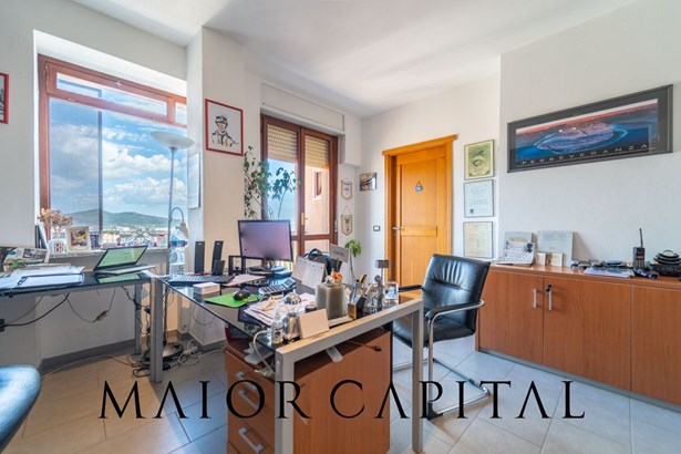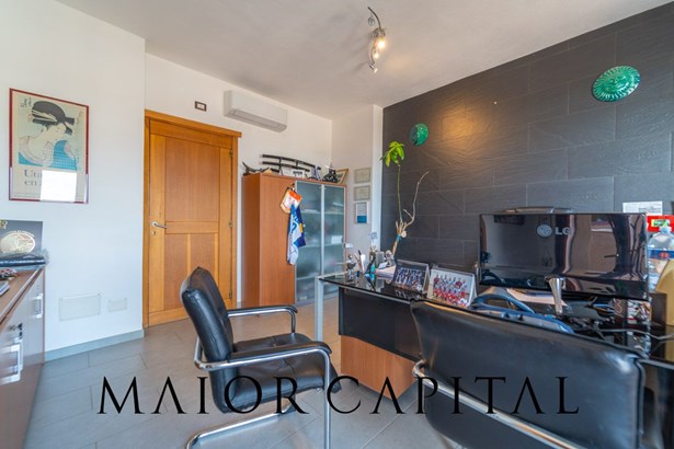 Currently used as an office, the property can be easily transformed into an elegant residence. The five bright and well-distributed rooms allow for full customization of the layout: living room with sea view, eat-in kitchen, bedrooms with walk-in closet, study, or relaxation area. The possibilities are endless, tailored to your lifestyle.