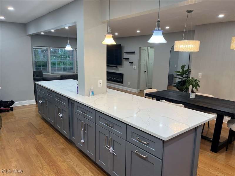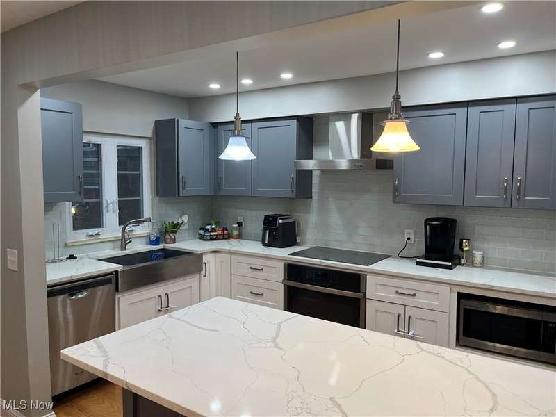 Welcome to Shaker Heights Ohio! 17007 Van Aken, unit 107 is a 2 bedroom, 2 full bathroom with in unit Laundry in Shaker Heights Ohio. Open concept living at its finest, the large kitchen counters run along side the living space to creature a functional and pleasing vibe. Oak Hardwood Floors throughout, other than the 2 full bathrooms. Carrara Marble for Counters, Backsplashes, Custom Cabinets, Stainless Steel Appliances, Built in Fireplace & mantle. Air Conditioning. Primary Bedroom features two closets and attached full bathroom with updated stall shower. Hallway features second full bathroom and stacked laundry, washer and dryer hidden in closet. Garage with one assigned parking space. Minutes away from public transit RTA and bus lines. Grocery, Retail, Library, Restaurants, Public Parks, Arts, Recreation, Medical and more.