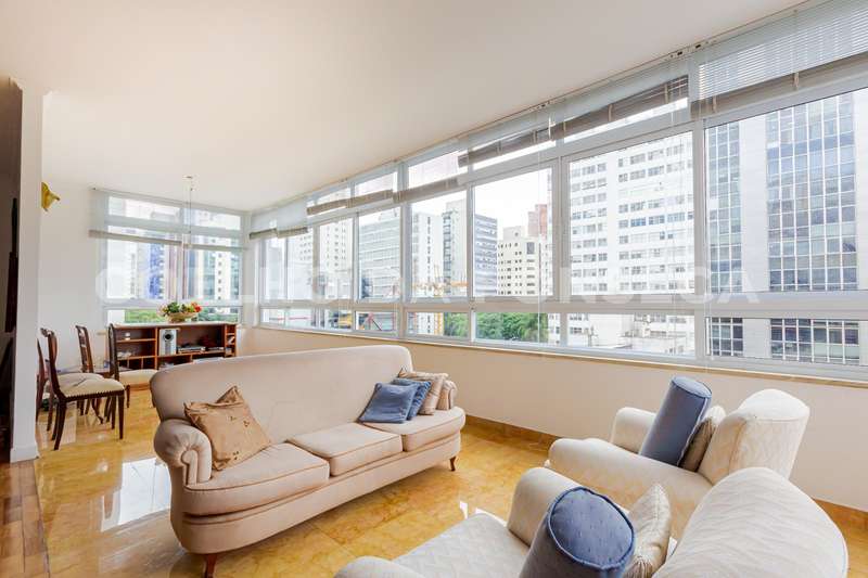 Apartamento para venda em prédio icônico e imponente, planta generosa, janelas antirruído, 3 livings, jardim de inverno, 4 dormitórios sendo uma suíte, 2 escritórios, cozinha ampla e dependência completa. 3 vagas de garagem e vagas para visitante.