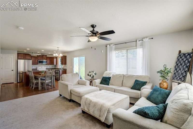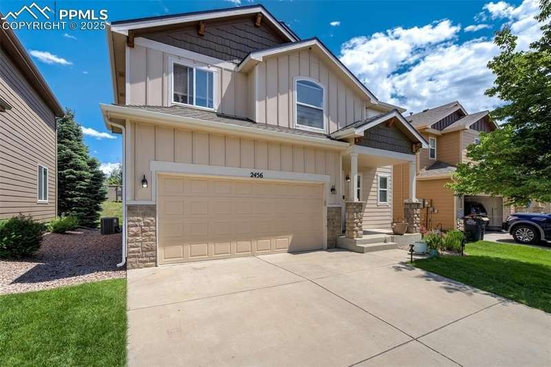 Welcome to your fresh-start in the centrally located Sierra Springs community of Colorado Springs — where the living is easy and the lawn maintenance is someone else’s problem. This 4-bedroom charmer has everything you need and nothing you don’t: walk in and see the brand new carpet underfoot (smells like fresh beginnings!). The open floor plan that keeps everyone connected, whether it’s family game night or dinner with friends. The kitchen is equipped with a large island, pantry, new deep sink, and appliances. Upstairs you'll find 4 bedrooms, to include the Primary Suite- which has vaulted ceilings, an attached bathroom, and spacious walk-in closet. Another full bathroom for the secondary bedrooms, and a dedicated laundry room finish out the upstairs. The attached 2-car garage can fit your vehicles, gear, or maybe your in-laws if they visit too long. The HOA covers exterior lawn maintenance, trash removal, and even snow removal — yes, seriously. Driveway? Sidewalk? It's all taken care of, while you sip cocoa indoors. Central A/C to keep you cool when the Colorado sun forgets it’s at altitude. Sierra Springs is the kind of neighborhood where the lawns look sharp and the streets stay clear (thanks, lawn & snow gods), and you actually have time to enjoy the Colorado lifestyle you came for. Come see it before someone else snaps it up!