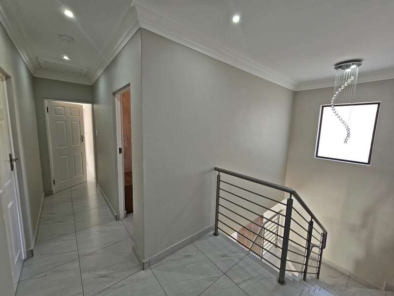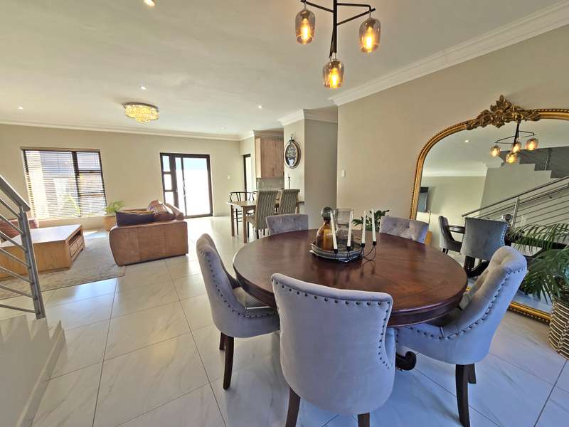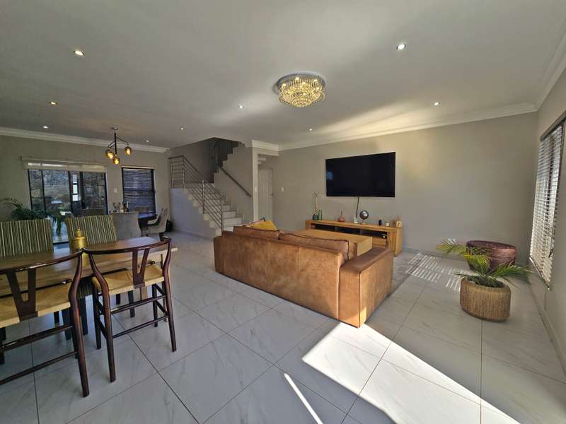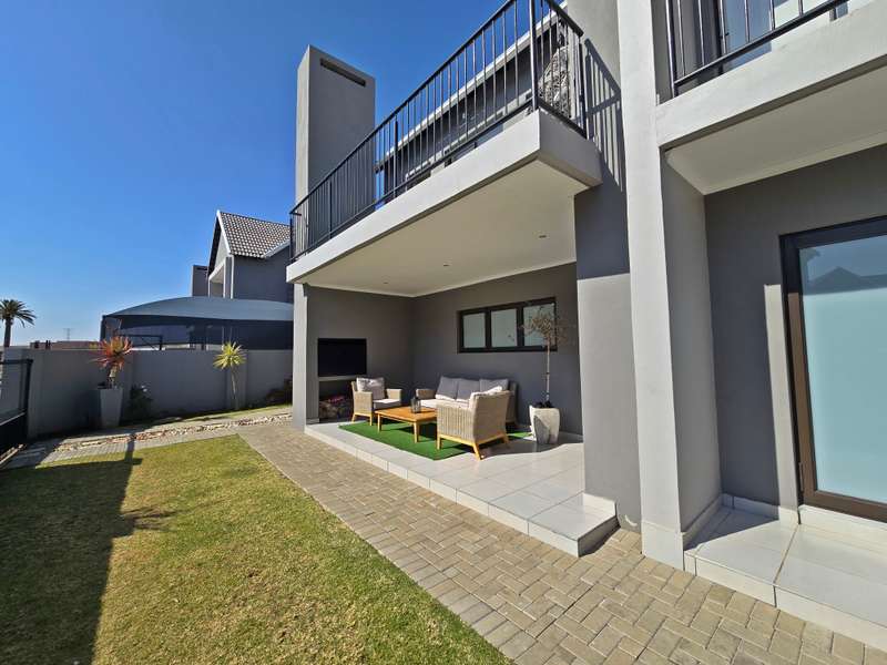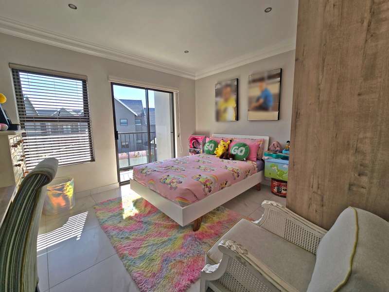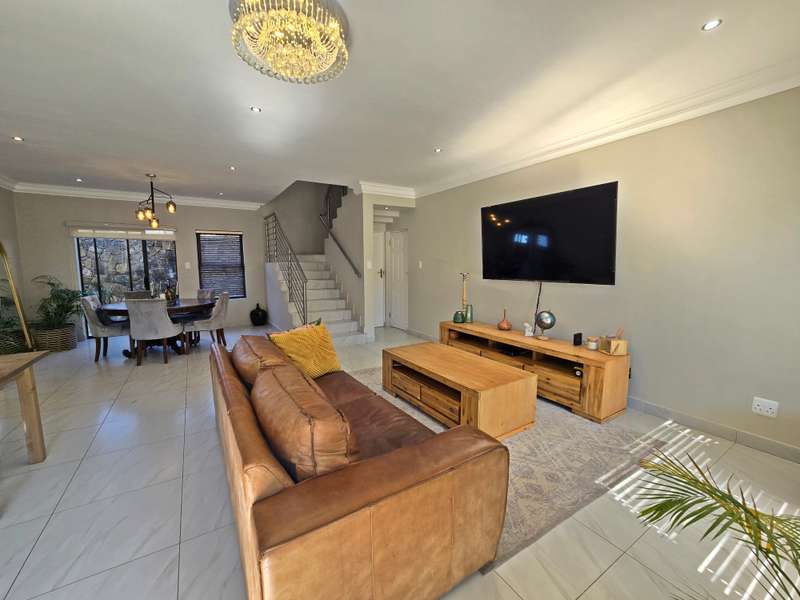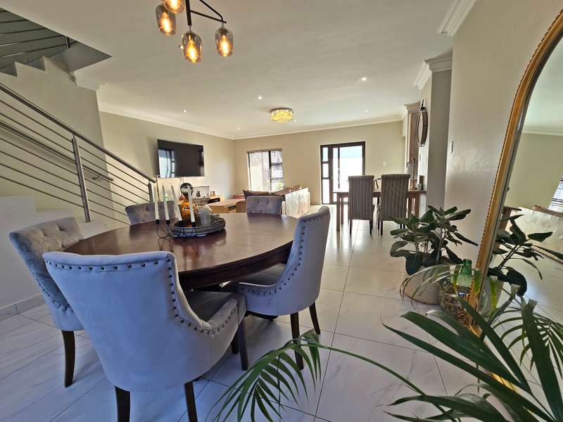 Exclusively listed Welcome to this contemporary townhouse located in the sought-after neighborhood of Shellyvale. Upon entering, you'll be greeted by an expansive open-plan layout that seamlessly combines the lounge and dining areas, creating an inviting space for both relaxation and entertainment. The modern kitchen is a chef's delight, featuring built-in cupboards, an eye-level oven, a gas stove, and ample space for all your appliances. The ground floor includes a comfortable bedroom and a bathroom, perfect for guests or family members who prefer single-level living. Venture upstairs to discover a cozy pajama lounge that opens onto a balcony, providing a perfect spot for morning coffee or evening relaxation. The upper level also boasts two additional bedrooms, each with its own balcony, and a full guest bathroom. The highlight of the upstairs is the spacious main bedroom, complete with a walk-in closet, a luxurious full bathroom, and a private balcony for ultimate privacy and tranquility. This home is designed for entertaining, with a built-in braai area downstairs, ideal for hosting family and friends. Additionally, the property includes a double electric garage, ensuring secure and convenient parking. This townhouse combines modern design with functional living spaces, making it the perfect home for those seeking style and comfort in Shellyvale.