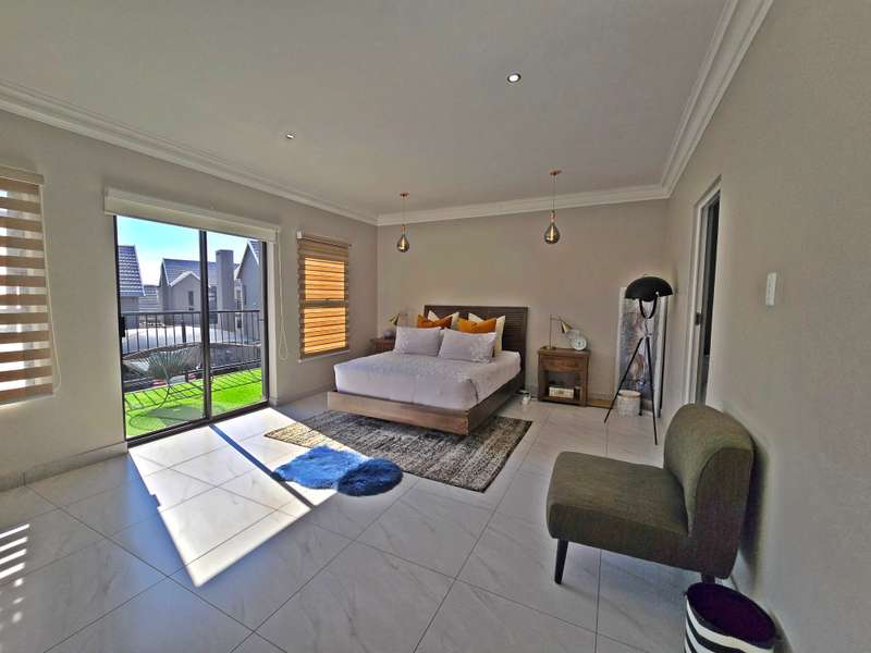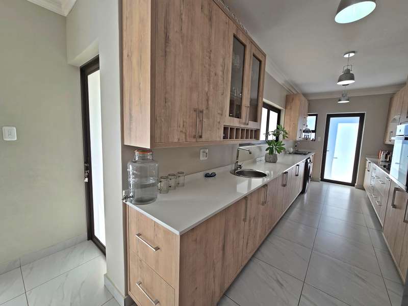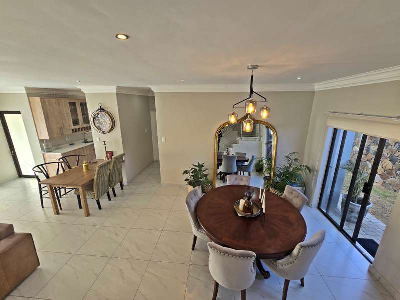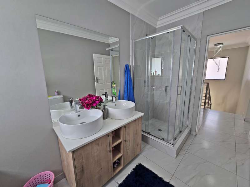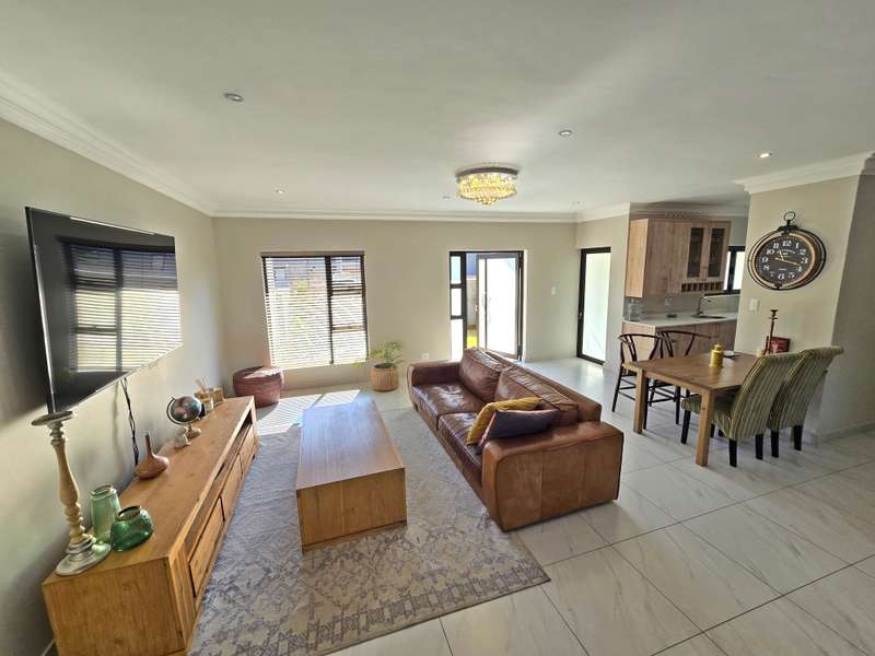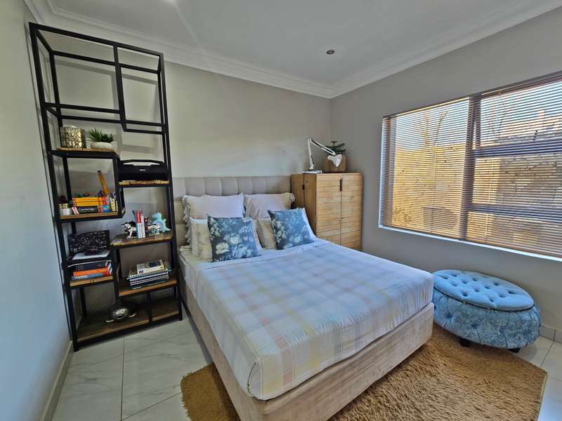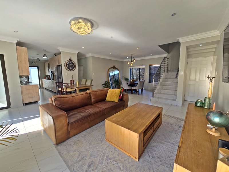 Exclusively listed Welcome to this contemporary townhouse located in the sought-after neighborhood of Shellyvale. Upon entering, you'll be greeted by an expansive open-plan layout that seamlessly combines the lounge and dining areas, creating an inviting space for both relaxation and entertainment. The modern kitchen is a chef's delight, featuring built-in cupboards, an eye-level oven, a gas stove, and ample space for all your appliances. The ground floor includes a comfortable bedroom and a bathroom, perfect for guests or family members who prefer single-level living. Venture upstairs to discover a cozy pajama lounge that opens onto a balcony, providing a perfect spot for morning coffee or evening relaxation. The upper level also boasts two additional bedrooms, each with its own balcony, and a full guest bathroom. The highlight of the upstairs is the spacious main bedroom, complete with a walk-in closet, a luxurious full bathroom, and a private balcony for ultimate privacy and tranquility. This home is designed for entertaining, with a built-in braai area downstairs, ideal for hosting family and friends. Additionally, the property includes a double electric garage, ensuring secure and convenient parking. This townhouse combines modern design with functional living spaces, making it the perfect home for those seeking style and comfort in Shellyvale.