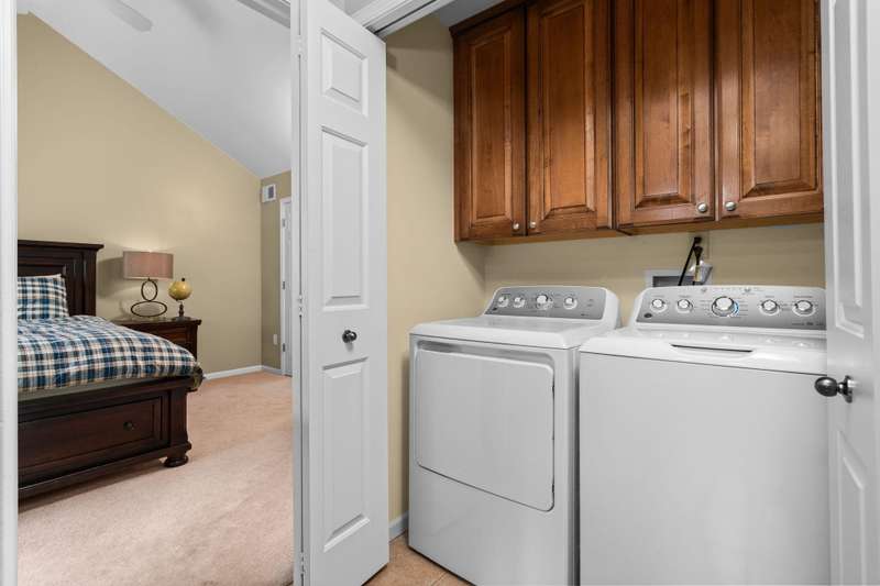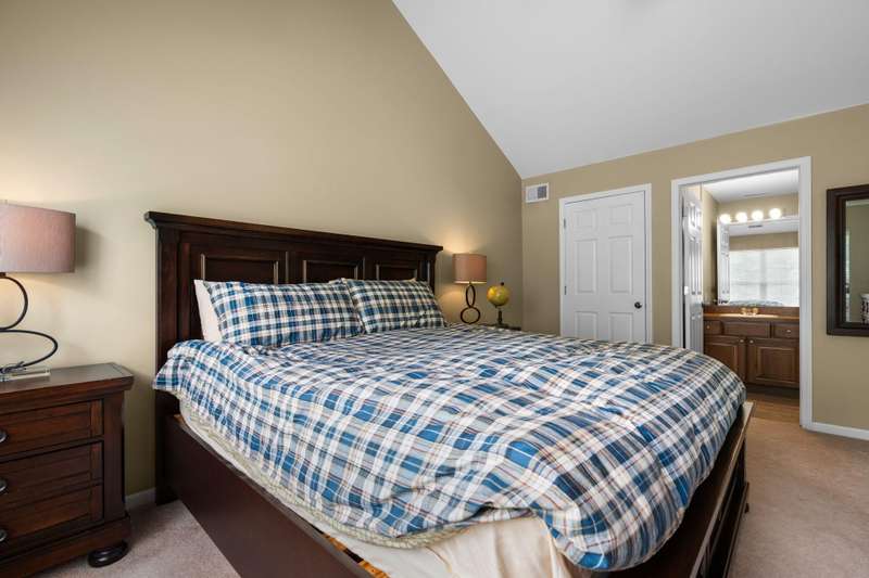 Welcome to this inviting condo in Rosewood Village! Relax in a spacious living room featuring a cozy gas fireplace. The fantastic primary suite offers a large walk-in closet and a pleasant bath, while the light-filled second bedroom sits conveniently beside the shared bathroom. The stylish kitchen includes 42'' cabinets and a newer refrigerator (2022). Enjoy the private deck and attached garage. Community amenities feature an inground pool, clubhouse, and gym. Recent updates: garage door operator (2021), washer & dryer (2023), and roof (2024). A/C installed in August 2025. Move in and enjoy!