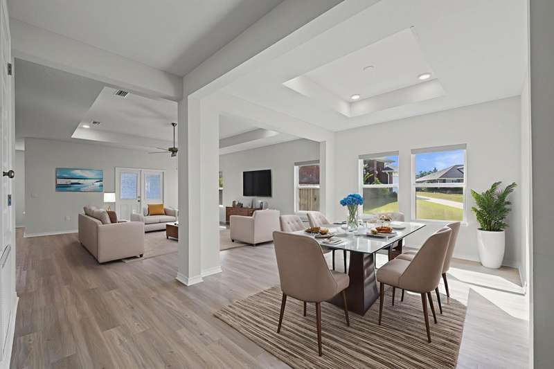 Welcome! This BETTER THAN NEW 4-bedroom, 3.5-bathroom home offers the perfect blend of modern comfort and classic Florida charm. Situated on a corner lot close to parks and schools, the home's welcoming facade and well-designed floor plan are ideal for both family living and entertaining. As you step inside, you are greeted by high ceilings and a large foyer, then enter into an open-concept living area with abundant natural light, creating a bright and airy atmosphere. The spacious kitchen features granite countertops, stainless steel appliances, a HUGE center island, large pantry and ample cabinet space. The adjacent breakfast nook and dining room provide a seamless flow for hosting dinner parties or enjoying casual family meals. The main suite offers a large bedroom with sitting area and a luxurious en-suite bathroom complete with a large closet, soaking tub, a separate glass-enclosed shower, and dual vanities. The three additional bedrooms are generously sized, providing comfort and privacy for family members or guests. The front bedroom and middle bedroom share a Jack-and-Jill style bath. And on the opposite side of the hall is actually a complete additional guest suite with a den, large bedroom and bath. Adjacent to the laundry room is a convenient half-bath ensuring there's space for everyone. The large 3 car garage with 2 doors and lots of storage adds to the value and convenience at this home. The fenced backyard is perfect for summer barbecues, with a covered patio area and plenty of room for a pool or play set. The serene setting offers a peaceful escape from the hustle and bustle, while still being conveniently located near Cantonment's amenities. Enjoy the best of suburban living with easy access to local schools, parks, shopping and major roadways. With its combination of a 3-way split design and practical features, this home is a must-see for anyone looking for their dream home in Cantonment, Florida.