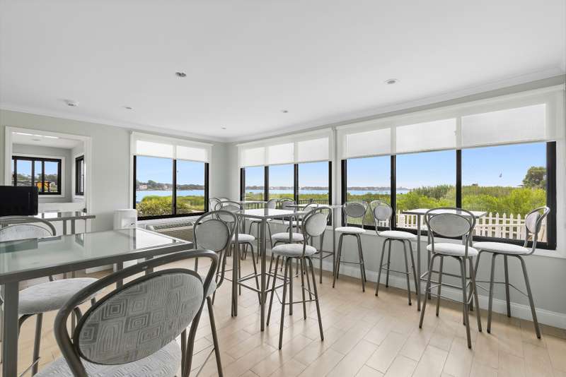 This waterfront hotel features 27 rooms, pool, clubhouse, and a dock area that faces due south. The clubhouse has a gym, business room and breakfast area. Multiple rooms have views of Tiana Bay. Untapped potential for events, and weddings, creating new streams of revenue. This turnkey operation is conveniently located, with ample parking. The adjacent waterfront lot that can accommodate 11,000 +/- sf of additional space is also available for sale.