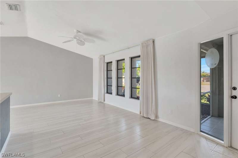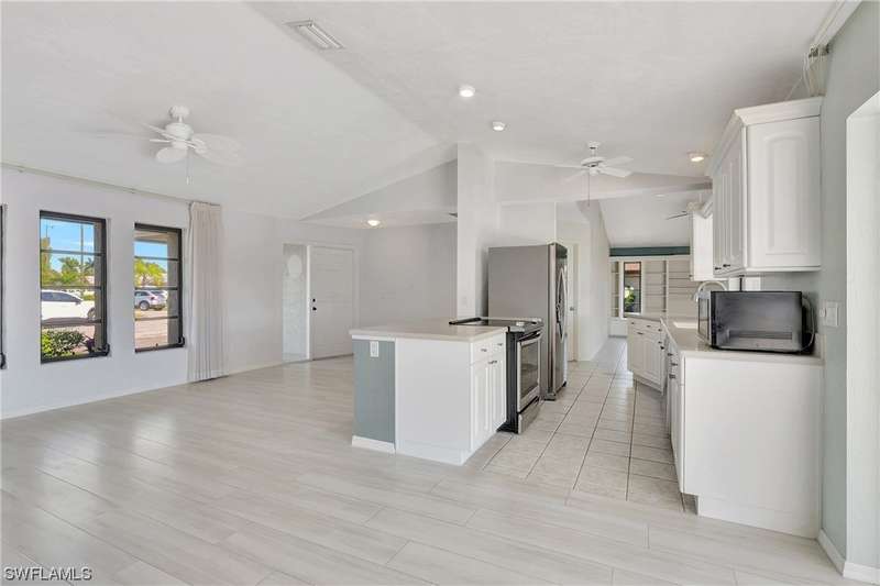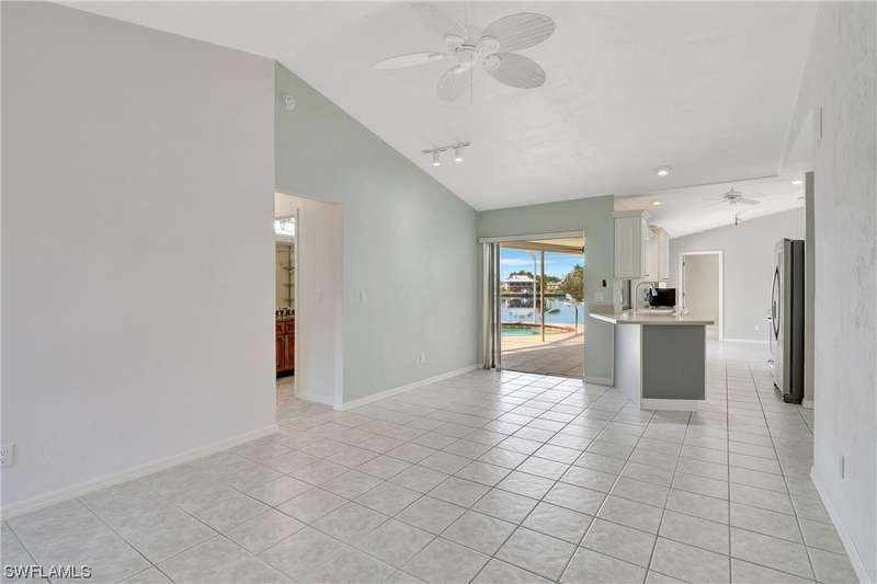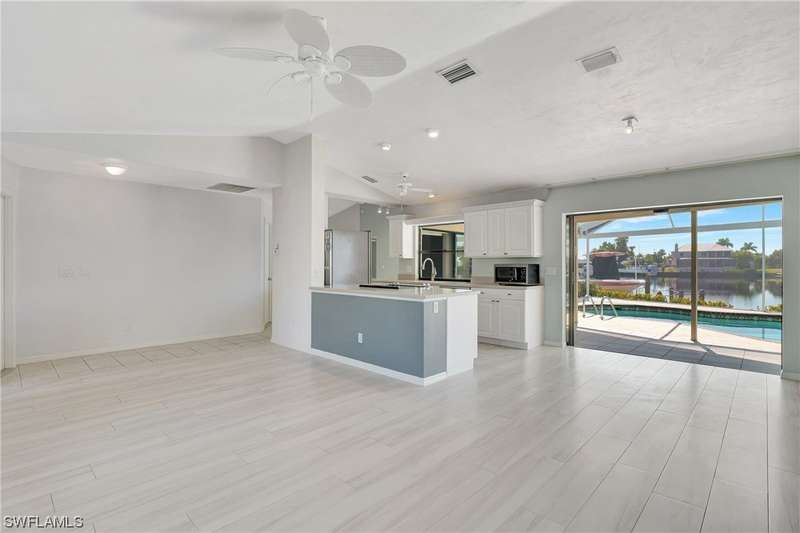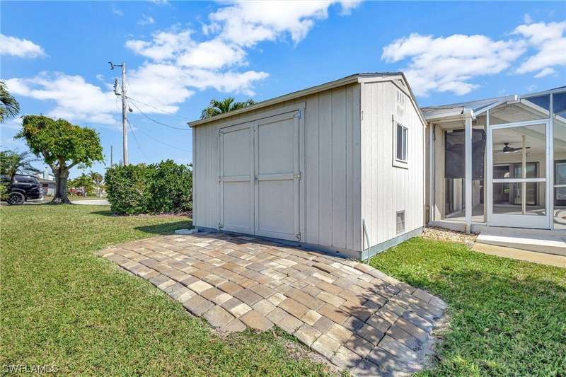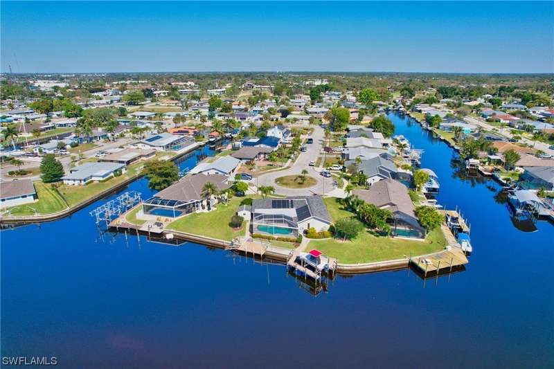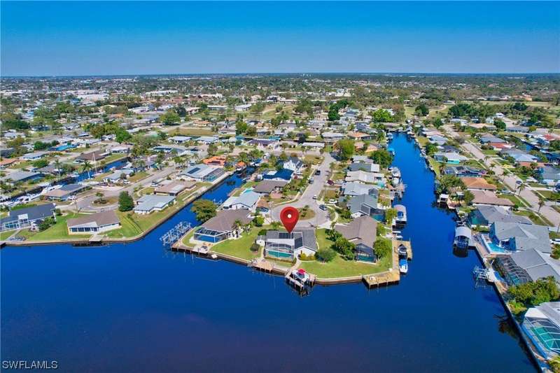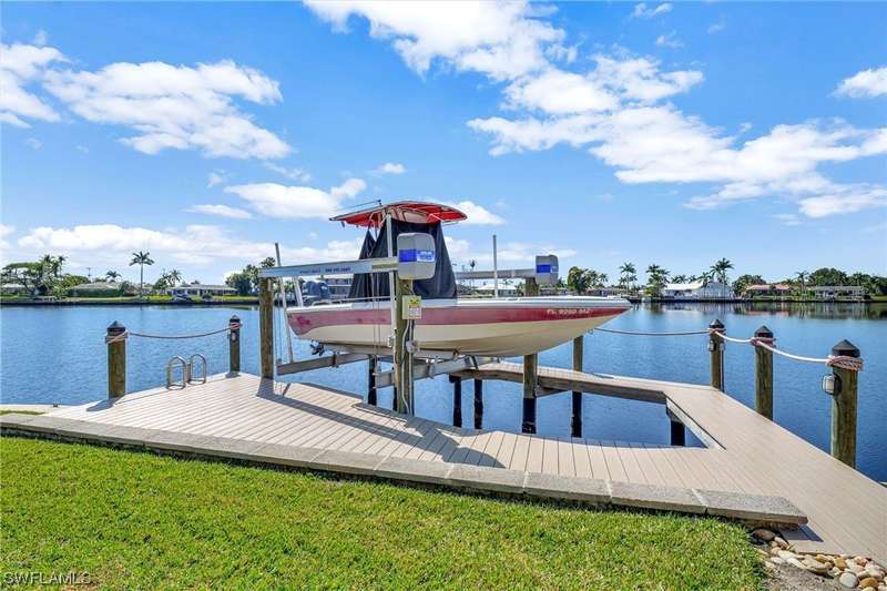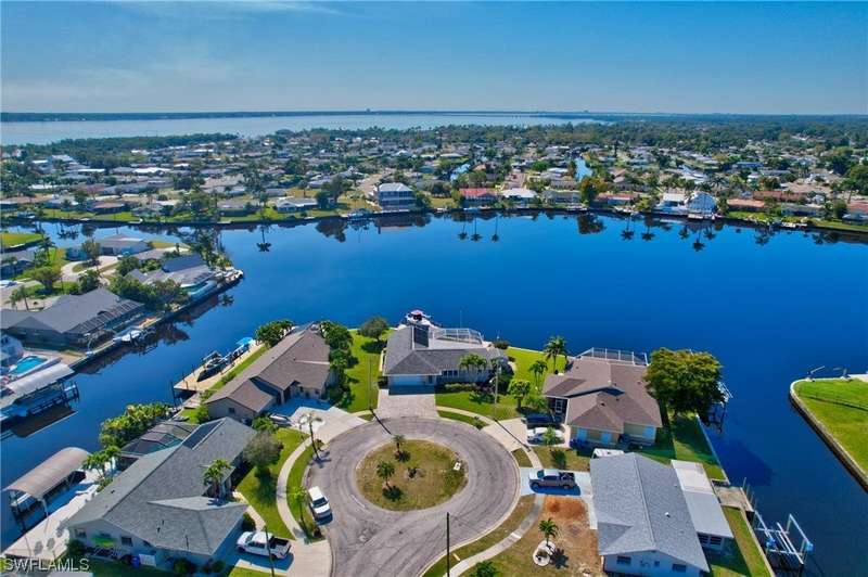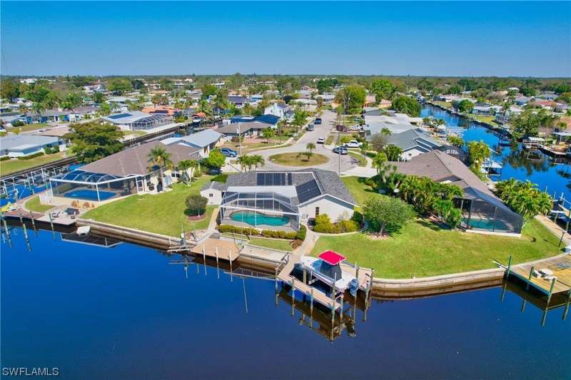Talk about a Million Dollar View! Boaters Paradise, SAILBOAT GULF ACCESS home situated on Little Lake Michigan that has never flooded from storms. Southern Exposure and Breathtaking Sunrise & Sunset Views! Feel like you are on vacation everyday with water views from every room. Large fully open sliders in Great Room, Breakfast Nook, and Primary Bedroom, all lead to expansive covered pool deck and SALTWATER POOL, warm year-round with SOLAR HEAT. So much storage with Walk-in closets in all 3 bedrooms, Large closets in both baths, and Full attic above house and garage. Both Bathrooms were recently updated to include Fresh Paint, New Fixtures and New Lights. A Quick Boat ride gives you access to some of the Best Beaches In SW Florida, Including Fort Myers Beach & Sanibel Island. The lot is .29, just shy of a Triple Lot located on the end of a Quiet Cul-de-sac! BRAND NEW HVAC added 2025. New Roof added 2018 ( fully inspected after Ian), Driveway Expanded with Sealed Pavers (2019) accommodates 3+ vehicles, Solar Heated Pool (2019), New 10K Boat Lift with Composite Decking and Captains Walk (2021),Custom Built Tough Shed/Workshop 10x12 (2019), Waterproof Porcelain Tile in Formal living & Primary Bedroom (2020), Luxury Vinyl Plank added to both Guest Bedrooms (2024), Gorgeous Kitchen Backsplash (2024), Gutters Extended (2019), Tesla Charging port in extra deep Garage. Less than 5 Miles to Downtown Fort Myers Entertainment District. No flooding during Ian or other hurricanes . Pet Free / Smoke Free Home! No HOA fees. Homes directly on the lake are Rarely Available, schedule a showing today!