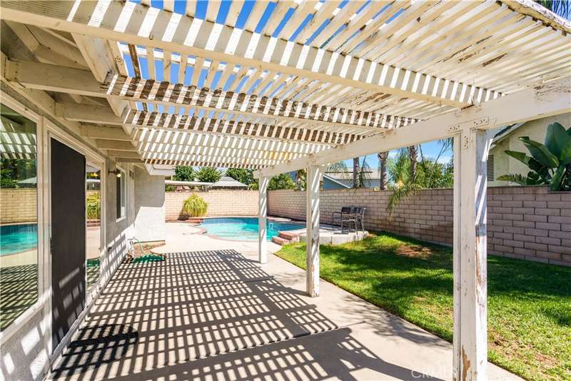 Step outside to a private, spacious oasis with a refreshing pool and a lattice covered patio to keep you shaded and cool. The serene, outdoor setting is ideal for relaxation or special gatherings with family and friends.