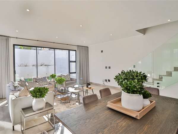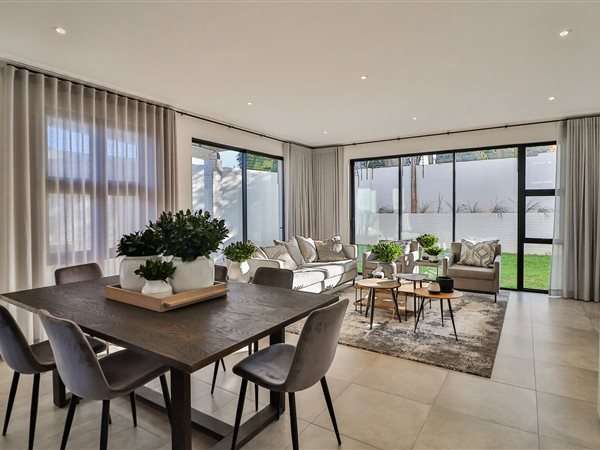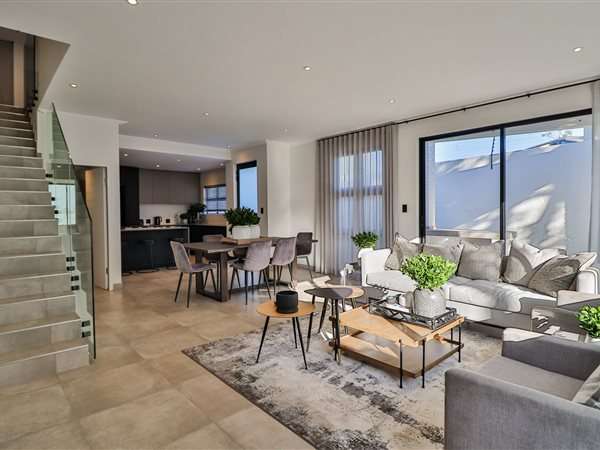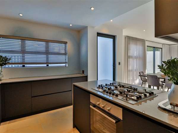 Experience the epitome of modern living in this magnificent, state-of-the-art cluster, offering one of the finest lock-up-and-go lifestyles in the area. Key Features: - Modern open-plan kitchen with exquisite finishes, gas stove, and scullery with space for three appliances - Spacious open-plan lounge and dining area - Stack doors leading to an expansive wrap-around garden, perfect for outdoor entertaining and ideal for installing a swimming pool Upstairs: - 3 en-suite bedrooms, each with its own unique charm - Main bedroom boasts a distinctive design with trusses in the ceiling and ample storage space - Meticulously designed bathrooms exuding luxury and sophistication - Additional features include a guest cloakroom and provision for air conditioning in the downstairs area and main bedroom Property Highlights: - Prepaid electricity for convenience and cost-effectiveness - Double automated garage for secure parking - Pet-friendly complex for animal lovers - 24-hour surveillance cameras for enhanced security - Sectional title property - Rates: R1,500 | Levy: R3,500 Don't miss this rare opportunity to own a piece of luxury living. Contact Johanna to schedule a viewing .