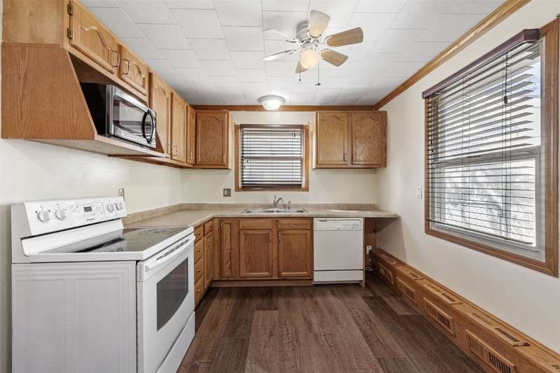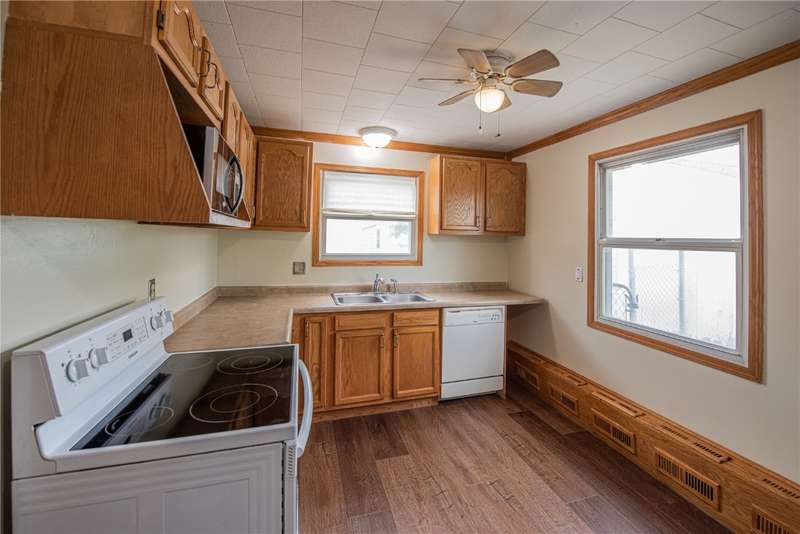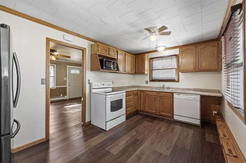 Charming 3-bedroom, 1-bath home with a 1-car detached garage. Featuring low-maintenance vinyl siding, hard surface floors throughout, and a spacious fenced-in backyard with a large patio—perfect for entertaining or relaxing. All appliances stay, making this home move-in ready. Conveniently located near schools, shopping, restaurants, and just minutes from I-380. Immediate possession available!