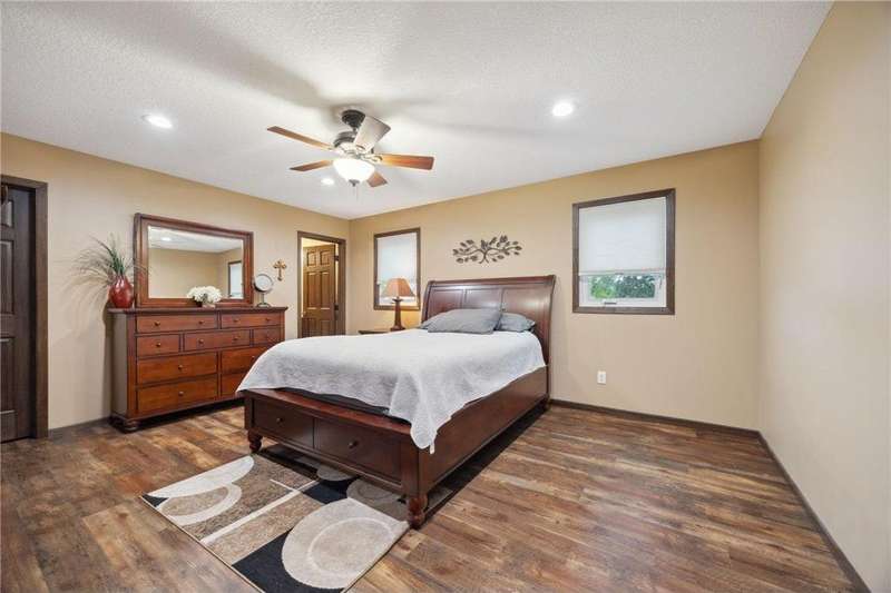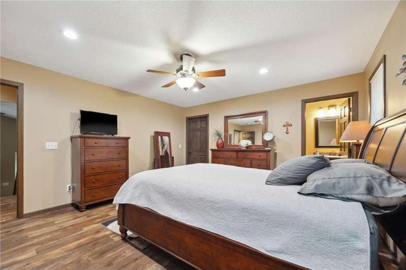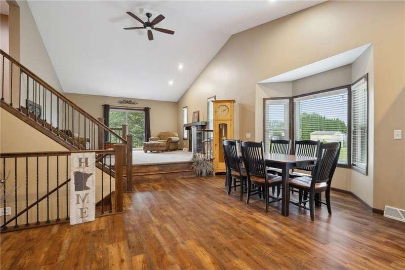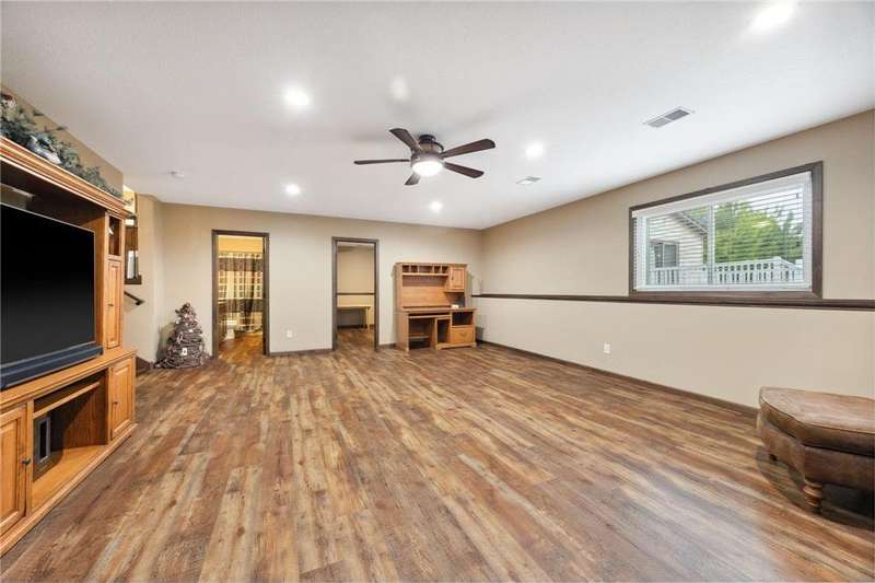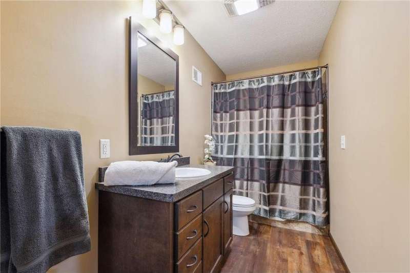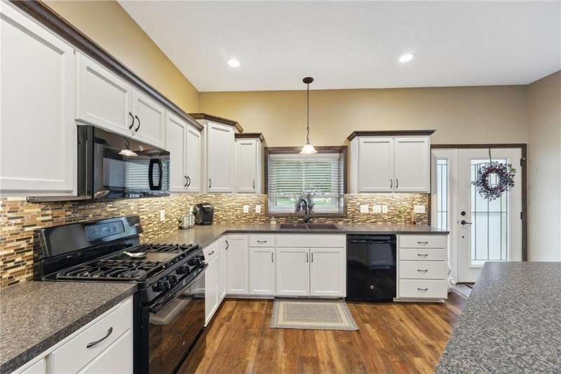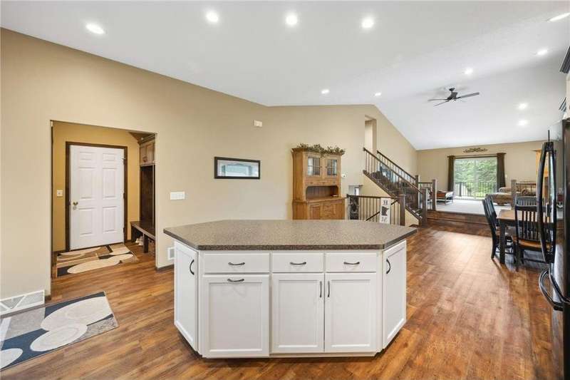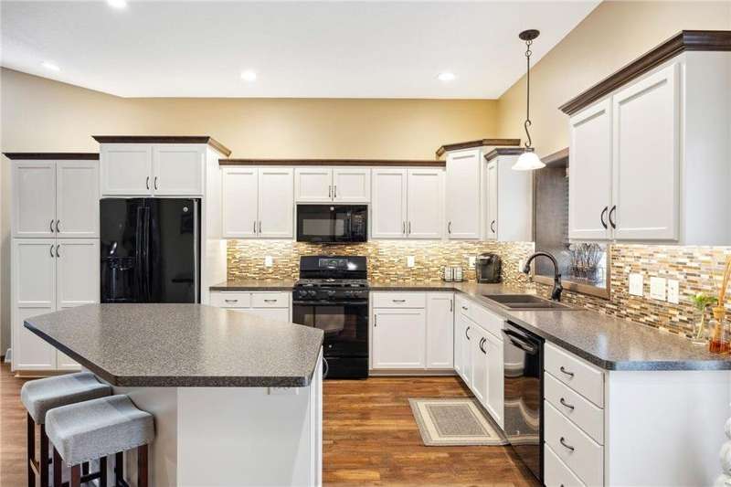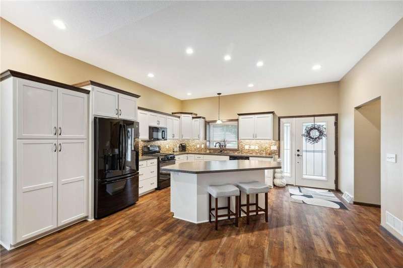 Beautifully updated 3 bedroom 3 bath home- move-in ready! Fully remodeled by Richard Larson in 2017–2018, this stunning home features an open-concept main level with a stylish kitchen, center island, dining area, and cozy living room with gas fireplace. Includes a main-level half bath and mudroom lockers. Upstairs offers a primary suite with tiled ¾ bath, a second bedroom, and full bath. Lower level boasts a spacious family room with stone fireplace, third bedroom, and additional ¾ bath. Bonus flex space in the basement plus ample storage. New windows 2024. Enjoy the maintenance-free deck, paver patio with firepit, shed, and oversized 2-stall garage.