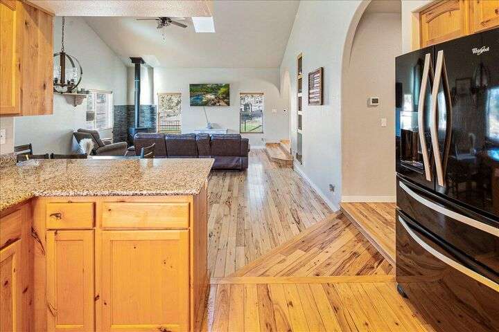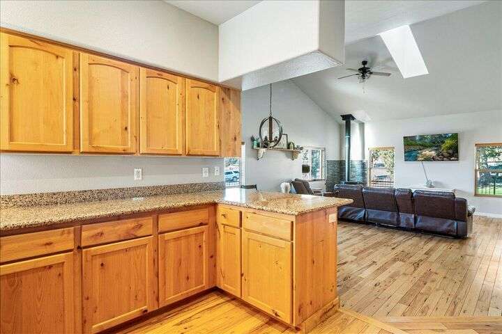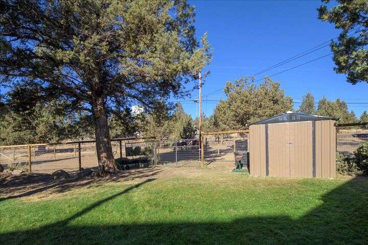 Custom Single-Level Home with Shop & Acreage in Crooked River Ranch! Beautifully crafted 3-bedroom, 2- bath single-level home featuring vaulted ceilings, new woodstove, and stunning Hickory hardwood floors. The kitchen is a delight with knotty alder cabinetry, granite countertops, and a spacious layout ideal for entertaining. Additional highlights include a central vacuum system and an attached 2-car garage. Outdoors, enjoy a paved asphalt driveway, full RV hookups, and a massive 36x50 shop equipped with 50-amp and 220v power-perfect for hobbies, storage and toys. The fully fenced and gated 1.01-acre property offers two separate fenced areas, ideal for horses or livestock. Experience comfort, function, and country living at its best in this Crooked River Ranch gem.