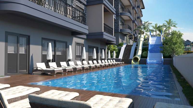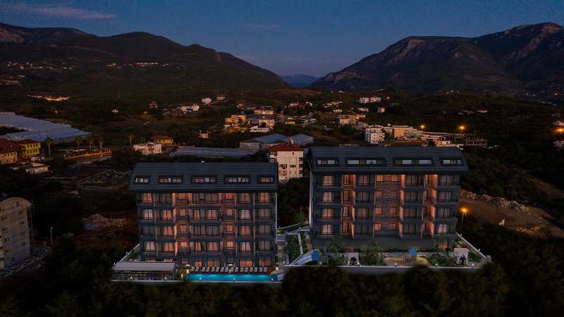 Apartments for sale in Alanya Turkey are 1.9 km to the hospital, 2 km to the beach, 2.8 km to the stadium, 3 km to the shopping center, 6 km to the city center, and 35 km to Alanya-Gazipasa Airport.