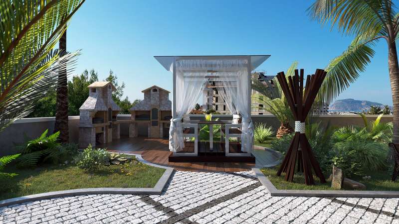 Stylish apartments are located in Oba Neighborhood, a planned development area in Alanya. Oba Neighborhood is one of the favorite areas for investment, with newly built shopping centers, hospitals, private schools, and luxury housing projects. The project is close to the under-construction shopping centers and Alanyaspor Stadium.