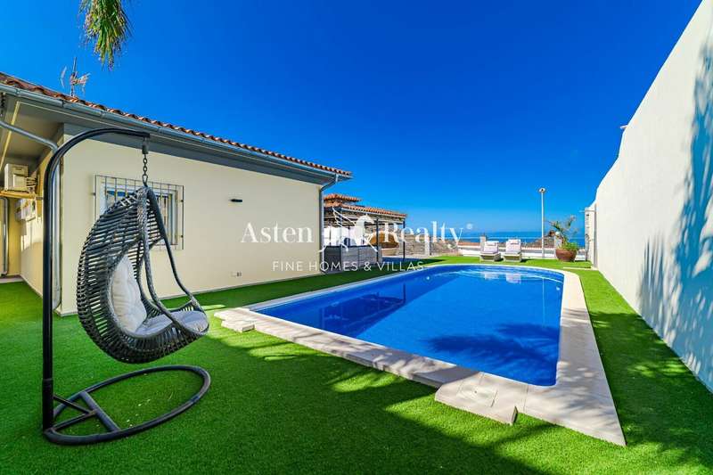 Villa with 3 bedrooms with fitted wardrobes, 4 bathrooms, large living room and modern kitchen with the latest appliances. Built in 2011 on a plot of 812 m2. The constructed area of the villa is 385 m2, spread over one floor, surrounded by a tropical garden and overlooking the ocean and the neighbouring island of La Gomera. The property has a barbecue area, a large private swimming pool, an outdoor gym and outdoor bathrooms to enjoy the good climate of the area. Furthermore, there is an impressive garage of 100 m2 for 4 vehicles. Possibility of installing a lift from the garage, as well as building a second floor.