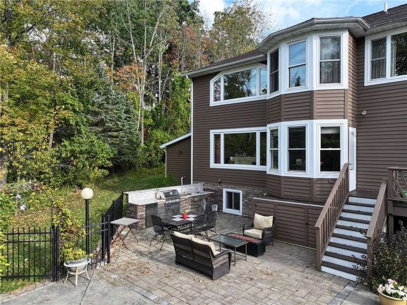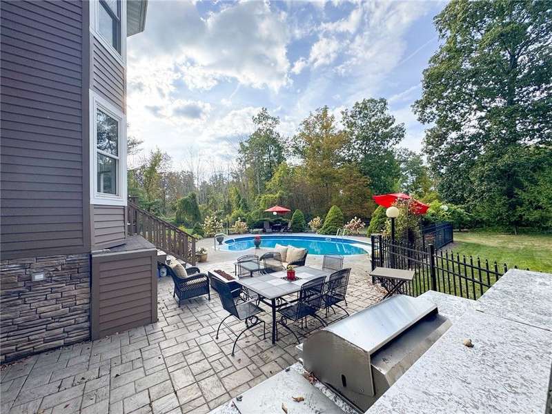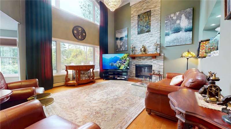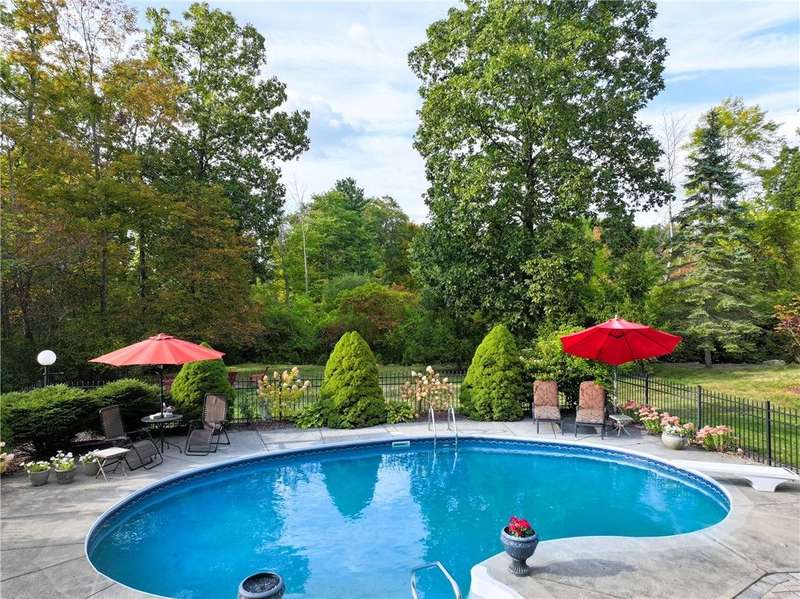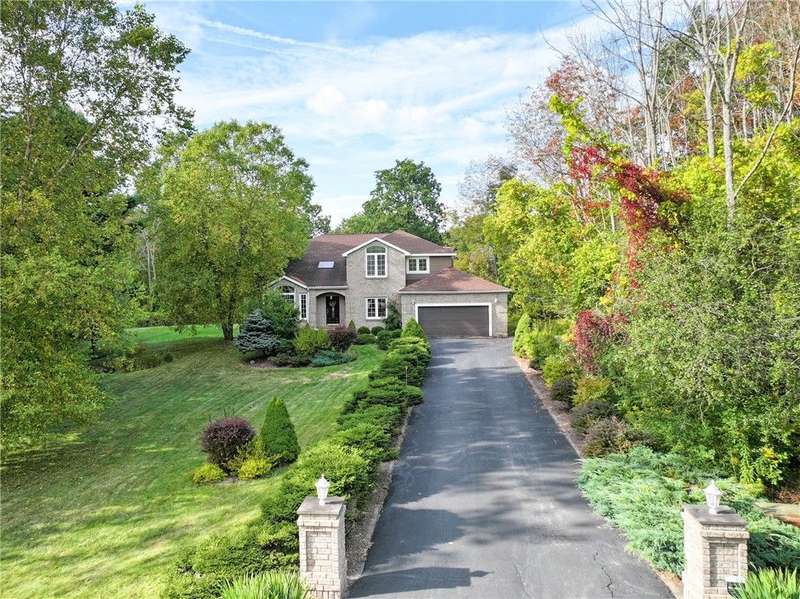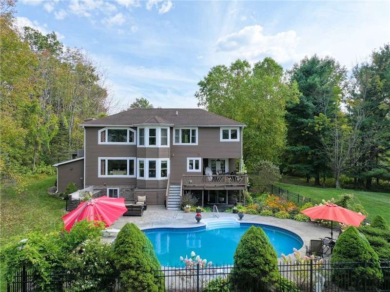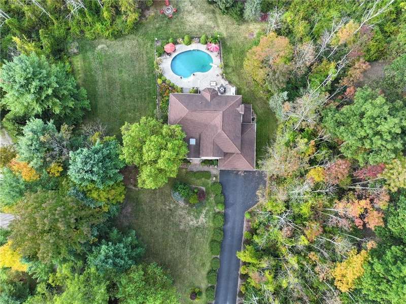 Welcome to one of the most coveted homes in the highly sought-after Olde Town Village Subdivision?an estate crafted with care, quality, and elegance by a local builder for his own family. Every inch of this property has been thoughtfully designed, blending timeless craftsmanship with luxurious modern living.Set on 1.4 acres of beautifully landscaped grounds, this residence makes a statement the moment you arrive. Brick light posts frame the driveway, lush gardens welcome you in, and the sense of arrival is unmistakable. Inside, soaring cathedral ceilings in the foyer and living room flood the space with light, while gleaming hardwood floors create a seamless flow throughout the main level. The living room, anchored by a striking fireplace and framed with oversized windows, opens effortlessly into the gourmet kitchen and cheerful breakfast nook?perfect for both everyday living and entertaining. Upstairs, three spacious bedrooms provide comfort and flexibility, while the primary suite is a true retreat. A sunlit sitting area invites relaxation, and the spa-inspired bath is designed for pure indulgence with heated tile floors, a multi-head glass shower, a whirlpool tub, and a generous walk-in closet. The walk-out lower level expands the lifestyle possibilities with a fully finished space that includes a cozy gas fireplace, full bath, and even a private sauna. Whether you envision a media room, guest quarters, or a gathering space, this level offers endless versatility with direct access to the backyard. Step outside to your private resort-like sanctuary. Mature trees and curated flower beds surround the sparkling in-ground pool and expansive paver patio. Host summer BBQs with the built-in outdoor kitchen, gather around the fire pit under the stars, or simply lounge poolside in complete privacy. This extraordinary property combines sophistication, warmth, and amenities that elevate every day into something truly special. A rare opportunity to own a home that offers not just a place to live?but a lifestyle to love.