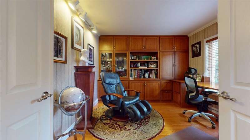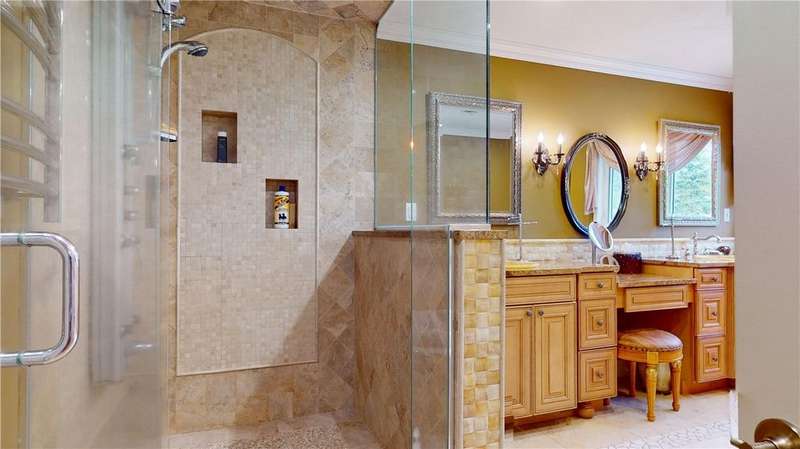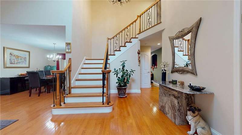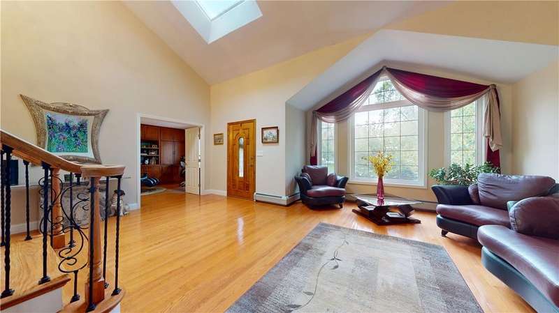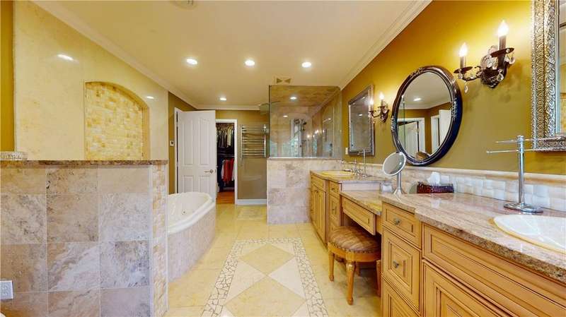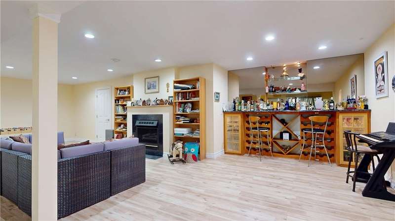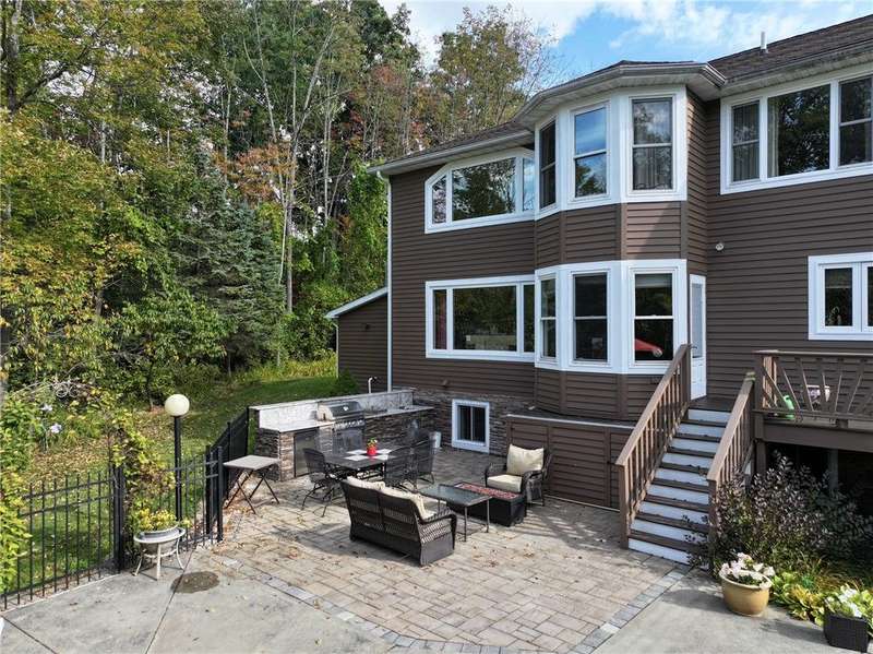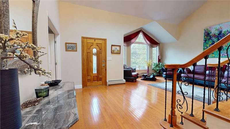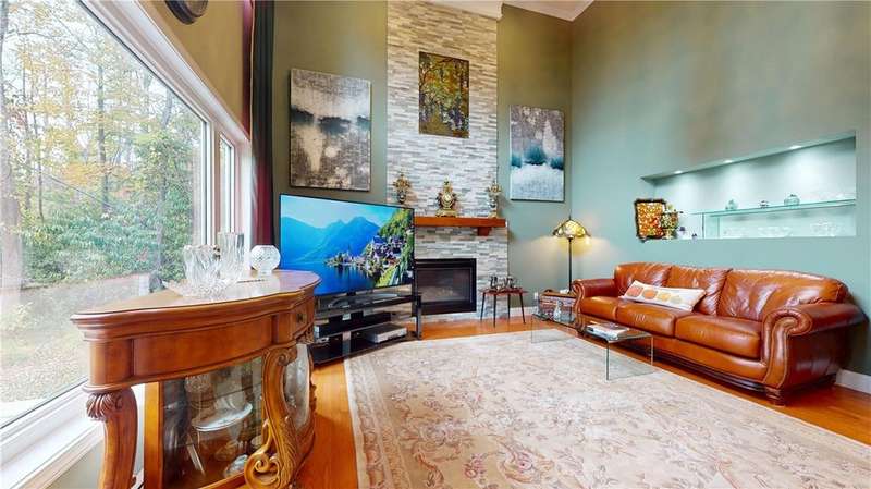 Welcome to one of the most coveted homes in the highly sought-after Olde Town Village Subdivision?an estate crafted with care, quality, and elegance by a local builder for his own family. Every inch of this property has been thoughtfully designed, blending timeless craftsmanship with luxurious modern living.Set on 1.4 acres of beautifully landscaped grounds, this residence makes a statement the moment you arrive. Brick light posts frame the driveway, lush gardens welcome you in, and the sense of arrival is unmistakable. Inside, soaring cathedral ceilings in the foyer and living room flood the space with light, while gleaming hardwood floors create a seamless flow throughout the main level. The living room, anchored by a striking fireplace and framed with oversized windows, opens effortlessly into the gourmet kitchen and cheerful breakfast nook?perfect for both everyday living and entertaining. Upstairs, three spacious bedrooms provide comfort and flexibility, while the primary suite is a true retreat. A sunlit sitting area invites relaxation, and the spa-inspired bath is designed for pure indulgence with heated tile floors, a multi-head glass shower, a whirlpool tub, and a generous walk-in closet. The walk-out lower level expands the lifestyle possibilities with a fully finished space that includes a cozy gas fireplace, full bath, and even a private sauna. Whether you envision a media room, guest quarters, or a gathering space, this level offers endless versatility with direct access to the backyard. Step outside to your private resort-like sanctuary. Mature trees and curated flower beds surround the sparkling in-ground pool and expansive paver patio. Host summer BBQs with the built-in outdoor kitchen, gather around the fire pit under the stars, or simply lounge poolside in complete privacy. This extraordinary property combines sophistication, warmth, and amenities that elevate every day into something truly special. A rare opportunity to own a home that offers not just a place to live?but a lifestyle to love.