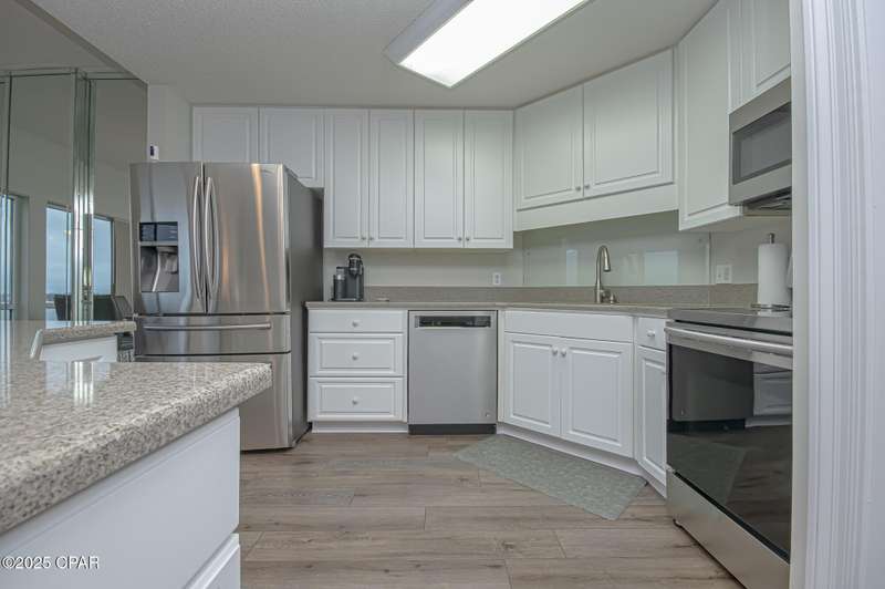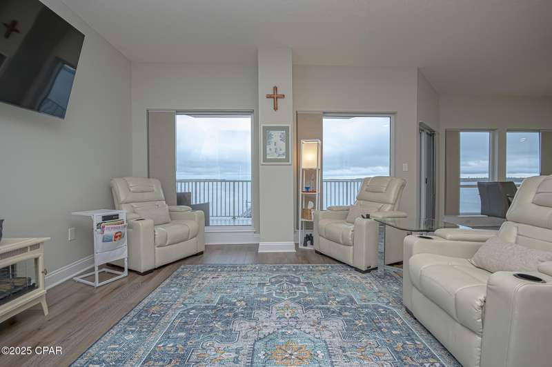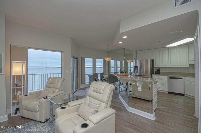 This two-bedroom, two-bath beauty offers you breathtaking bay views from the fourth floor. Nestled in a secure, gated community, it boasts spacious living areas. The perfect blend of luxury and tranquility awaits! Take in the charm, comfort and bask in natural light flooding through expansive windows, highlighting the pristine condition and exquisite design of your spacious haven. Step into luxury where every corner reflects elegance and serenity. The balcony is perfect for entertaining guests or having family gatherings. Carpets in bedrooms recently replaced. An air scrubber AC unit that removes oders and allergens recently added with digital thermostat and is under maintenance contract 10 year warranty on parts till 2033. Unit recently painted. Marina Bay is a gated community that is well maintained. Complex that offers - a covered parking garage space for each unit. You must see the bay front private beach, pool, hot tub and covered boat slips, owner-owned only. A community room that can be reserved for private use plus there is a social gathering every Friday evening so neighbors can get to know each other better! Come and See this beauty! Buyer will have first right of refusal to lease and eventually buy one of two boat seller owned slips: one of which is covered with a lift and one which has a 20,000 lb lift uncovered.