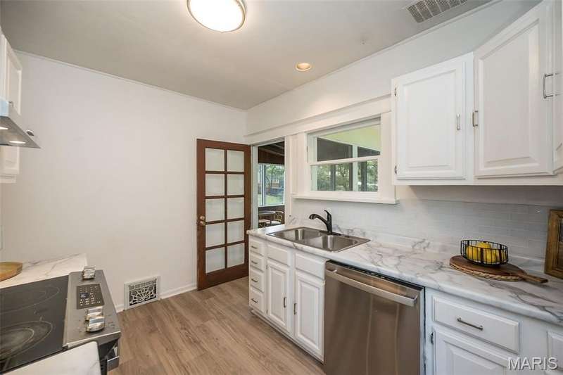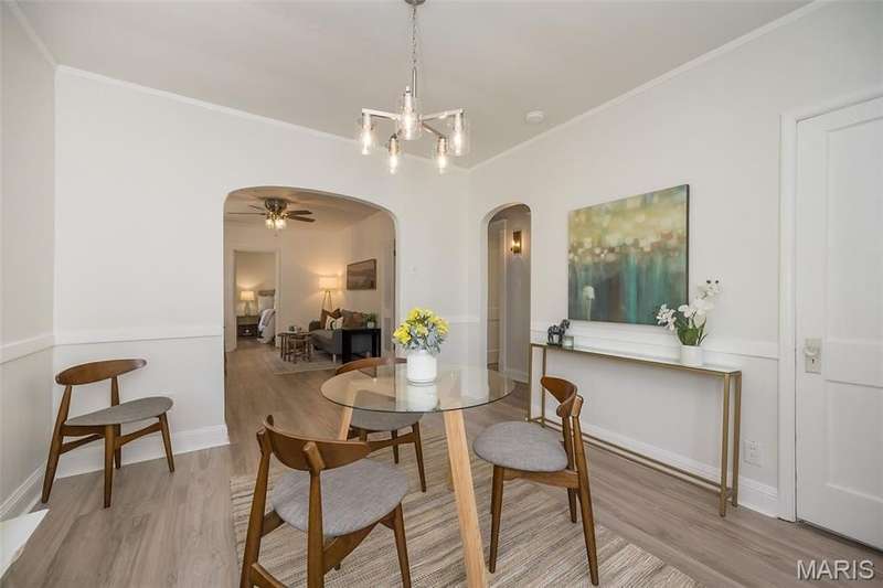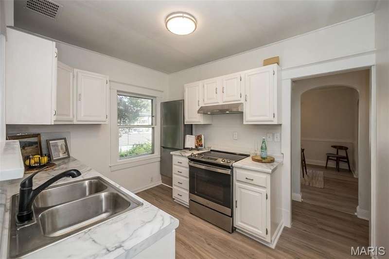 Historic. Classic. Fabulous! Downtown Kirkwood under $300K?! YES INDEEDY! Don't miss this AMAZING opportunity to acquire this ADORABLE bungalow that radiates charm, warmth and style! It's picture perfect curb appeal is the ideal precursor to what lies ahead: welcoming front porch that spans the front of the home, spacious sun-lit living room with French doors, separate dining room with chic chandelier, timeless corner cabinet and large coat/storage closet. The kitchen offers crisp white cabinetry, neutral countertops, stylish subway backsplash and designer stainless appliance package. There are (2) bedrooms one being the primary which has a large walk-in closet and private pocket doors that separate Bedroom #2 which is also nicely sized. The updated bath has a newer adult height shaker cabinet vanity and refreshed tub/shower combo. Did you see the screened-in porch?! AWESOME! Relax and unwind while taking in the beautiful back yard that has rich lush foliage and lovely mature trees. The walk-out basement has loads of potential as well as the pull-down attic area off the hallway. PRIMO LOCATION: 6 houses from Kirkwood Park and Aquatic Center/Pool, 3-4 blocks from restaurants, shopping, Farmer's Market, YMCA, Library and MUCH more! Don't delay...own a piece of Kirkwood at 410 W. Madison Ave. in the heart of it all! https://www.410westmadison.com/