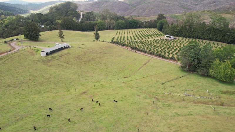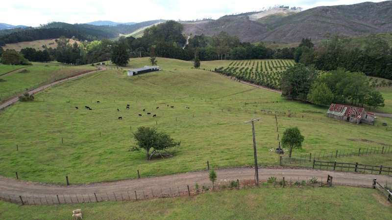 This property spans 8.6 hectares with 2.5 hectares dedicated to a Tahitian lime orchard. A very pretty and private must-see little block with a lovely stony bottled river as the front boundary. The 2.5 hectare stand of limes contains 600 four-year old trees and 400 two year and 100 one year old trees spaced five metres apart and the rows are six metres apart. The vendors advise the Tahitian bearss variety produced just under 10 tonnes last season and the season before, eight tonnes. The vendors also ran 20 weaner calves through to yearlings, with a few sheep for extra income. With two houses, there is also the option for extra income by renting out one of the cottages, or accommodation for extended family. Come and enjoy the good life. Private, tranquil and pretty.