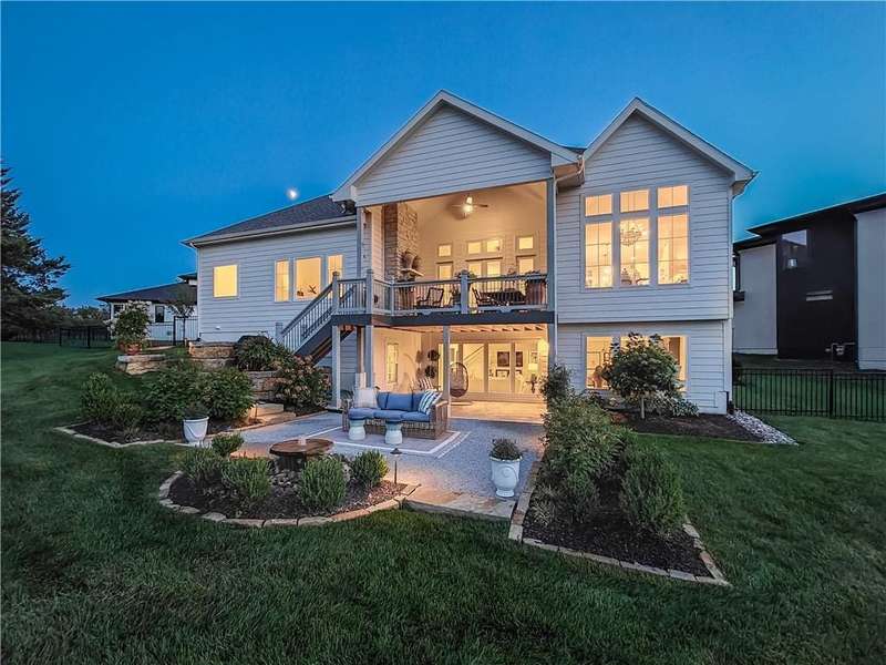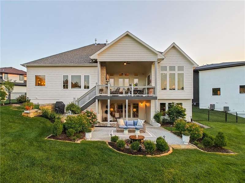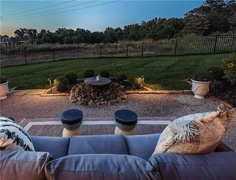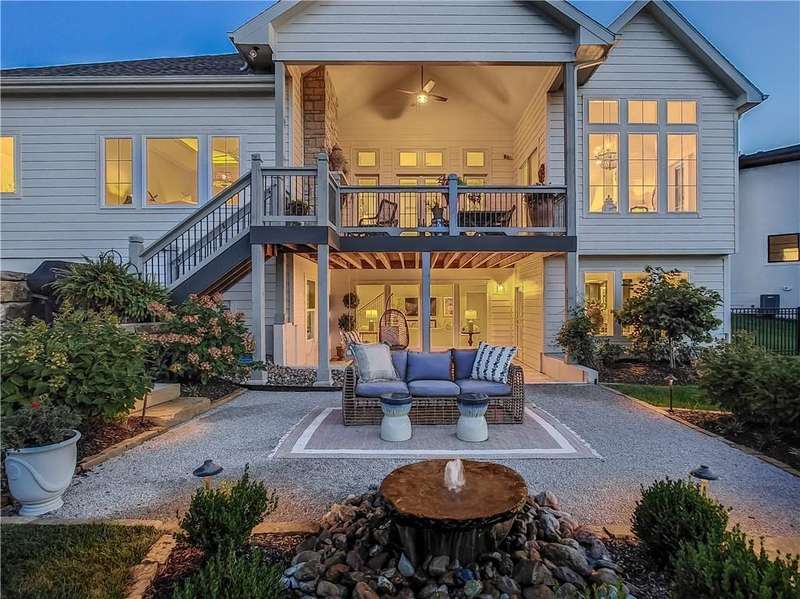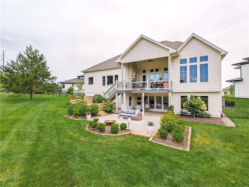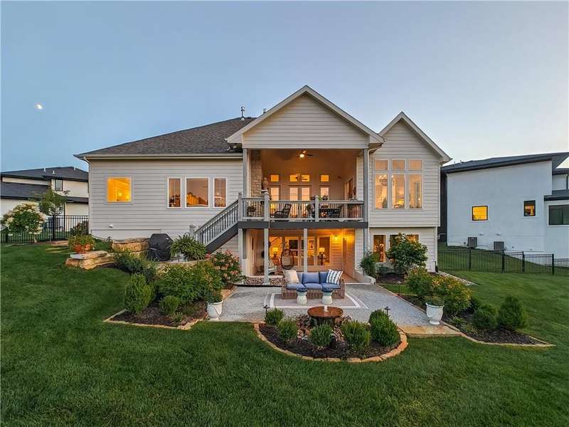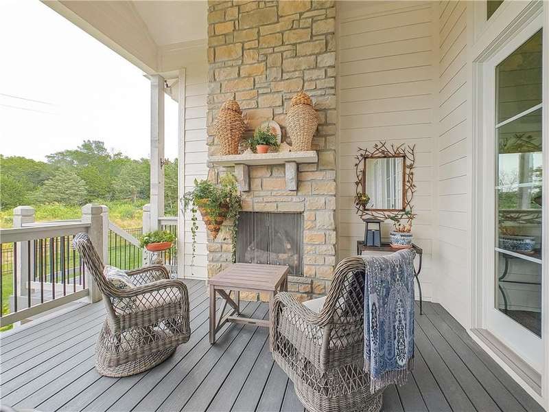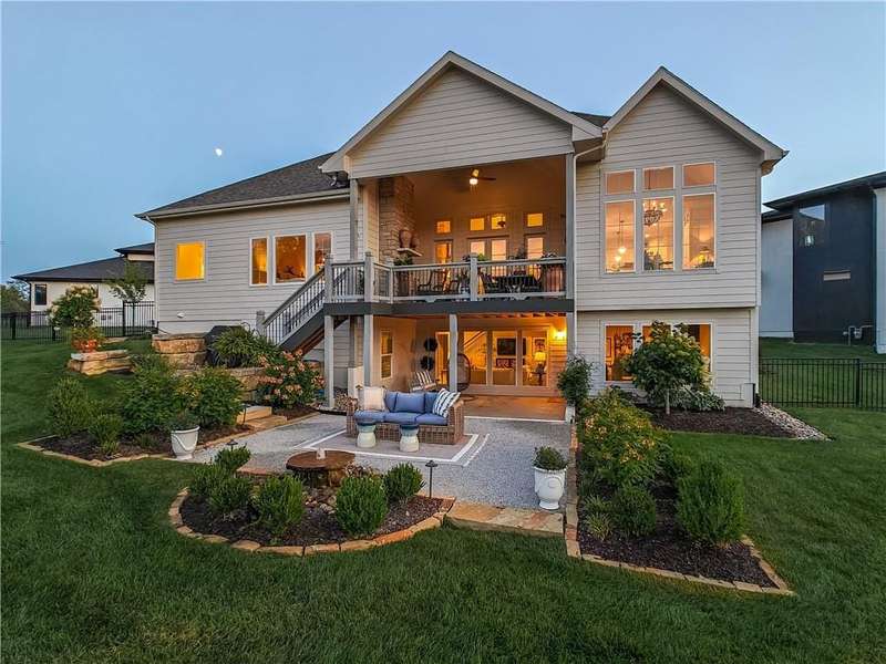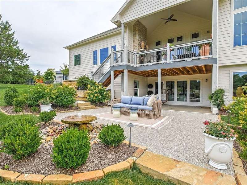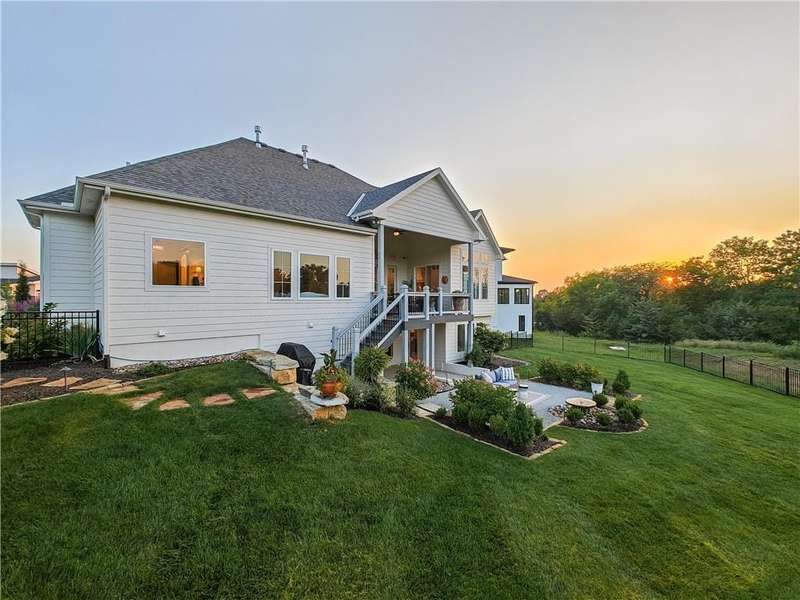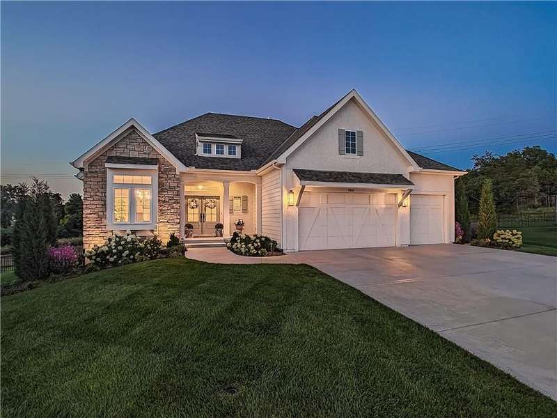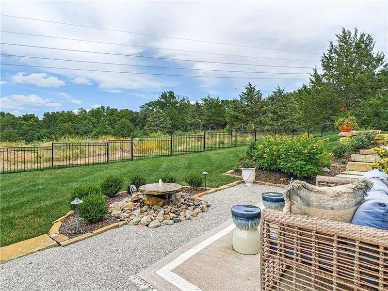 Avoid the uncertainty of new construction with its unforeseen delays and expenses. This nearly new, 2-year-old beauty is better than new construction with established landscaping, fenced back yard and premium upgrades throughout. This 4-bedroom James Engle Stoneybrook Expanded Reverse 1.5-story home delivers all the features you want, without the wait. Nestled on what many call the most coveted lot in Wilshire Hills, this home backs to lush, wooded green space with no neighbors in sight, offering unmatched privacy and tranquility. Expansive windows create a seamless transition from indoors to outdoors. French doors take you to a covered deck and fireplace. From there, stairs lead to the lower level patio with fountain, extending your living space and entertainment options. The kitchen, with custom inset cabinetry, is extra special with a large breakfast area, a prep kitchen, and large pantry. Every appliance is top-of-the line, including the Subzero fridge. The marble island contains a large farm sink. A formal dining room is conveniently located directly off of the prep kitchen. The open-concept main level features a great room with stone fireplace, a powder room with wall mount faucets above the sink and two bedrooms, each with ensuite. The large primary bathroom has custom inset cabinets, custom makeup area, heated marble floors, shower and spa tub. The bright, lower level living area has a fireplace for cozy evenings in front of the TV, or entertain in the bar area with its abundant cabinets, sink, microwave, beverage fridge and large island. There are two bedrooms with Jack and Jill bathroom as well as a half bath that complete the walk-out lower level. Enjoy the perfect blend of thoughtful design, luxury finishes, and a move-in ready experienceall in one remarkable home. Wilshire Hills is conveniently close to 69 HWY, and the Bluhawk shopping center with grocery, retail, dining and soon a theater.