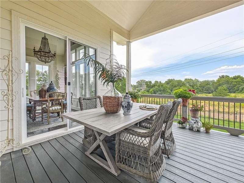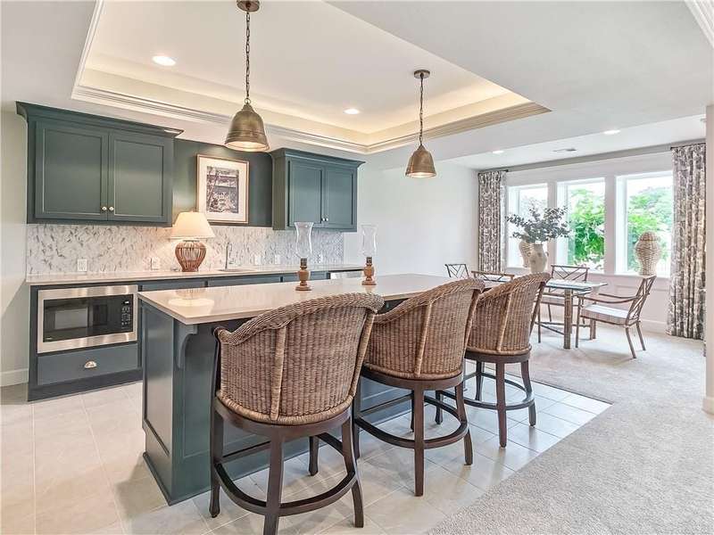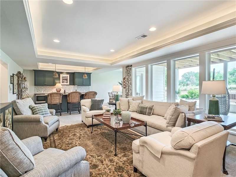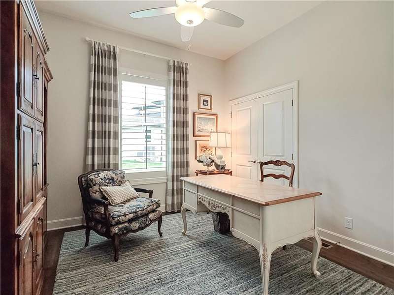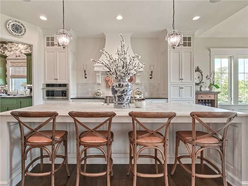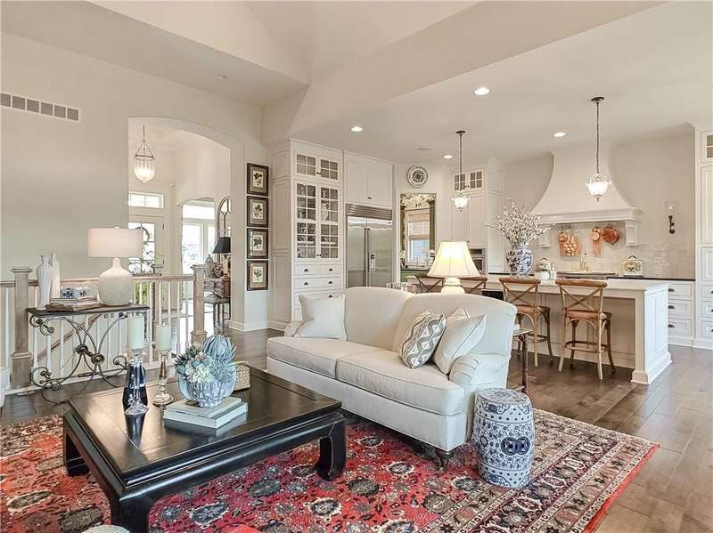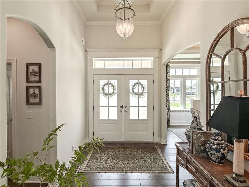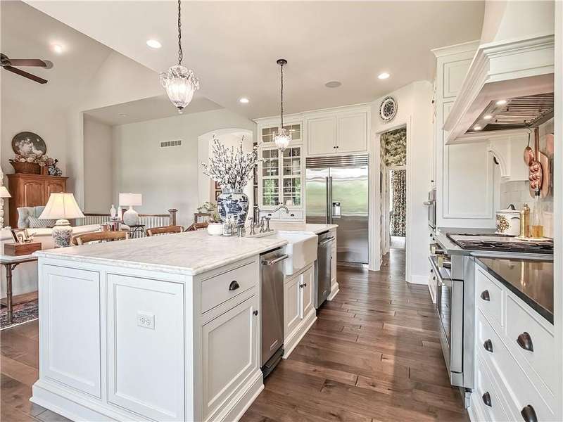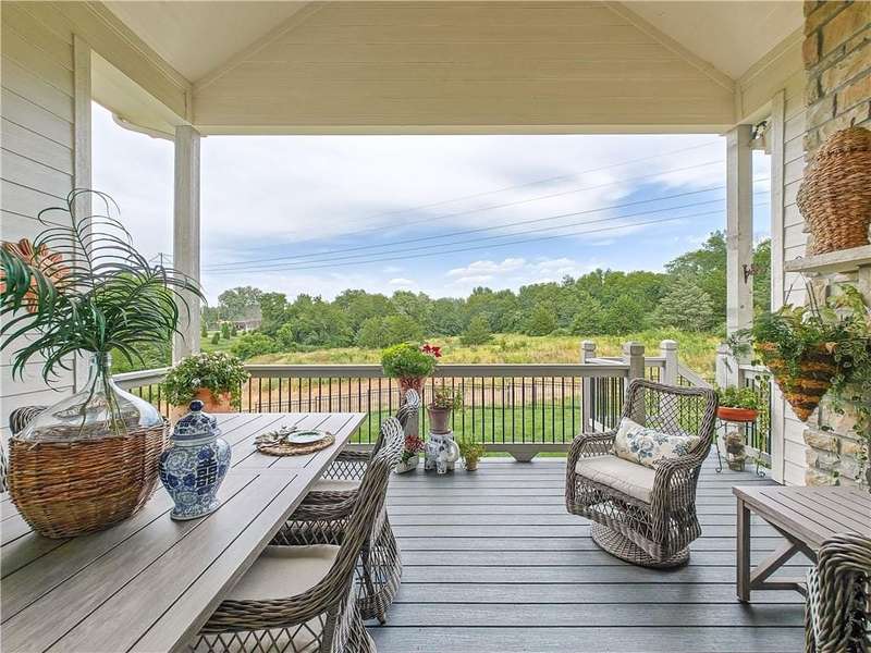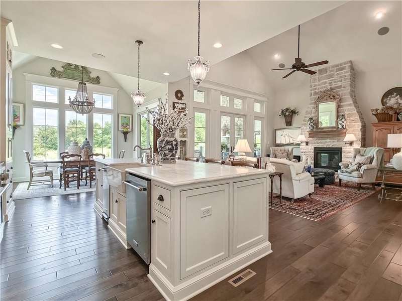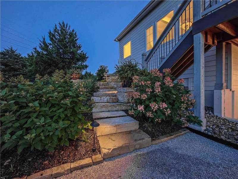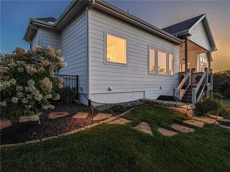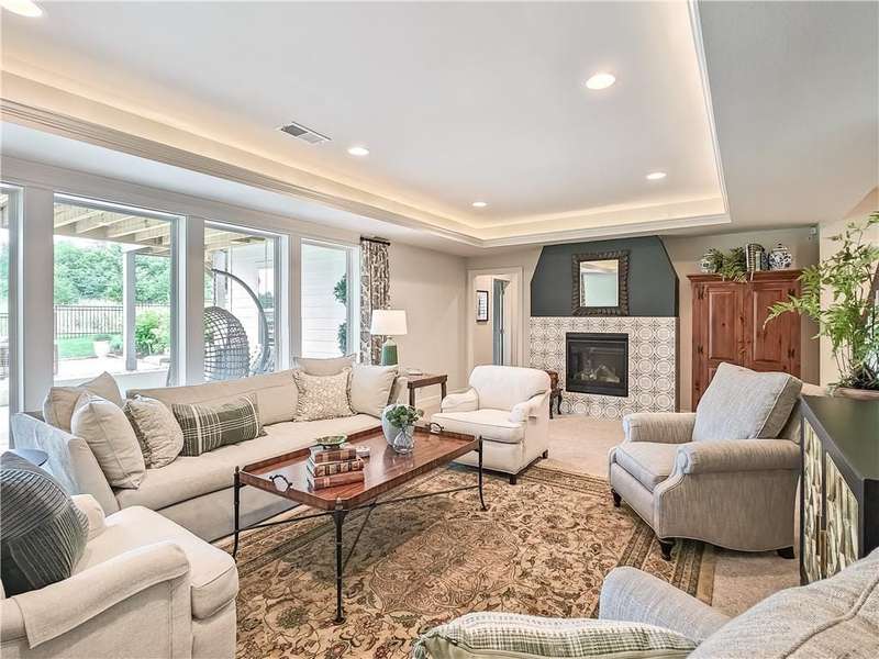 Avoid the uncertainty of new construction with its unforeseen delays and expenses. This nearly new, 2-year-old beauty is better than new construction with established landscaping, fenced back yard and premium upgrades throughout. This 4-bedroom James Engle Stoneybrook Expanded Reverse 1.5-story home delivers all the features you want, without the wait. Nestled on what many call the most coveted lot in Wilshire Hills, this home backs to lush, wooded green space with no neighbors in sight, offering unmatched privacy and tranquility. Expansive windows create a seamless transition from indoors to outdoors. French doors take you to a covered deck and fireplace. From there, stairs lead to the lower level patio with fountain, extending your living space and entertainment options. The kitchen, with custom inset cabinetry, is extra special with a large breakfast area, a prep kitchen, and large pantry. Every appliance is top-of-the line, including the Subzero fridge. The marble island contains a large farm sink. A formal dining room is conveniently located directly off of the prep kitchen. The open-concept main level features a great room with stone fireplace, a powder room with wall mount faucets above the sink and two bedrooms, each with ensuite. The large primary bathroom has custom inset cabinets, custom makeup area, heated marble floors, shower and spa tub. The bright, lower level living area has a fireplace for cozy evenings in front of the TV, or entertain in the bar area with its abundant cabinets, sink, microwave, beverage fridge and large island. There are two bedrooms with Jack and Jill bathroom as well as a half bath that complete the walk-out lower level. Enjoy the perfect blend of thoughtful design, luxury finishes, and a move-in ready experienceall in one remarkable home. Wilshire Hills is conveniently close to 69 HWY, and the Bluhawk shopping center with grocery, retail, dining and soon a theater.