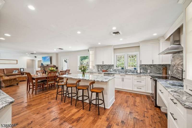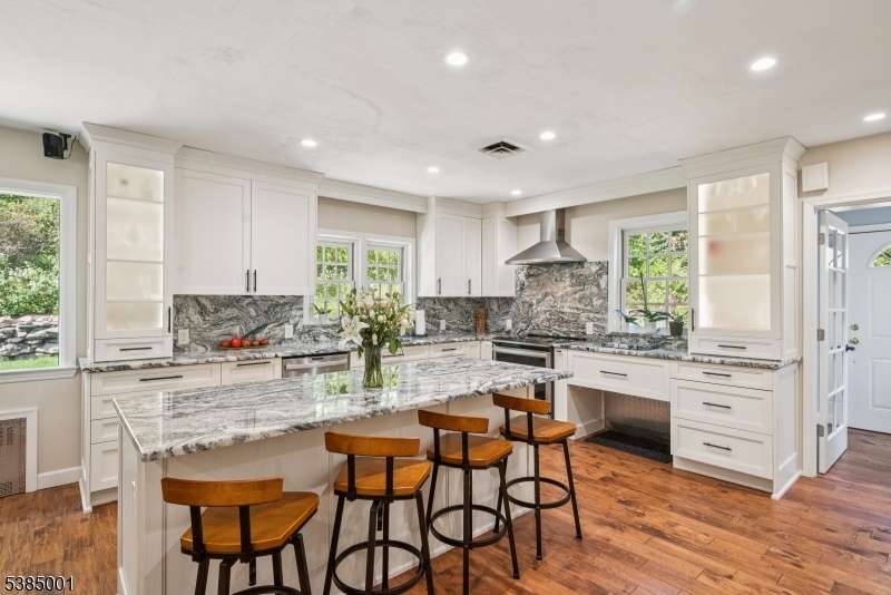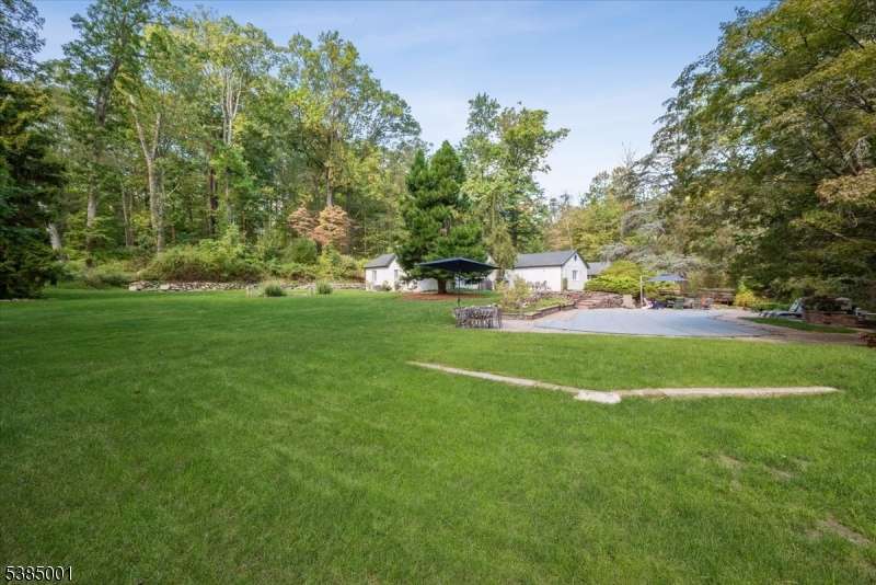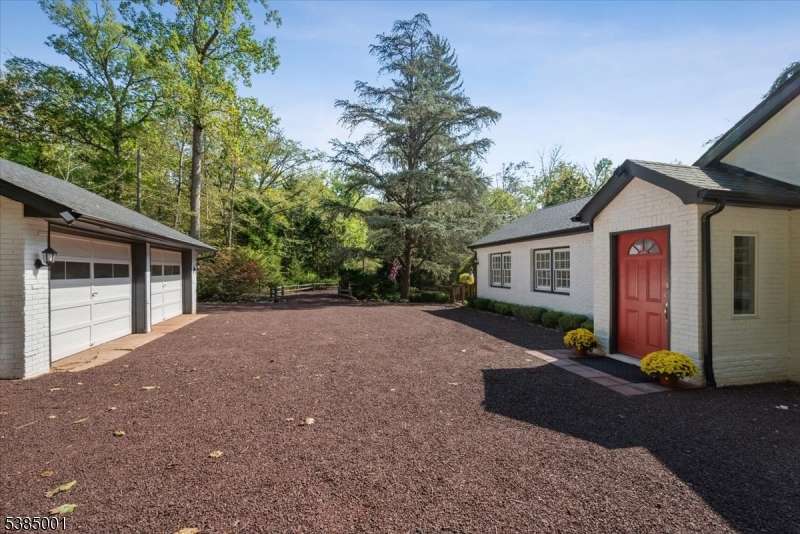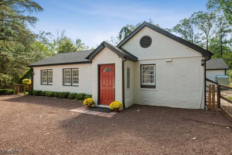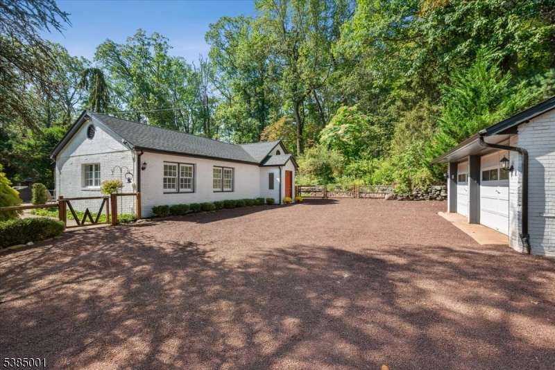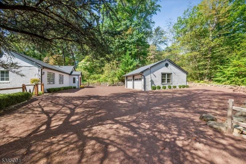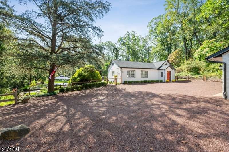 This exquisitely updated cottage combines elegance with understated sophistication. Thoughtfully reimagined for today's lifestyle, the home features an expansive open layout anchored by a designer kitchen with custom cabinetry, granite countertops, a large center island with seating, and top-quality finishes throughout. The adjacent living area includes a stone fireplace, perfect for cozy evenings. With three bedrooms, three full bathrooms, and an office, the interior spaces are both functional and beautifully appointed. Choose from two en-suite primary bedrooms, each offering comfort and privacy. Enjoy an oversized gunite pool set beside a gently flowing brook (no flood insurance required), surrounded by multi-level patios ideal for outdoor entertaining. The landscaped, fenced property provides both privacy and serenity, complemented by a crushed-stone, lighted driveway, a custom-designed bridge leading to the home, and a detached two-car garage. Additional highlights include solid hickory flooring throughout, newer mechanical systems, a recently installed six-bedroom septic system, a newer well pump, and a newer roof. The property benefits from low taxes and is located within one of the region's most sought-after school districts. Close to town, train, and acclaimed restaurants, this is a rare, turnkey opportunity to enjoy luxury living as-is, with the option to expand. A truly special property rarely available and not to be missed.
