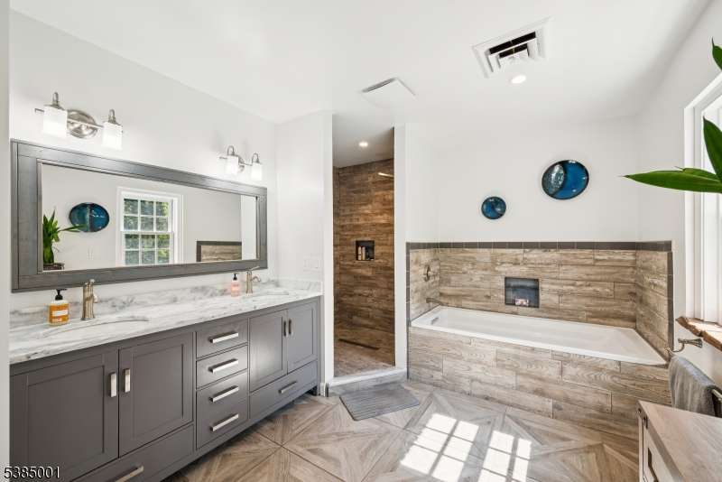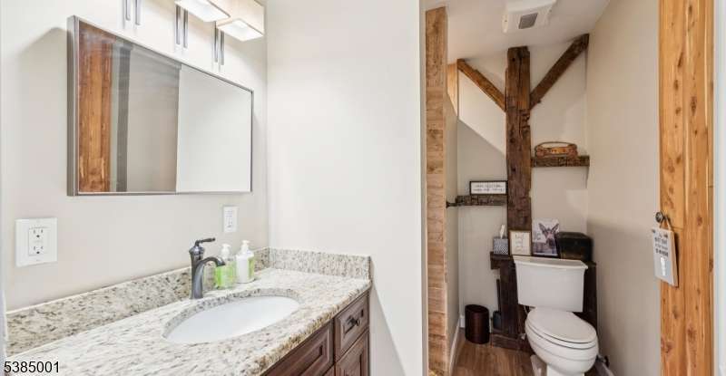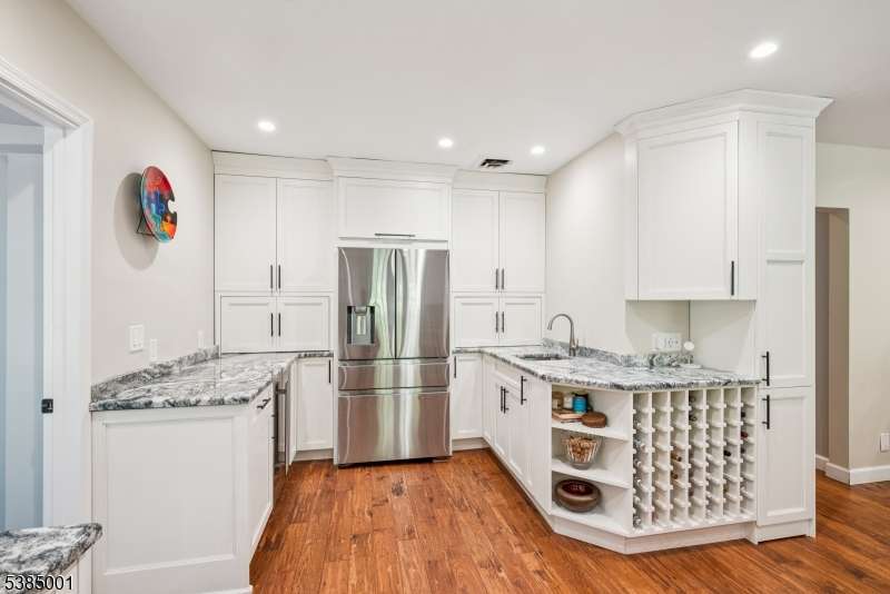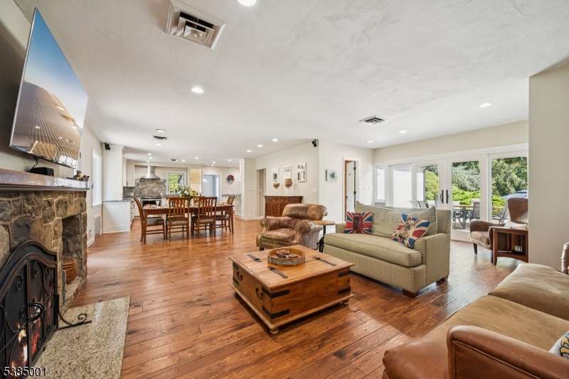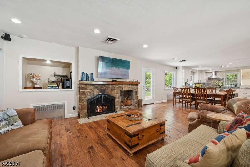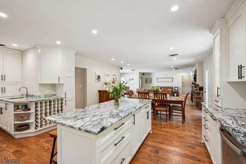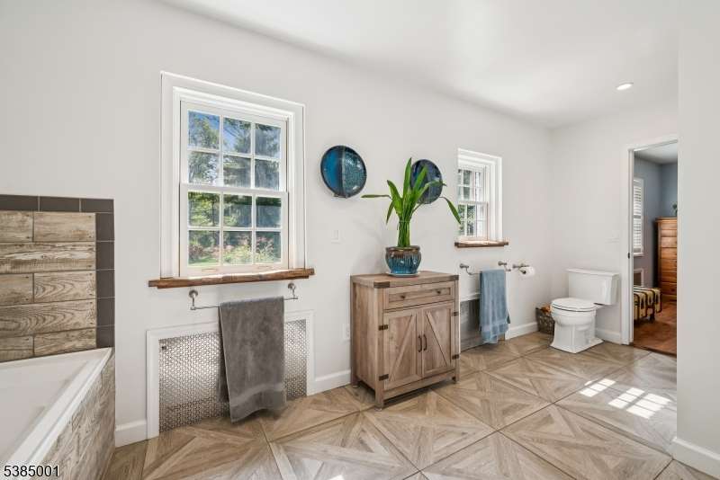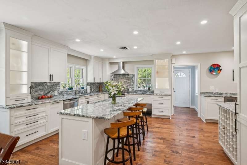 This exquisitely updated cottage combines elegance with understated sophistication. Thoughtfully reimagined for today's lifestyle, the home features an expansive open layout anchored by a designer kitchen with custom cabinetry, granite countertops, a large center island with seating, and top-quality finishes throughout. The adjacent living area includes a stone fireplace, perfect for cozy evenings. With three bedrooms, three full bathrooms, and an office, the interior spaces are both functional and beautifully appointed. Choose from two en-suite primary bedrooms, each offering comfort and privacy. Enjoy an oversized gunite pool set beside a gently flowing brook (no flood insurance required), surrounded by multi-level patios ideal for outdoor entertaining. The landscaped, fenced property provides both privacy and serenity, complemented by a crushed-stone, lighted driveway, a custom-designed bridge leading to the home, and a detached two-car garage. Additional highlights include solid hickory flooring throughout, newer mechanical systems, a recently installed six-bedroom septic system, a newer well pump, and a newer roof. The property benefits from low taxes and is located within one of the region's most sought-after school districts. Close to town, train, and acclaimed restaurants, this is a rare, turnkey opportunity to enjoy luxury living as-is, with the option to expand. A truly special property rarely available and not to be missed.
