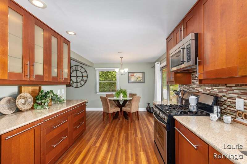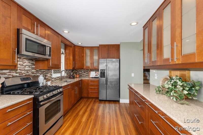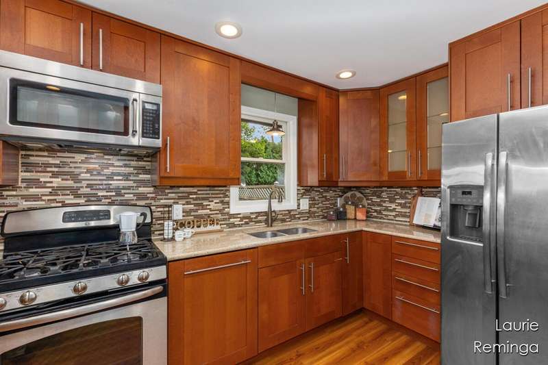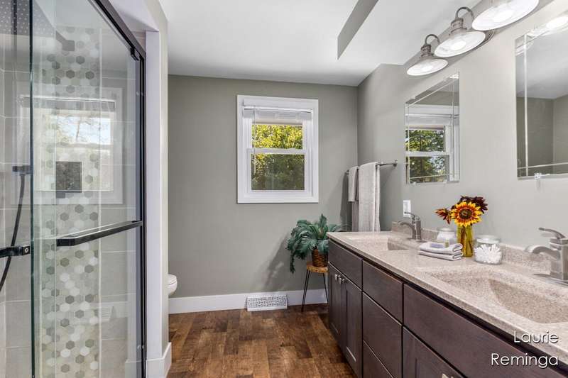 Nestled in the charming neighborhood of Caravelle Village & conveniently located on a cul de sac, this tastefully updated home combines modern comfort with timeless charm. The kitchen boasts granite countertops, glass tile backsplash, stainless steel appliances, & gorgeous wood cabinetry. Flow easily into the dining area & enjoy views of the expansive, fully-fenced backyard. Or move outside for outdoor grilling or relaxing on the ample-sized patio. Natural light fills the living room & a cozy fireplace creates a warm & welcoming atmosphere. Featuring rich LVP flooring throughout, this home exudes warmth, durability, & timeless style in every room. Indulge in a spa-like experience in the recently remodeled bathroom with a sleek walk-in shower featuring glass doors, a soothing rain showerhead, & the convenience of a double vanity sink. Renovated with stylish, contemporary finishes, daylight windows, & newer carpeting, the lower level offers the perfect place to enjoy TV time, games & recreation. The convenience of a second, beautifully remodeled full bathroom & laundry room completes the lower level. The huge outdoor shed is ready to hold your treasures, lawn toys and more! Full of character and charm, this home beautifully blends timeless architecture with modern updates. Seller directs offers to be reviewed on 9/16/25 at 4:00pm.