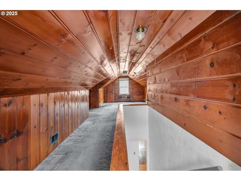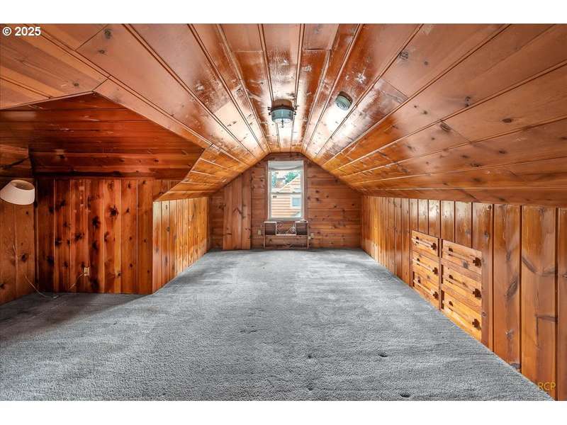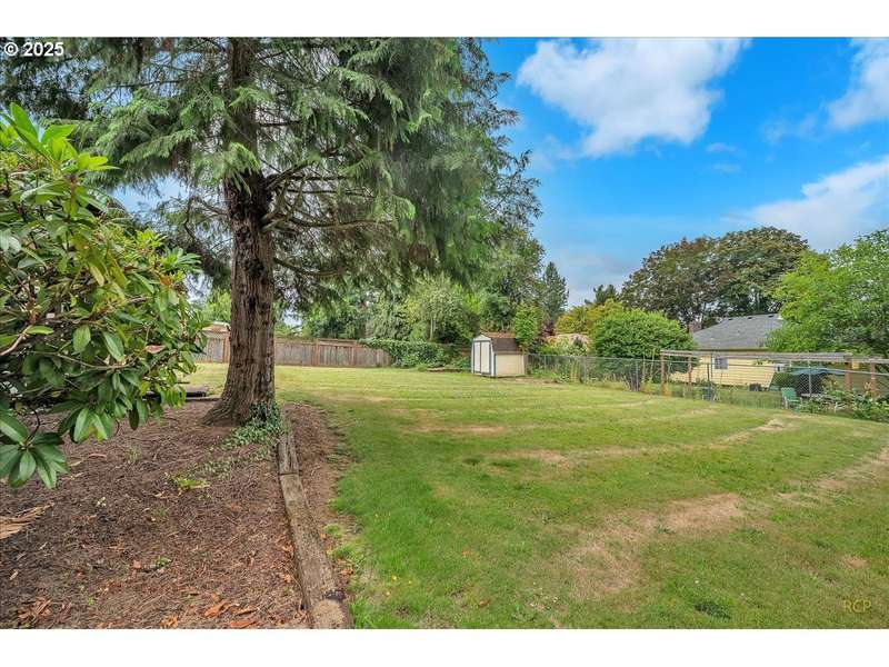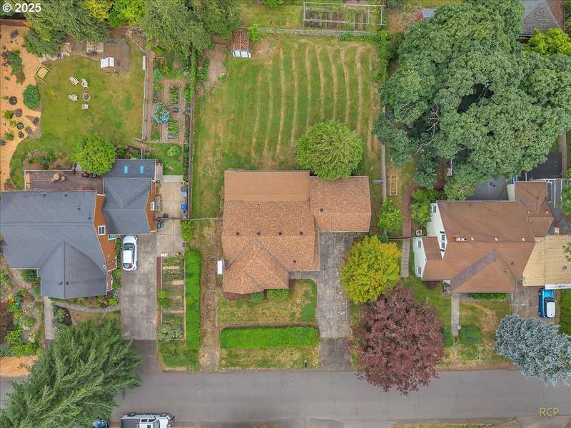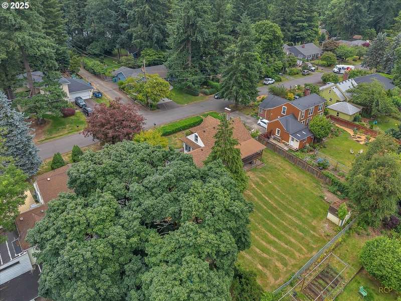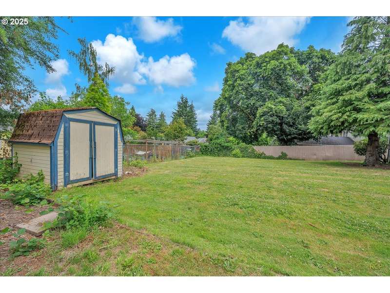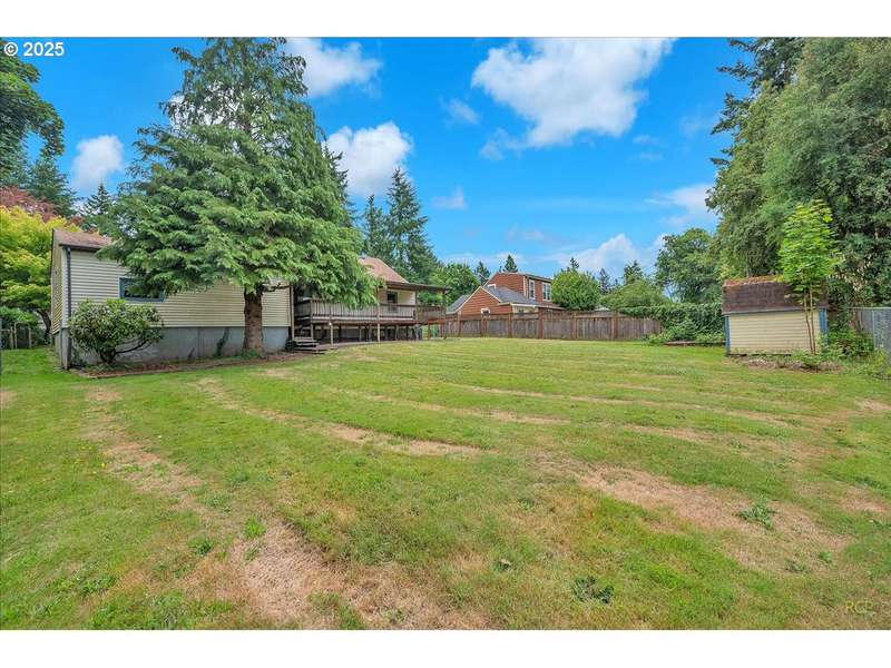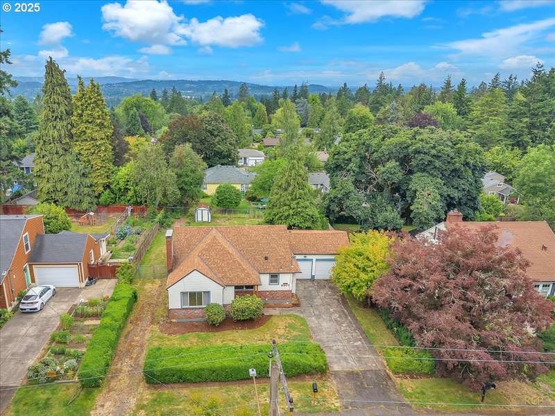 Presenting to the market for the first time in decades, this classic 1949 traditional residence offers a rare opportunity in a desirable SW Portland neighborhood just off Taylors Ferry Road. The home features a spacious, light-filled living room with elegant coved ceilings and a welcoming fireplace, a formal coved dining room, and a modern kitchen equipped with a refrigerator, stove, and built-in microwave. With four bedrooms and two and a half bathrooms—including a remarkable 16.5' x 35.5' upstairs bedroom finished in knotty pine with custom built-ins—there is ample space for all. Additional highlights include central air conditioning, energy-efficient double-pane vinyl windows, forced air gas heating, an attached two-car garage with openers, RV parking, and whole-house generator wiring. Set on a level lot exceeding 10,000 square feet, the expansive covered deck overlooks a fully fenced backyard complete with a tool shed for added storage. Home Energy Score - 3. [Home Energy Score = 3. HES Report at https://rpt.greenbuildingregistry.com/hes/OR10239634]