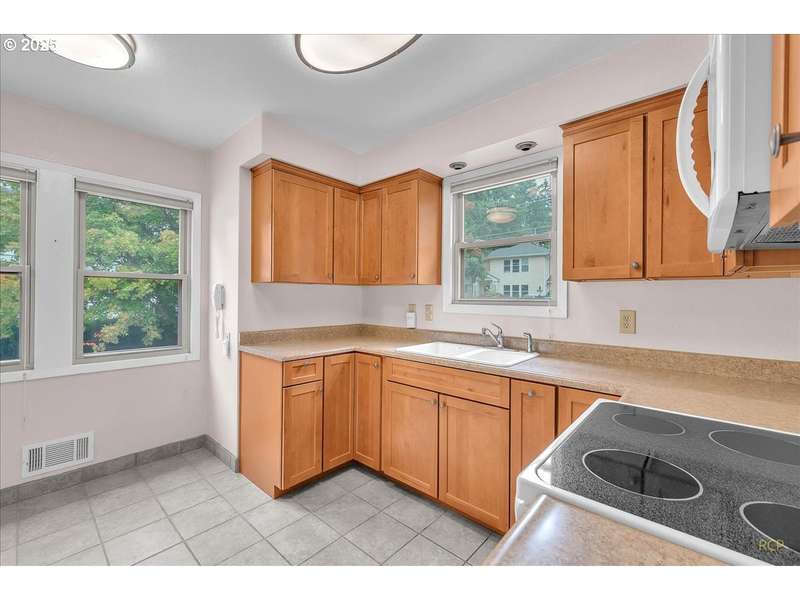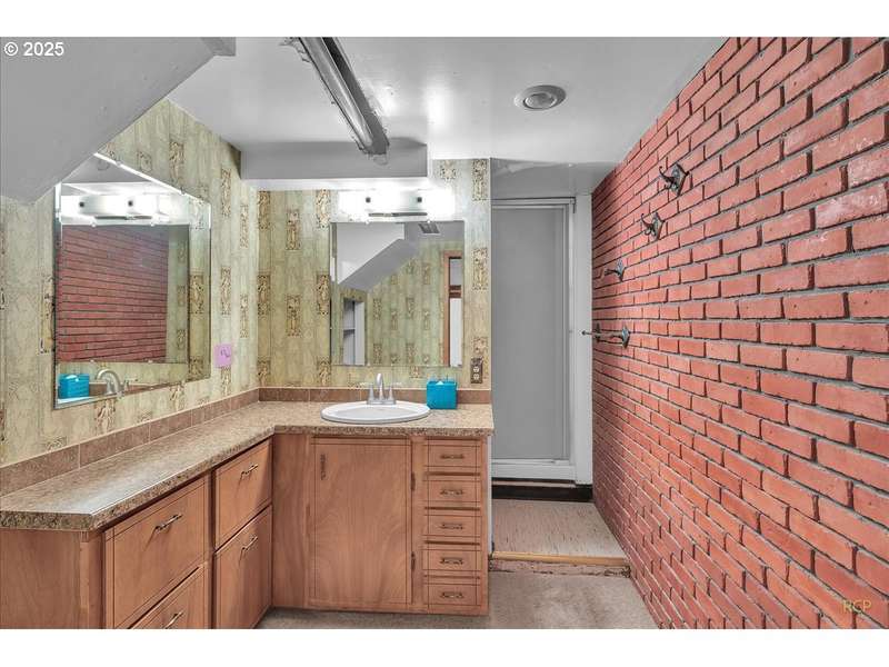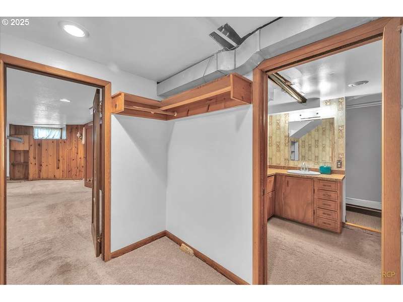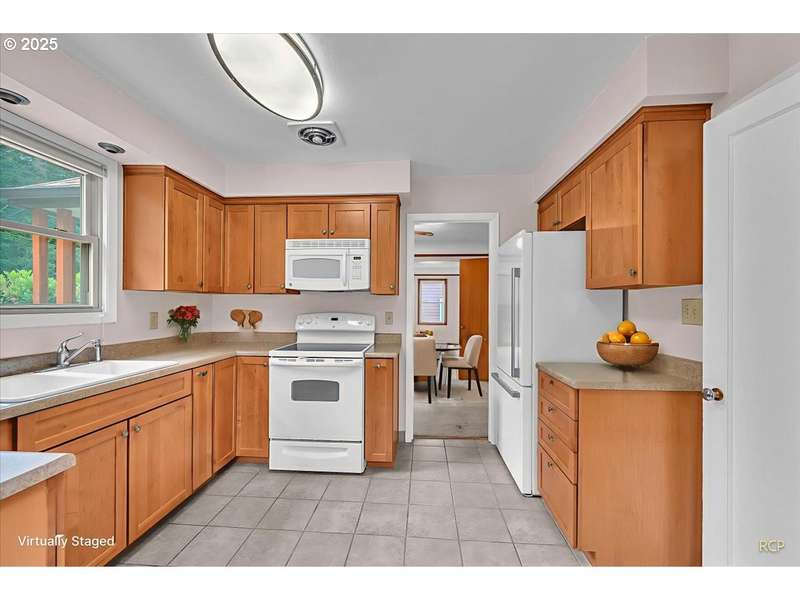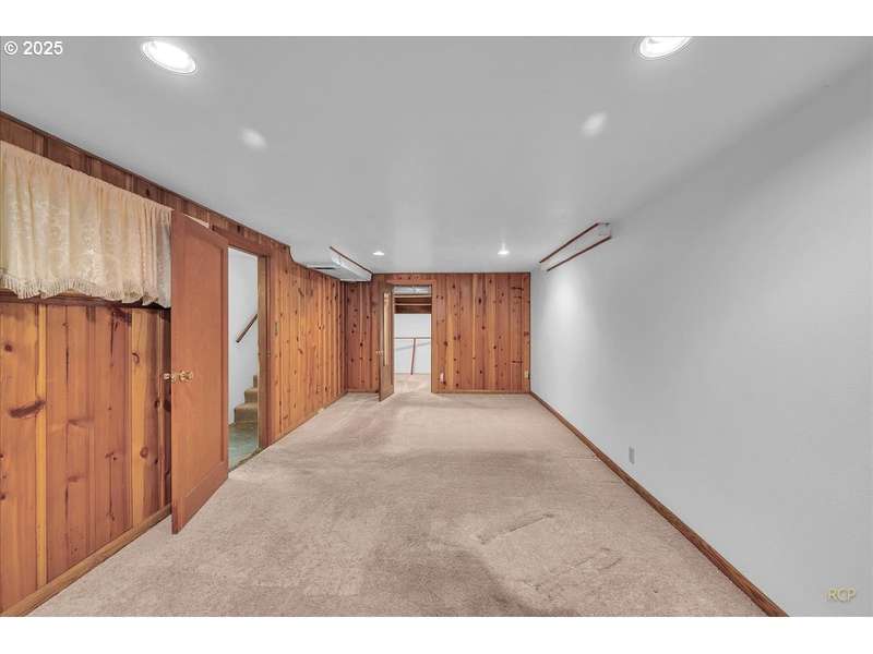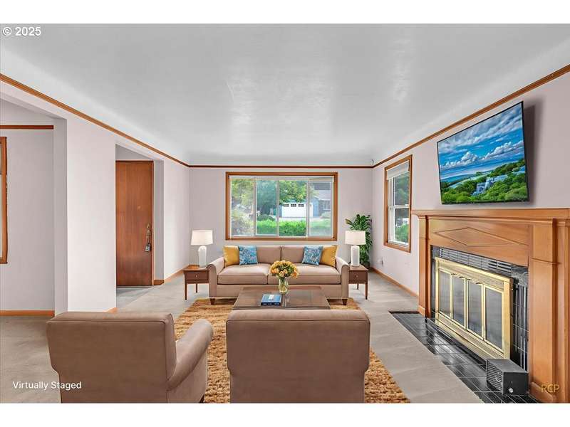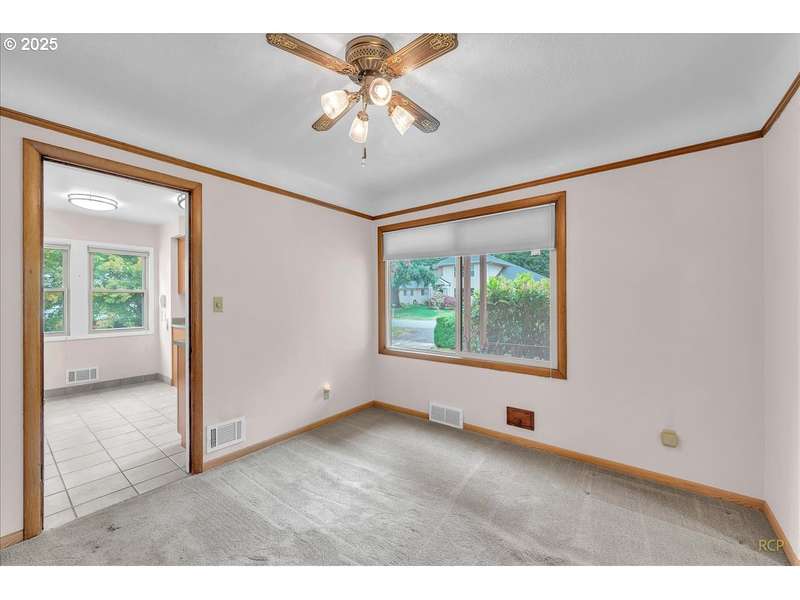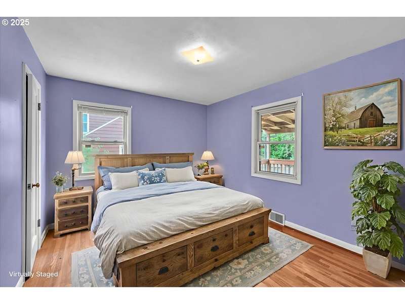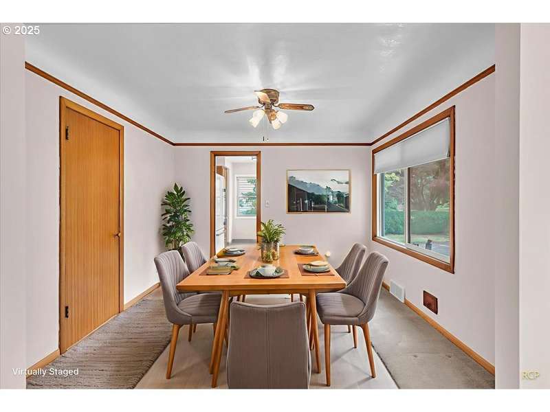Presenting to the market for the first time in decades, this classic 1949 traditional residence offers a rare opportunity in a desirable SW Portland neighborhood just off Taylors Ferry Road. The home features a spacious, light-filled living room with elegant coved ceilings and a welcoming fireplace, a formal coved dining room, and a modern kitchen equipped with a refrigerator, stove, and built-in microwave. With four bedrooms and two and a half bathrooms—including a remarkable 16.5' x 35.5' upstairs bedroom finished in knotty pine with custom built-ins—there is ample space for all. Additional highlights include central air conditioning, energy-efficient double-pane vinyl windows, forced air gas heating, an attached two-car garage with openers, RV parking, and whole-house generator wiring. Set on a level lot exceeding 10,000 square feet, the expansive covered deck overlooks a fully fenced backyard complete with a tool shed for added storage. Home Energy Score - 3. [Home Energy Score = 3. HES Report at https://rpt.greenbuildingregistry.com/hes/OR10239634]