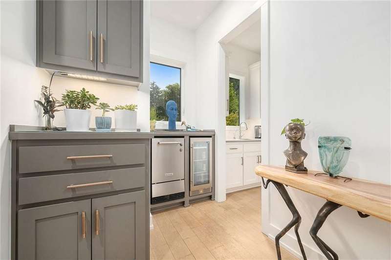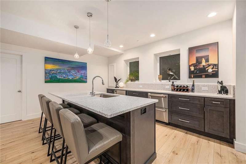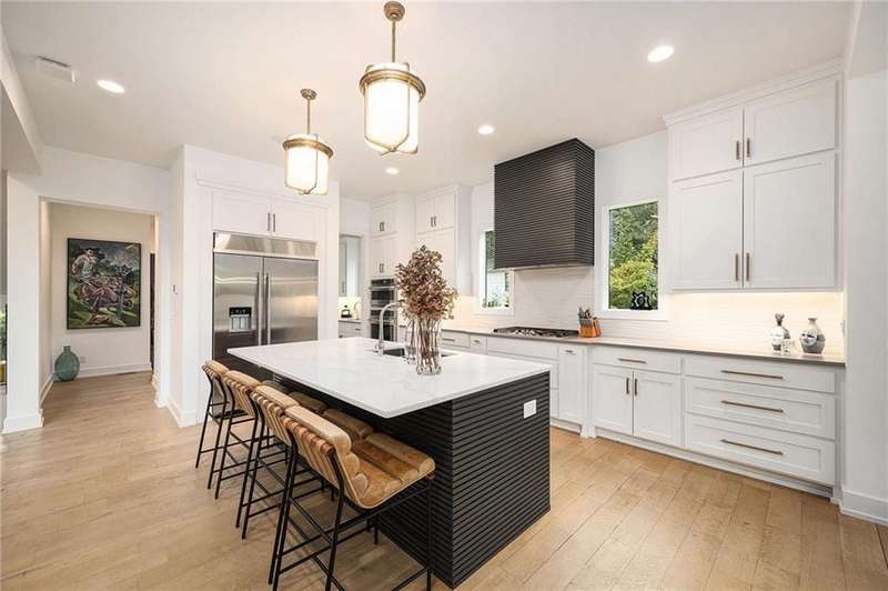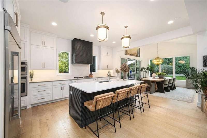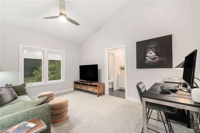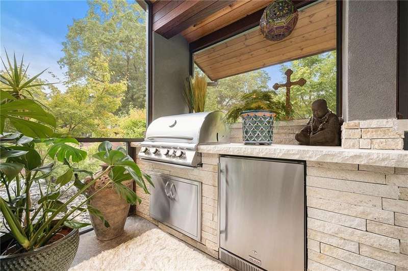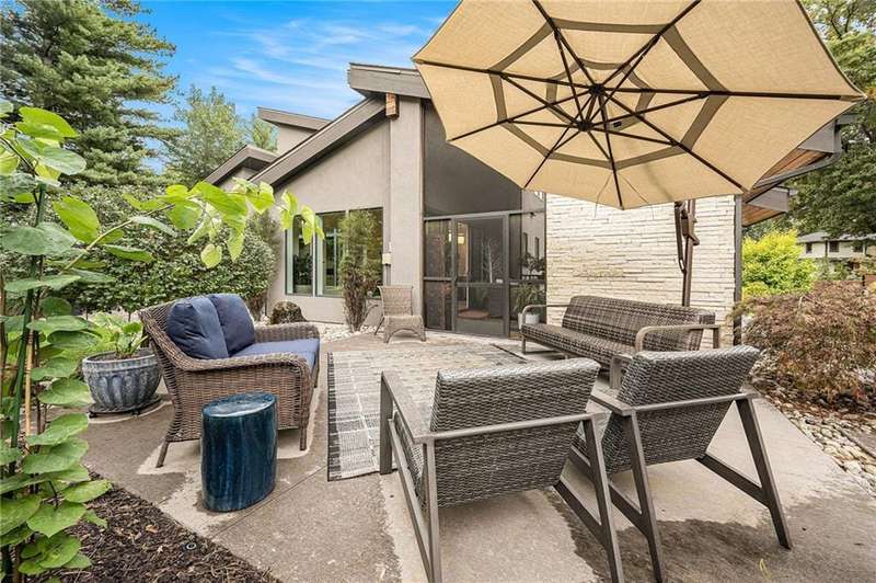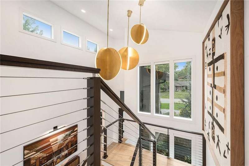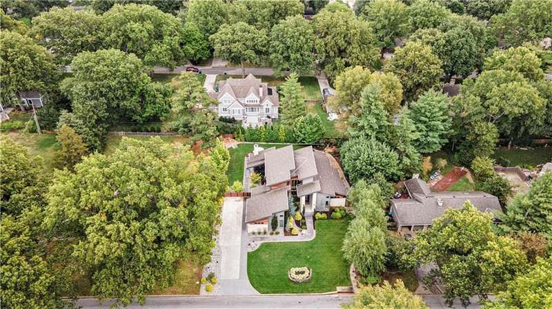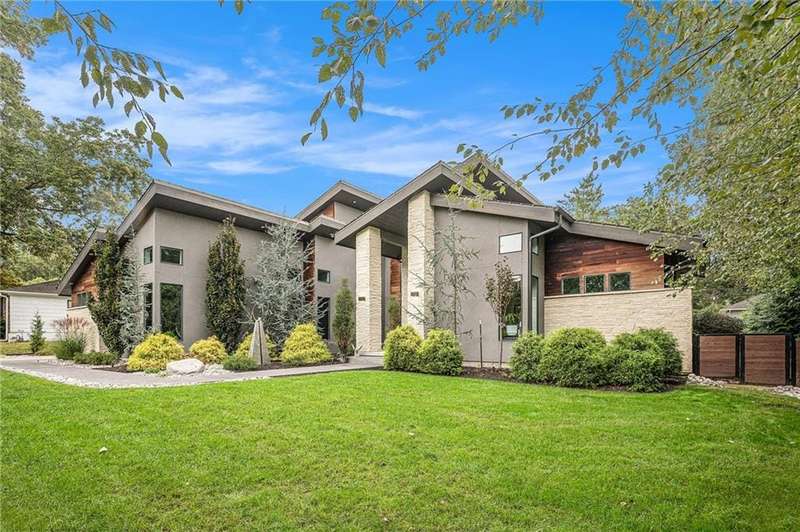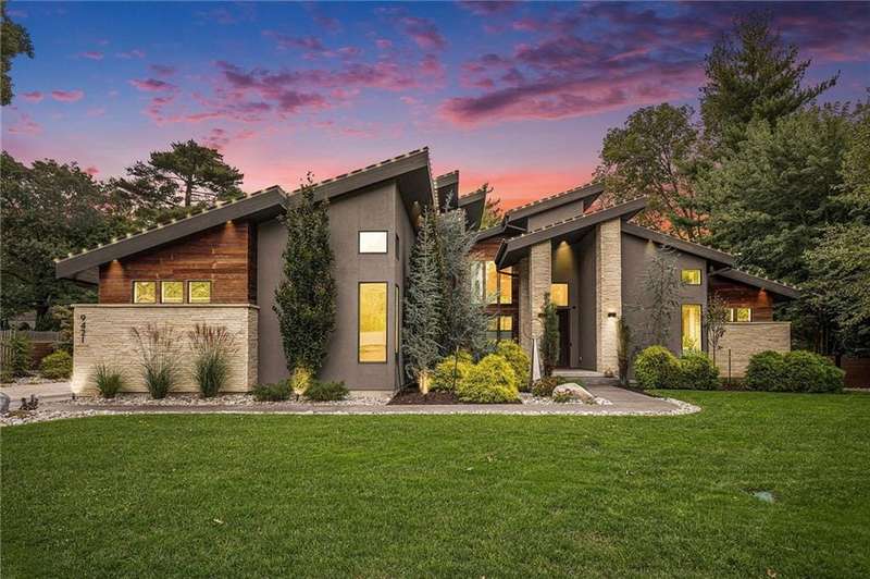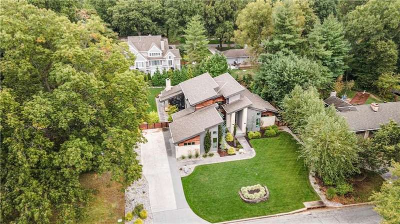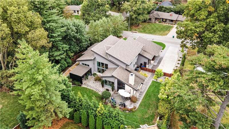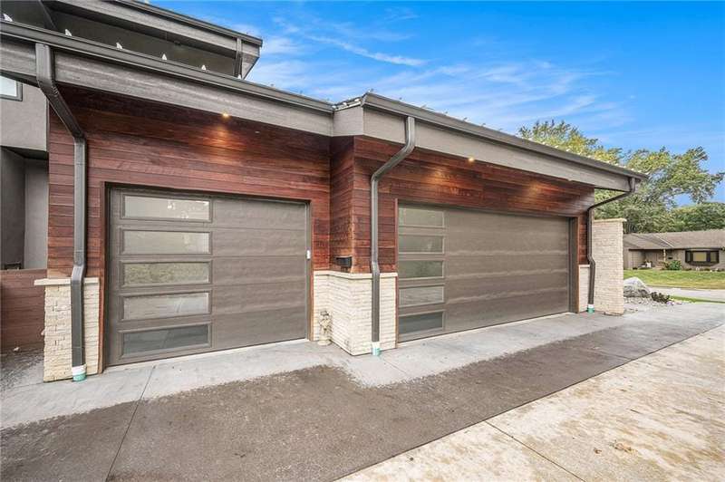 Experience the epitome of luxury living in this must-see, award-winning contemporary masterpiece meticulously crafted by Starr Builders. This extraordinary residence captivates with its striking architectural design, featuring rich IPE wood accents and elegant natural stacked stone that elevate its sophisticated curb appeal. Artfully landscaped front and back gardens create private, serene retreat environments, perfectly complementing the home's opulent exterior. Step into a breathtaking two-story entryway that welcomes you into an expansive great room flooded with natural light through soaring floor-to-ceiling windows, offering panoramic views of the meticulously designed surroundings. The great room is a true highlight, with a dramatic two-story modern gas fireplace adorned with exquisite white stacked stone, custom built-in shelving, and remote control shades. The gourmet kitchen is a culinary sanctuary, boasting top-of-the-line appliances, a state-of-the-art built-in refrigerator, and an expansive butlers pantry complete with a wine chiller and ice machine. Double sliding doors lead to a screened porch, designed for seamless outdoor living, featuring a built-in gas grill, mini fridge, and a warming wood-burning fireplace. Primary suite is located on the main level featuring spa like bath and large custom closet. Step outside primary to a pergola that offers privacy for hot tub. Spacious dedicated office on main level, two ensuite bedrooms upstairs with generous walk-in closets, and a fully finished lower level with a media room, stylish bar with ice maker, mini fridge, dishwasher, and 4th bed and bath complete this masterpiece. Heated three-car garage with expansive windows. Located in the heart of Old Leawood, this residence is within walking distance of premier shops, grocery stores, upscale dining, and renowned schoolspresenting an unrivaled opportunity to enjoy luxurious, effortless living in a highly coveted neighborhood. Endless upgrades!