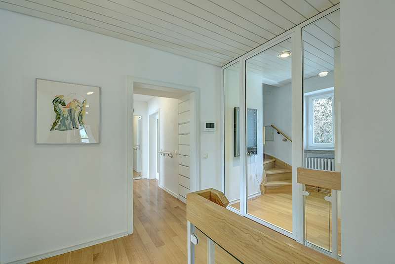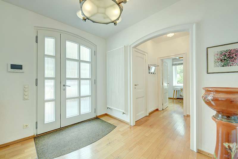 Stylish country house near the Rhine - light-flooded rooms and versatile potential. An exceptionally charming detached house in an elegant country house style is for sale - a property that impresses with approx. 258 m² of living space on a spacious plot of approx. 860 m². Originally built in 1930, the house is in extremely well-kept condition thanks to continuous maintenance and extensive modernization, most recently in 2013. The electrics were renewed in two stages (2005 and before 2013), the bathrooms were modernized in 2003 and a new entrance door was installed in 2009. With a total of eight stylish rooms, including four spacious bedrooms, the house offers ample space for family life and/or prestigious living. Three modern bathrooms underline the high level of living comfort. The high-quality materials used in the fittings are impressive: fine parquet flooring, tasteful tiles and large panoramic windows on the first floor create a bright, inviting atmosphere. The open floor plan promotes a communicative feeling of living - a place where people enjoy coming together. The centerpiece of the living area is an elegant fireplace, which makes for atmospheric evenings. An architectural highlight is the solid wooden staircase with a glass partition - a stylish element that combines functionality and design. The modern, timeless kitchen with high-quality fixtures and fittings meets all the requirements of contemporary family life and offers direct access to the spacious natural stone terrace - perfect for socializing outdoors. The lovingly landscaped garden with its magnificent planting of trees, ornamental shrubs and flowering plants creates a natural oasis of calm and invites you to linger. A spacious garage not only offers space for a vehicle, but also practical storage space. The unfinished top floor also opens up valuable potential for individual design ideas - whether as an additional bedroom, studio or work area. There is currently a staircase to the top floor, where a room has been converted into a living space. The location combines the best of both worlds: quiet living close to nature in the immediate vicinity of the Rhine and at the same time very good connections to the urban infrastructure. This combination makes the property particularly attractive for discerning families or couples with a taste for something special. A house with character, charm and perspective - this property offers you the rare opportunity to realize stylish living in an all-round harmonious ambience. Take a look at our Instagram page "vonpoll_duesseldorf". There you will find more exciting real estate offers and are always up to date.