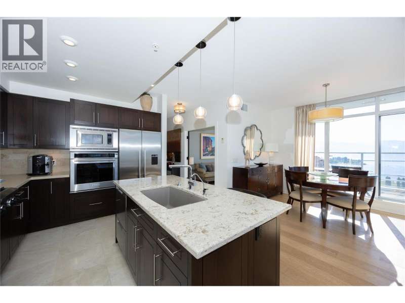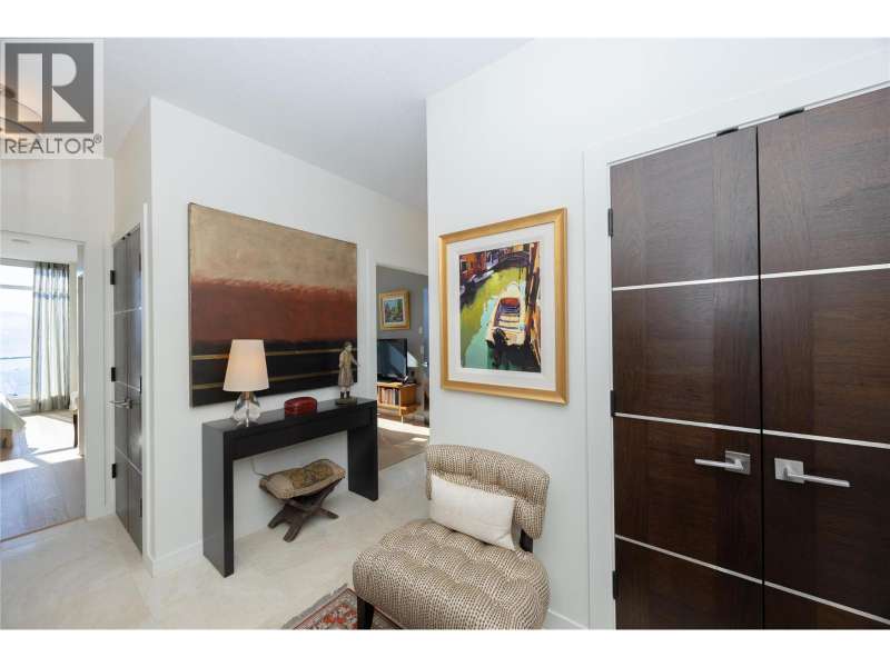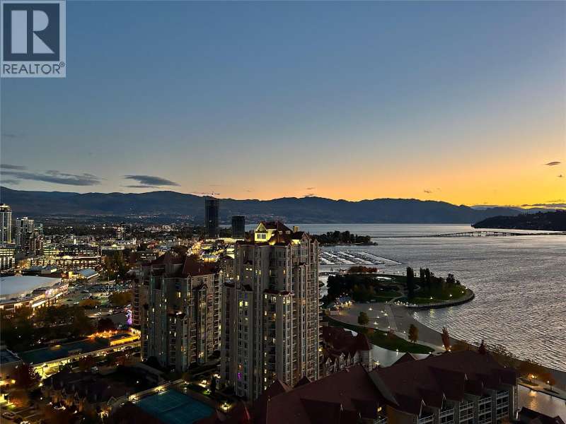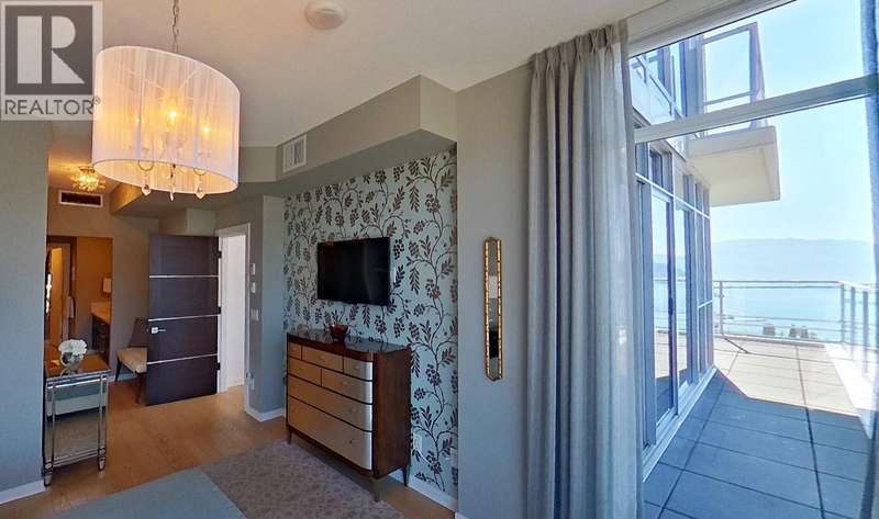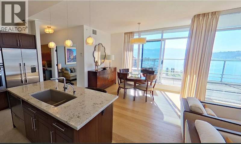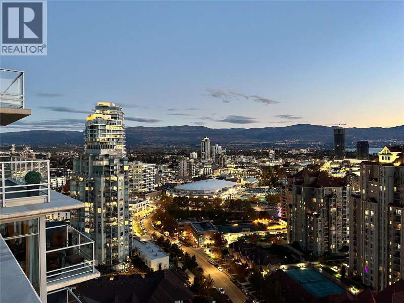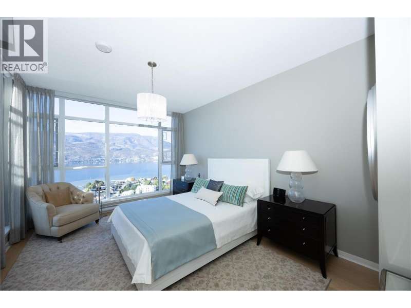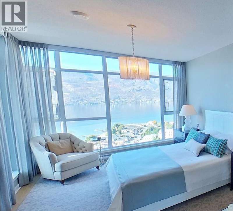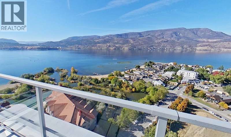 Perched high above the vibrant streets of Kelowna North, this exquisite luxury sub-penthouse offers an unmatched living experience with sweeping views of Okanagan Lake, the surrounding mountains, and the valley below. Spanning a thoughtfully designed layout, this two-bedroom plus den residence showcases floor-to-ceiling windows that bathe the open-concept living space in natural light, creating an atmosphere that balances elegance with comfort. The large wrap around deck allows the Indoor and outdoor living space to flow seamlessly, whether you are hosting gatherings or enjoying a quiet evening at home. The primary suite is a private sanctuary, complete with spectacular views, large walk in closet and a five-piece ensuite . The spacious second bedroom provides comfort for family or guests, with its own balcony access to enjoy morning coffee against a backdrop of panoramic vistas. A versatile den offers flexibility, ideal for a third bedroom, dedicated office, or cozy library. This exceptional home includes tasteful upgrades two designated side by side parking spaces and two large storage lockers for added convenience. Residents also enjoy premium amenities, including a pool, hot tub, lounge, gym, and billiards room—providing a true blend of sophistication and lifestyle in the heart of the city. (id:7434)