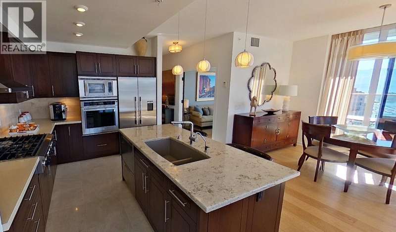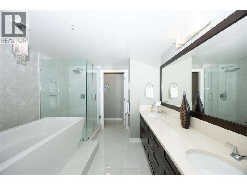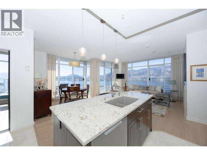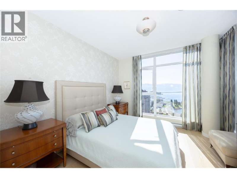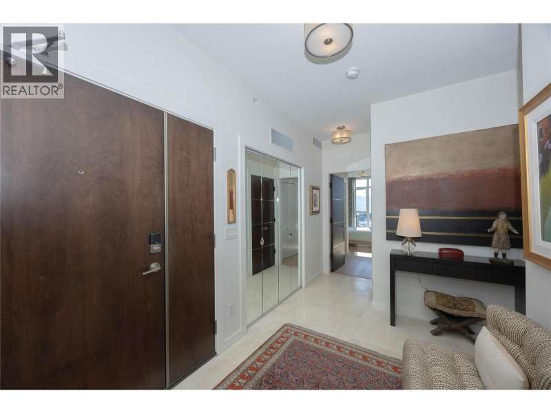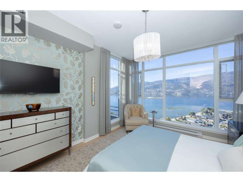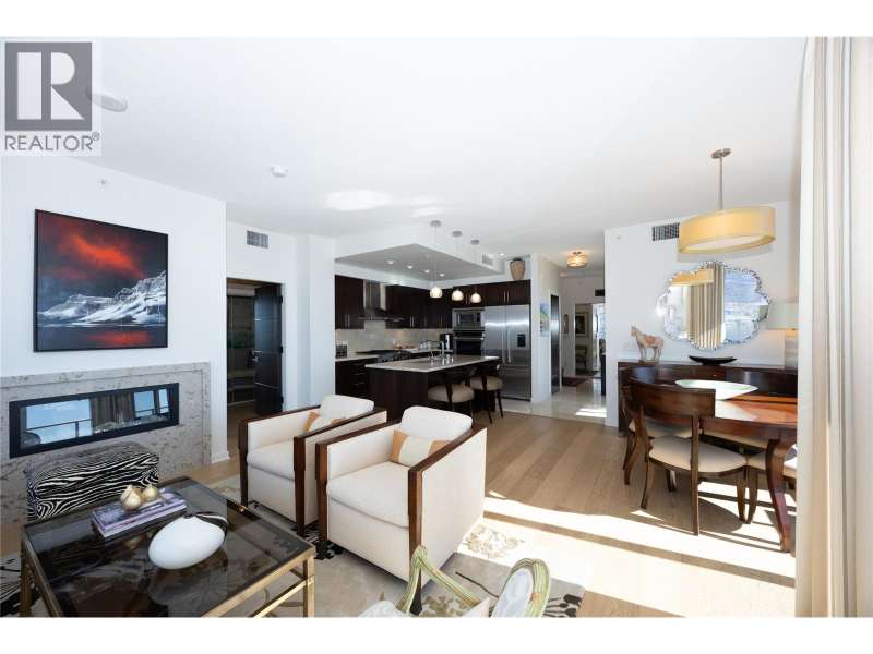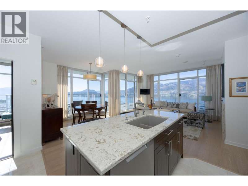Perched high above the vibrant streets of Kelowna North, this exquisite luxury sub-penthouse offers an unmatched living experience with sweeping views of Okanagan Lake, the surrounding mountains, and the valley below. Spanning a thoughtfully designed layout, this two-bedroom plus den residence showcases floor-to-ceiling windows that bathe the open-concept living space in natural light, creating an atmosphere that balances elegance with comfort. The large wrap around deck allows the Indoor and outdoor living space to flow seamlessly, whether you are hosting gatherings or enjoying a quiet evening at home. The primary suite is a private sanctuary, complete with spectacular views, large walk in closet and a five-piece ensuite . The spacious second bedroom provides comfort for family or guests, with its own balcony access to enjoy morning coffee against a backdrop of panoramic vistas. A versatile den offers flexibility, ideal for a third bedroom, dedicated office, or cozy library. This exceptional home includes tasteful upgrades two designated side by side parking spaces and two large storage lockers for added convenience. Residents also enjoy premium amenities, including a pool, hot tub, lounge, gym, and billiards room—providing a true blend of sophistication and lifestyle in the heart of the city. (id:7434)