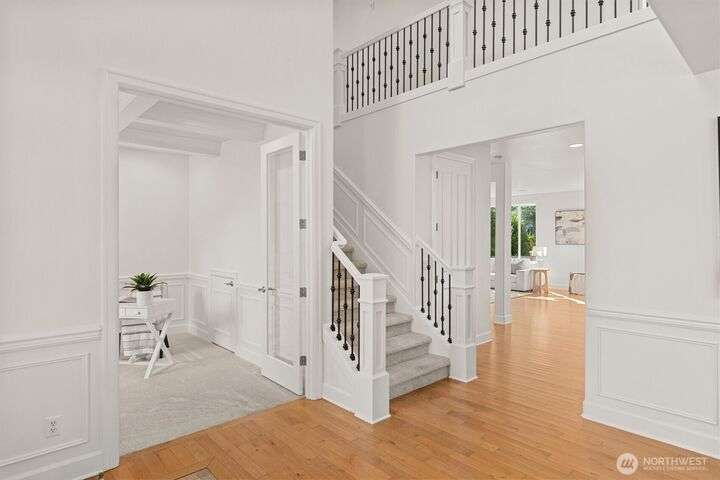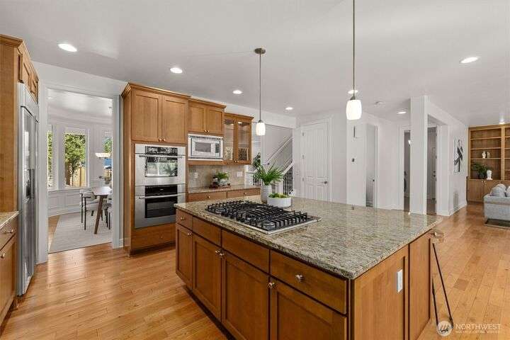 Just steps from Microsoft’s Main Campus, this north-facing 4 bed, 4 bath home sits on a desirable corner lot in a quiet Grass Lawn cul-de-sac. A vaulted entry and coffered-ceiling office add architectural charm, while fresh interior/exterior paint, new carpet, and designer lighting make it feel brand new. The private backyard features mature trees, manicured landscaping, and a new fence. HVAC recently serviced. Top-rated Lake Washington schools and unbeatable access to parks, trails, Redmond Town Center, and SR-520.