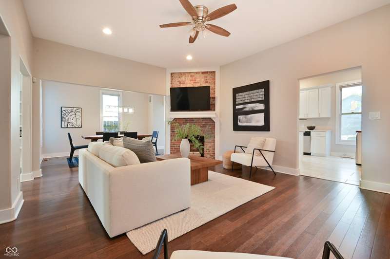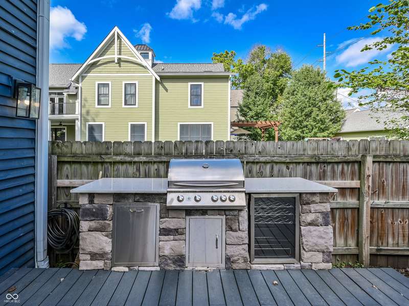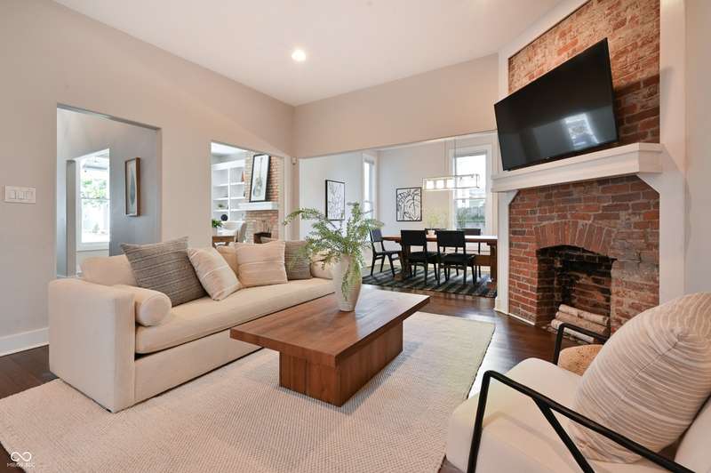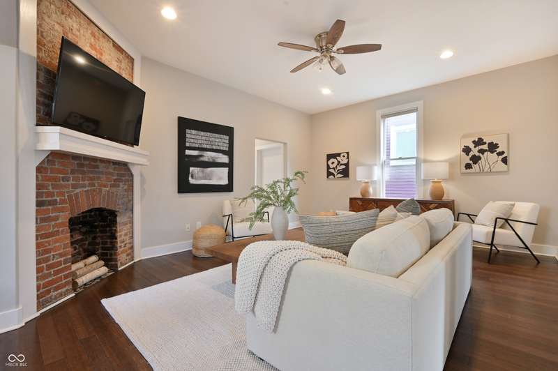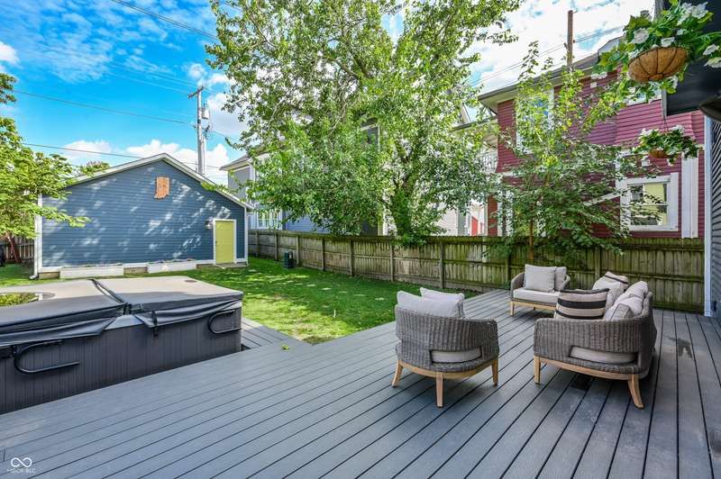 Welcome to this beautifully preserved and thoughtfully updated 4-bedroom, 2.5-bathroom historic gem located on one of the most sought-after streets in Herron-Morton Place - a downtown Indianapolis favorite! This timeless home features hardwood floors throughout, abundant natural light from oversized windows, classic brick fireplaces, and an intricately detailed staircase that showcases its historic charm. The spacious and stylishly remodeled kitchen boasts white cabinetry, gleaming quartz countertops, and stainless steel appliances - perfectly blending modern convenience with historic character. The main floor includes the foyer, a den/office, spacious living room open to the dining room, a powder room and a dedicated laundry area for everyday ease. Step outside to enjoy the entertainer's dream backyard, complete with a fully equipped outdoor kitchen, hot tub, composite decking - ideal for relaxing or hosting guests. The 2.5-car garage adds valuable storage and parking space in this vibrant urban neighborhood. Upstairs enjoy a spacious primary suite complete with walk in closet and ensuite bathroom featuring vanity, tiled shower, and soaker tub. 3 additional bedrooms and another full bathroom complete the 2nd floor. The 4th bedroom has window access for the projector system to cast movies onto the garage for those summer and fall movie nights! Enjoy sweeping views of the city's July 4th fireworks from your own home and walk to neighborhood favorites like Tinker Street Restaurant, Baby's, Foundry Coffee, and CFI School 27 campus. A quick drive puts you within minutes of downtown hospitals, Eli Lilly, Salesforce, and all that downtown Indy has to offer. Don't miss your chance to own a piece of Indianapolis history with all the modern upgrades you need.