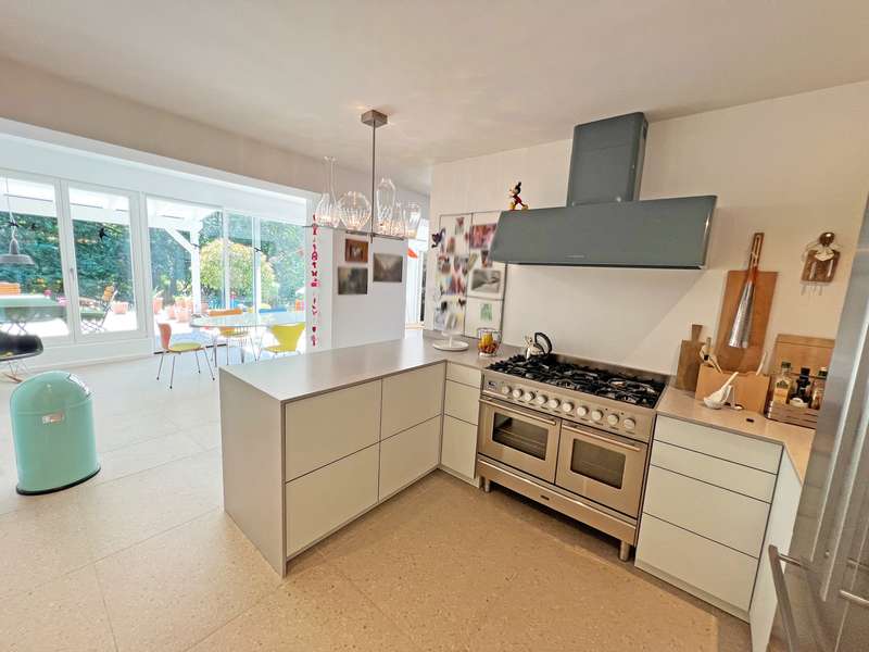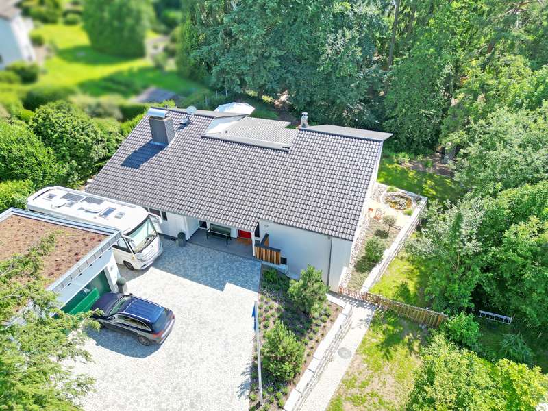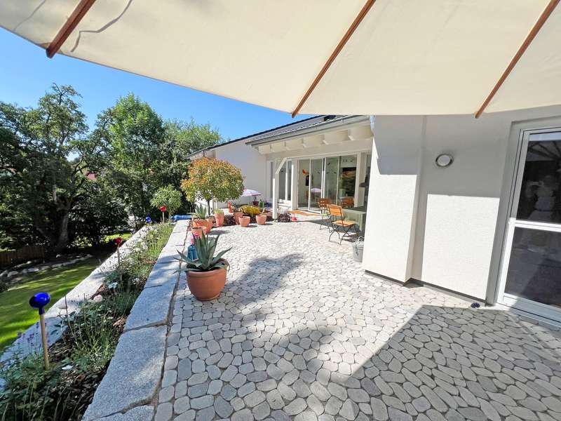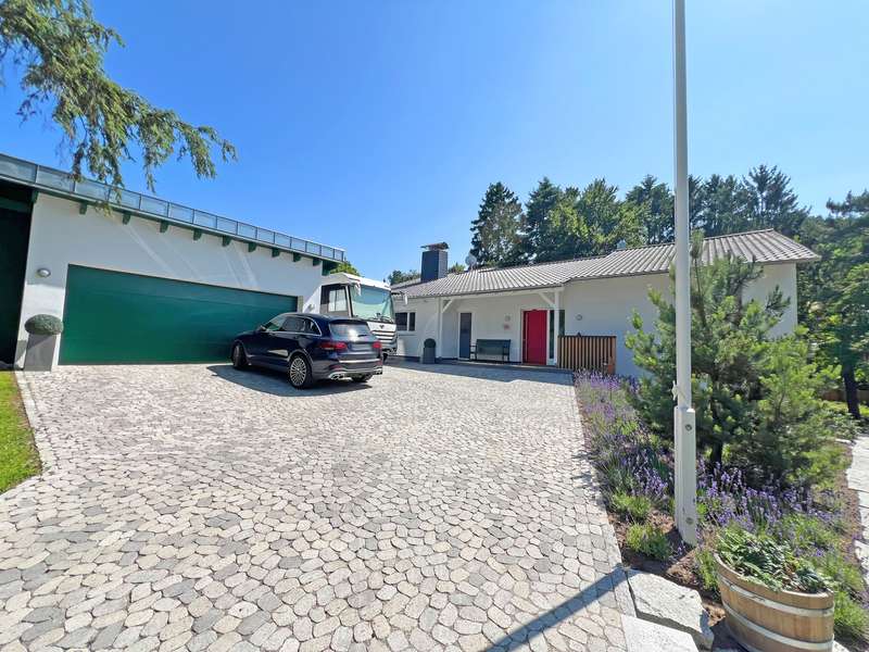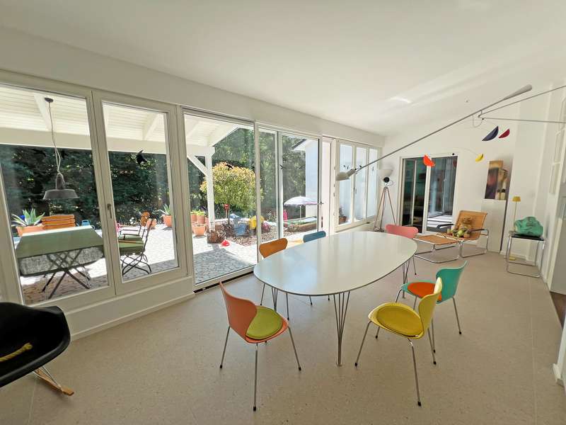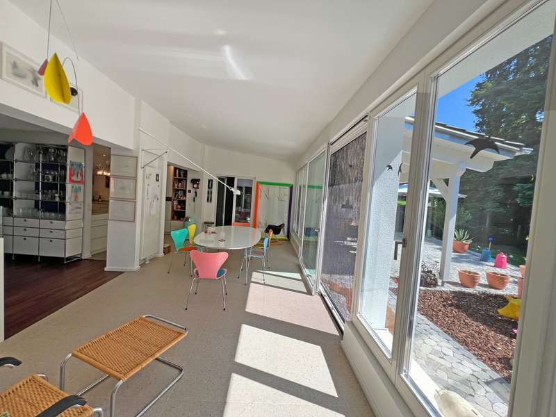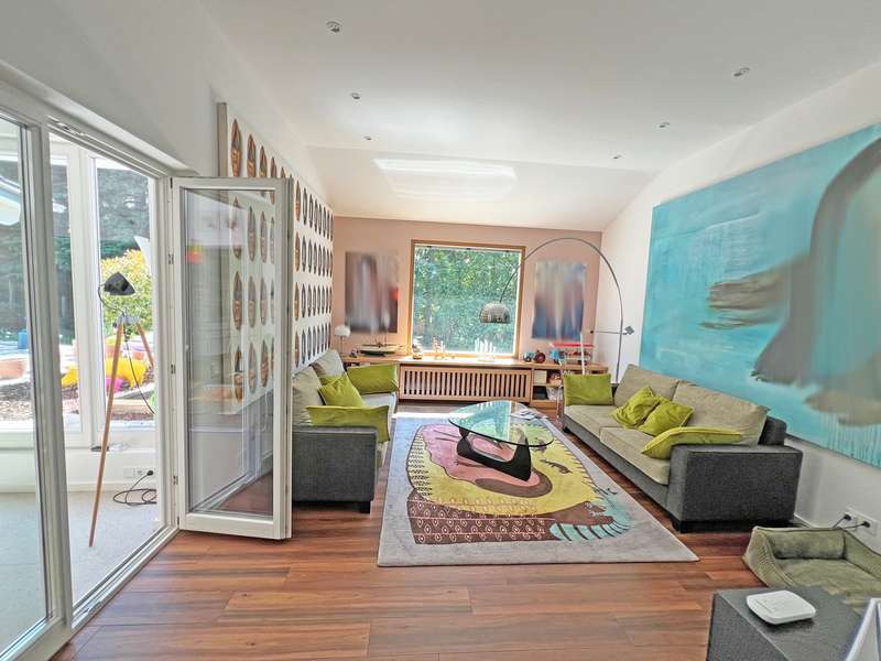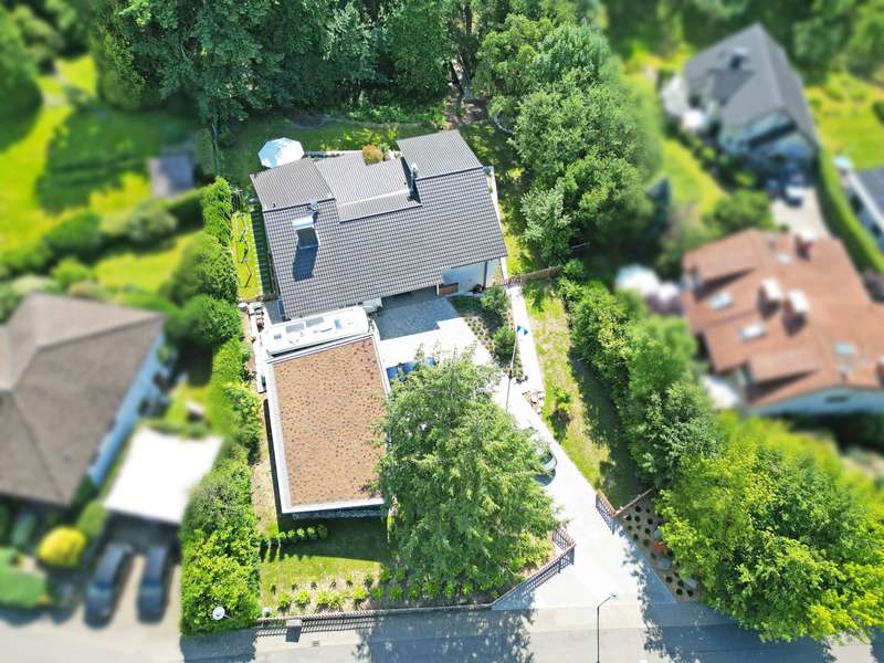 This modern detached house in an attractive location in Oberflockenbach impresses with its generous amount of space, high-quality fittings and well thought-out room layout. With around 282 m² of living space and an additional 138 m² of usable space, it offers a stylish and comfortable home on a spacious plot of 2,710 m². The property has been continuously modernized since it was built in 1962 and is now in first-class, contemporary condition. Upon entering the house, you are greeted by a spacious, bright hallway. Directly adjacent are a stylish checkroom, a guest WC and a functional utility room. An adjoining hallway leads to the private area with a tastefully fitted bathroom, a quiet bedroom and a comfortable dressing room with two built-in wardrobes. The hallway also leads directly into the heart of the house - a spacious living area with large windows, plenty of natural light and a stylish fireplace. The adjoining, high-quality equipped kitchen can be functionally integrated into everyday life and makes every cook's heart beat faster! The bright conservatory with adjoining dining area is particularly charming and offers a friendly ambience for shared meals. From here, you can access the covered terrace with a wonderful view of the lovingly landscaped garden - a retreat full of peace and nature. The garden level offers a flexible living area with a spacious guest room, two separate study rooms - ideal for home offices or creative projects - and another stylishly designed bathroom. The space is complemented by an additional checkroom and a comfortable dressing room. Thanks to the separate entrance, the garden level is also ideal as a granny apartment. There are also two large cellar rooms and the boiler room on this floor. Fine vinyl and natural stone floors, modern triple-glazed windows, tasteful tiles and comprehensive full thermal insulation ensure a pleasant living climate and outstanding energy efficiency. A spacious double garage and three additional outdoor parking spaces are available for vehicles - ideal for families with several cars or guests. The location in Oberflockenbach impresses with its quiet and natural surroundings. Schools, shopping facilities and transport links are nevertheless within easy reach. This house is therefore the perfect retreat for families who want to combine spacious living with a high quality of life. See this unique offer for yourself and arrange a viewing today!
