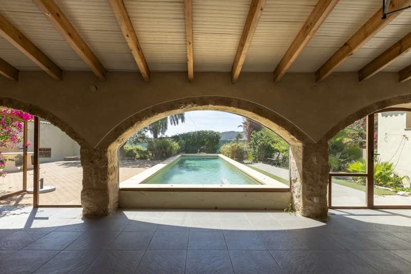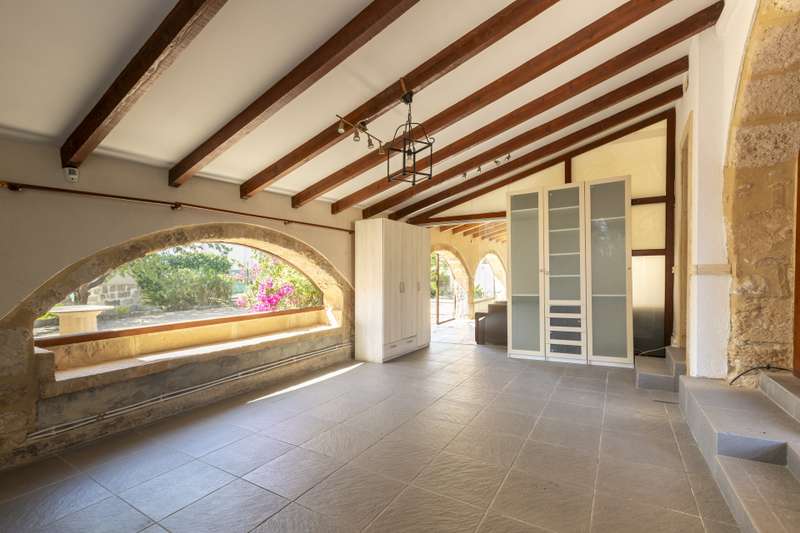 This Mediterranean-style villa is situated on a large, flat plot of approximately 2,100 m² in the Senioles area of Jávea (Alicante). The property stands out for its traditional style, preserving the original Jávea tosca stone arches, offering a private and tranquil setting while being close to shops, the town center, the port, and schools, making it an ideal option for both permanent residence and holidays. The main house features a spacious entrance hall with a fireplace and a small office, living room, dining room, and kitchen with a pantry and access to an outdoor patio. On the upper floor is the sleeping area, with 2 bedrooms, 1 bathroom, and the master bedroom with a walk-in closet and en-suite bathroom. In addition, there is a spacious terrace with open views of the garden area. There is also a guest apartment with 2 bedrooms, 1 bathroom, and a kitchen, perfect for offering privacy to family or friends. The property boasts a spacious glazed terrace next to a summer kitchen with a guest toilet. The private garden, with an automatic irrigation system, surrounds a magnificent 12x3 private pool, creating a perfect environment for outdoor leisure and relaxation. The property is completed by a private garage and central heating system by radiators, ensuring comfort throughout the year. This villa represents a unique opportunity to live in a privileged environment, combining privacy, Mediterranean style, and proximity to all necessary services, next to the international school.