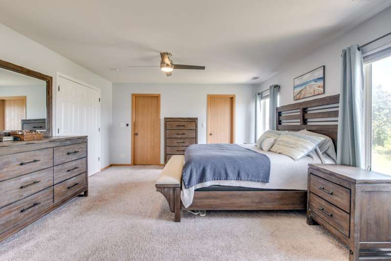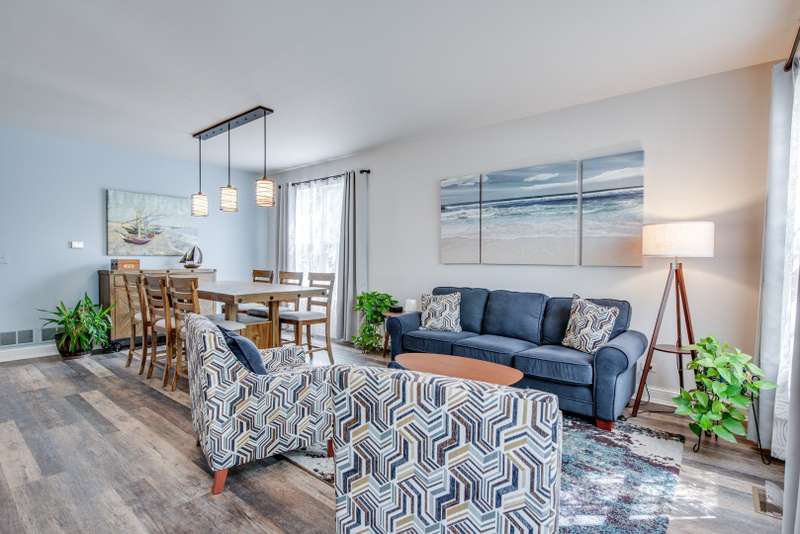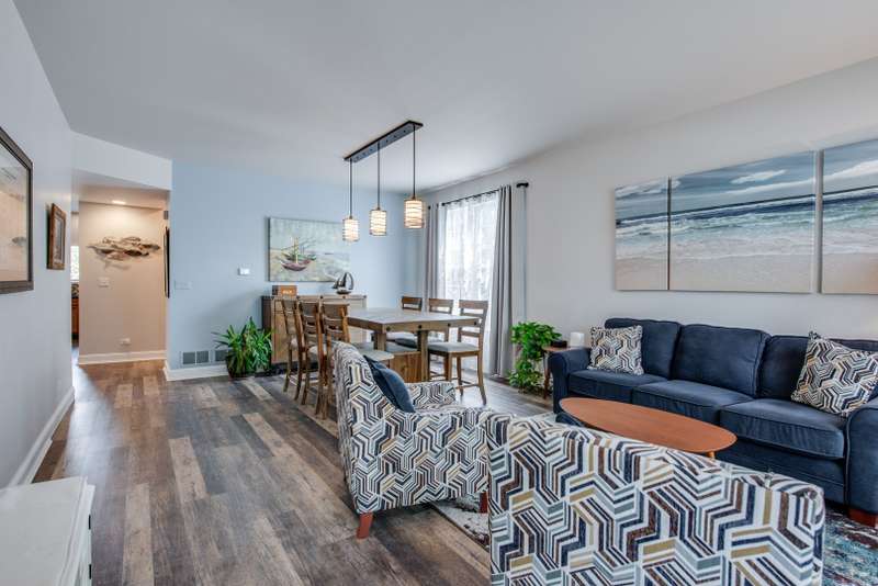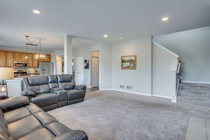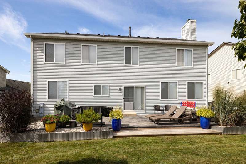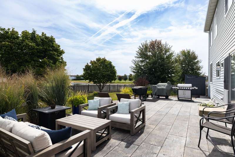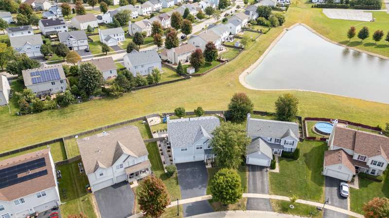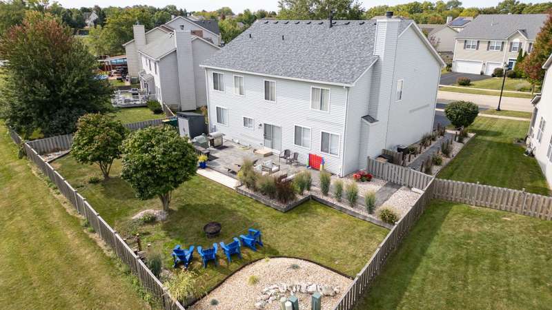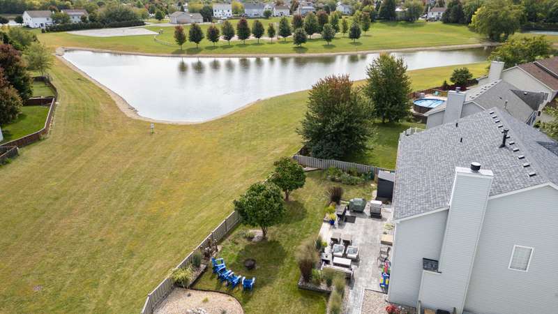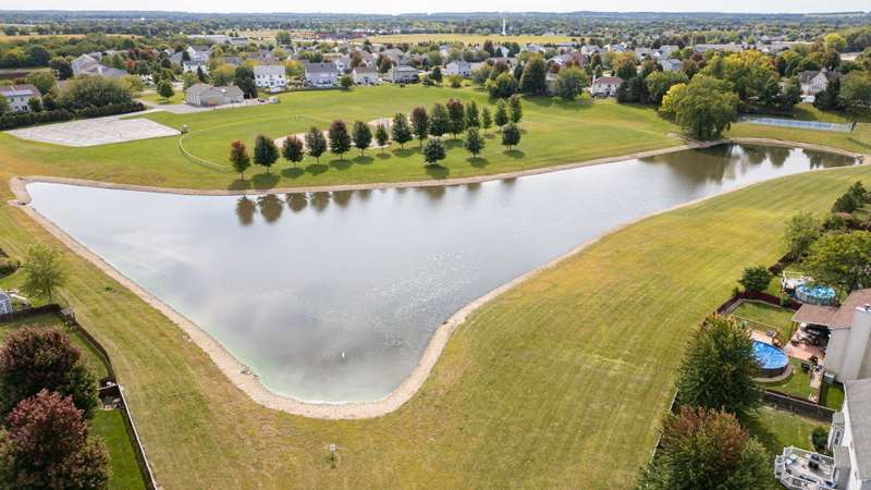 Wow! 5 Bedrooms, 3 Full Baths, 2 Family Rooms, a 3-Car Garage. Related living/in-law potential with first-floor BR, full bath. Fenced yard with new custom "Coastal" style stamped concrete patio & walkway from front to back '23, ornamental grasses, rear open space with tranquil Pond View! Fenced yard. Seriously spacious, this 3,356 sq. ft home offers sought-after first-floor bedroom with an adjoining full bath featuring a step-in tile shower & floor. Spacious 2nd-floor family room/loft perfect for game/TV room. Interior highlights: LVP plank laminate flooring in LR, DR & kitchen w/wide 5" floor molding '21; most interior lighting new '25; four new recessed ceiling lights, LED light for artwork in FR '24; most trim & new six-panel wood doors painted white '25; Exterior trim, garage doors, porch painted '24; Newer electric heater in 3-car garage w/220 volt; gas HWH '21; Updated kitchen w/42" wall-hung cabinets, granite counters, stainless steel appliances, glass & tile backsplash, butler's pantry, center island, under-cabinet lighting, new disposal '24, separate breakfast area w/access to patio. 9-ft. ceilings throughout the 1st floor; wood-burning fireplace with a gas starter in the FR. Convenient 2nd-floor laundry room w/upper cabinets, new GE Profile front-load washer/dryer w/stands '24; Primary bedroom on the 2nd floor with ceiling fan, private bath, double vanity, corner steeping tub, separate shower, & new Moen brushed nickel faucets '25 at vanity. Convenient sitting room off MBR perfect for a home office, workout area, or nursery. You will love this home's move-in-ready condition, fresh paint, new lovely window coverings/decorator rods, generously-sized bedrooms, and ample closet space. Plenty of room to expand in the deep-pour basement. Covered entry porch, 4 new front coach lights, one new coach in rear '25; lovely professional landscaping w/birm, gardens, perennials with "Coastal design"; New architectural shingle roof '23; newer 6x5 Suncast garden shed included; 3 buried downspouts, Serene views! Clubhouse community with pool, tennis & sand volleyball courts, playgrounds, baseball diamonds, open spaces & ponds. Low HOA fee, only $42/month! FHA assumable mortgage at 2.99 with apx 25 years left on apx $200K. Don't miss this opportunity!