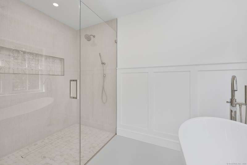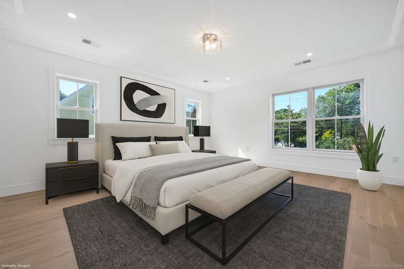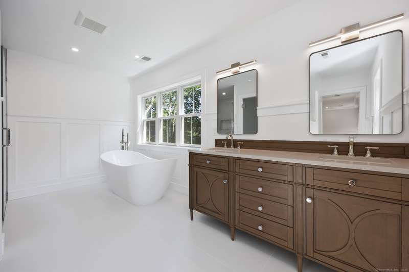 Stunning new construction in Fairfield's desirable University area! Re-Built from foundation up with taste, blends thoughtful design with quality craftsmanship. Privately set yet close to town, train, beaches, and top schools, the home features an ideal layout for modern living. Step into a welcoming foyer with open sightlines. Main level features a mudroom with built-ins and pet/boot wash, a chef's kitchen with Thermador appliances, quartz countertops, and a large island opening to a dining room with coffered ceilings. French doors lead to a spacious backyard-ideal for entertaining or a future pool. Enjoy a bright family room with fireplace and dry bar, powder room + a main-floor bedroom/office Upstairs offers 4 spacious bedrooms and 3 full baths, including a luxurious primary suite with dual walk-in closets, spa-like bath with soaking tub overlooking the serene backyard, a curbless shower, and private water closet. Then an En-Suite Bedroom and two others connected by a Jack & Jill ba
