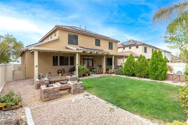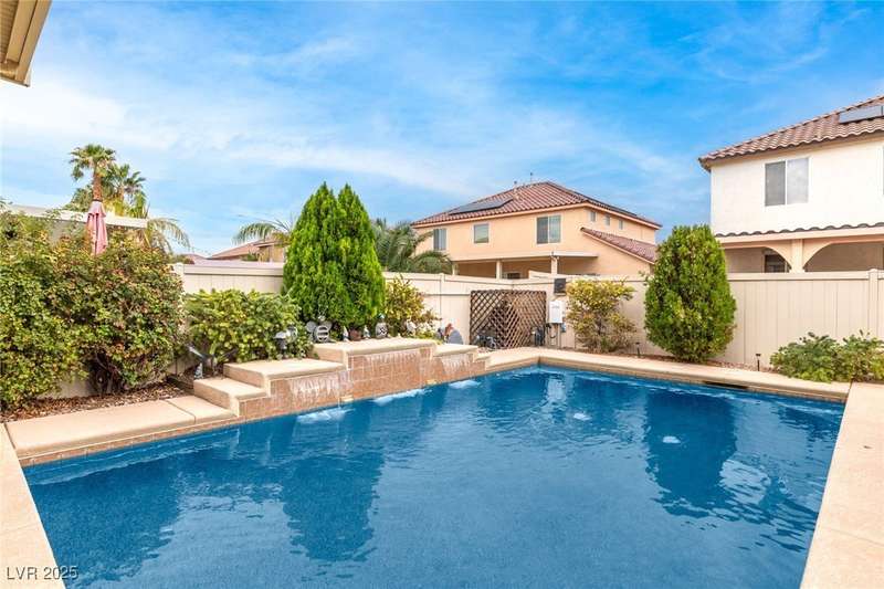 Freshly painted WHITE for move in ready!!! Get ready to fall in love with this 4-bedroom, 2.5-bathroom two-story home with a den and a loft that has it all! Step into your very own backyard paradise—complete with a sparkling enclosed pool with a waterfall, a covered patio great for gatherings, and lush real grass that’s a rare gem in Las Vegas. Whether you’re hosting friends, enjoying a sunny afternoon, or relaxing by the water, this space is designed for making memories. With solar panels to help keep energy costs down and a low HOA, this home is as practical as it is beautiful. The home has also been freshly painted egg shell white! All of this, right in the heart of the city—close to everything Las Vegas has to offer!
