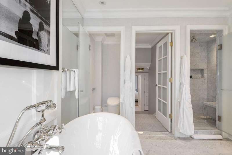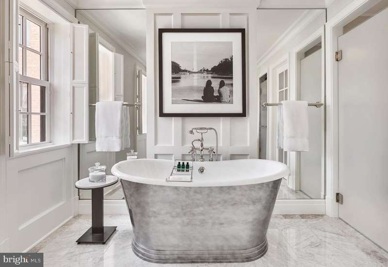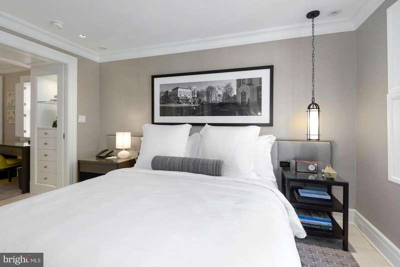 Rosewood Washington, D.C. offers an exclusive opportunity for long-term stays in its newly renovated, one-of-a-kind townhouses. This 1 B/R and 1.5 bath townhouse nestled on a picturesque, tree-lined street in the heart of Georgetown, these historic residences have been thoughtfully reimagined by renowned designer Thomas Pheasant, seamlessly blending modern elegance with timeless charm. Designed for extended stays, each townhouse provides the comforts of home with the luxury of a five-star hotel. Residents enjoy full access to Rosewood's world-class amenities, including in-room dining from CUT D.C. by Wolfgang Puck, the , high-speed Wi-Fi, an intimate fitness center, and complimentary use of Rosewood bicycles. The townhouse's main level welcomes you with a gracious living area, featuring a functioning fireplace and sophisticated, locally inspired decor. The second level boasts a fully equipped kitchen with top-of-the-line appliances by SMEG, Williams Sonoma, KitchenAid, and Nespresso, alongside a sunlit communal dining space with direct access to a private, fully furnished back patio-perfect for entertaining or quiet relaxation. Upstairs, the master bedroom offers a designer bed dressed in Rivolta Carmignani linens, a separate dressing area, and a tranquil atmosphere designed for rest and rejuvenation. The topmost level features a spa-like master bathroom, complete with a deep-soaking tub, walk-in rainforest shower, and heated marble floors. A lower level adds convenience with a separate powder room and an in-unit washer and dryer. Throughout the residence, a neutral palette of pale platinum tones is accented by spring greens and cool blues, complementing custom furnishings and a curated art collection showcasing local artists. This thoughtfully designed space merges classic residential elements with contemporary luxury, making it an ideal choice for those seeking an extended stay in Washington, D.C. Available for short and long-term leases.