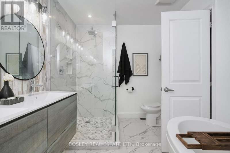Beautifully renovated semi-detached backsplit in the heart of Meadowvale! Situated on a rare, deep irregular lot 20.07 ft x 191.45 ft, this home offers exceptional space both inside and out. The main level features a bright, open living and dining area with large windows that fill the space with natural light. The modern kitchen, also on this level, showcases granite countertops, stainless steel appliances, and overlooks the spacious family room below - perfect for everyday living and entertaining. Step down to the ground-level family room with a 3-piece bathroom, and a large bedroom perfect for a guest or teenager. Upstairs, you'll find two generously sized bedrooms. The primary suite, created by combining two rooms into one, offers a spacious retreat with its own private sitting area. This exquisite space can easily be converted back into two separate bedrooms if desired. Also on this floor is a large 5-piece semi-ensuite bathroom featuring a separate shower and a luxurious soaking tub. The basement has a separate entrance to an income generating unit. It features a living room, large kitchen with ensuite laundry and 2 bedrooms. Fabulous tenants who would love to stay. Step outside to your private backyard oasis! Enjoy a covered seating area, a stunning Heated saltwater in-ground pool, waterfall, pond and plenty of space for entertaining, gardening, or play. Furnace and Air replaced in 2022, Roof 2018, Stucco 2018 and window 2016. Gas line for BBQ is available.