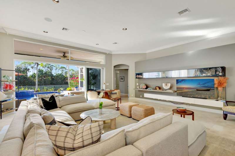 Full Golf Membership Available with this rental. The spectacular private water views with screened in covered patio and outdoor patio, heated pool is perfect for relaxing and entertaining. This newly remolded home offers spacious great room floor plan, private water vistas. The master bedroom with picturesque water views, sitting area, and generous master bathroom and custom his and hers closets. Two guest suites offer privacy for family and guests. The newly renovated home offers, new marble flooring throughout, LED lighting, subzero fridge, Bosch oven, microwave and dishwasher, Samsung washer and dryer.