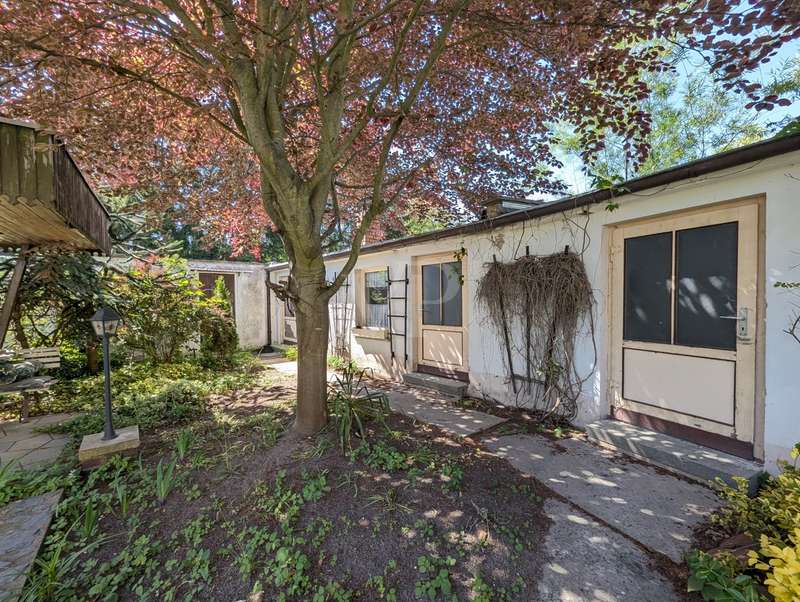 This detached single-family home from 1933 offers an ideal basis for individual living dreams with its solid building structure and spacious plot. The house was renovated between 1975 and 1990 and is now in need of modernization and refurbishment - ideal for buyers looking for a project with character and development potential. The generous living space is spread over two floors (first floor and top floor) with a total of 6 living rooms, a kitchen and a daylight bathroom with shower. A fireplace has been integrated into the living room, which can be turned back into the highlight of the room with a little craftsmanship. From the living room, a small staircase leads directly to the garden-like outdoor area, which offers plenty of space for leisure and relaxation. The flat roof area on the top floor, which is accessible via a living room, offers plenty of potential and is ideal for use as a spacious roof terrace. With the right design, an additional, attractive outdoor area with plenty of light and a view of the property's greenery can be created here. The house has a full basement. The cellar is in very good condition and offers plenty of storage space or potential uses for hobbies and workshops. The heating and oil tanks have a separate room here. The plot has a pleasant layout and surprises with a green oasis at the rear - perfect for garden lovers, families with children or simply for relaxing. The property is complemented by a practical outbuilding with versatile potential - whether as storage, a studio or hobby room. There is also a garage with an adjoining room on the property, which offers additional space for tools, garden equipment or bicycles.