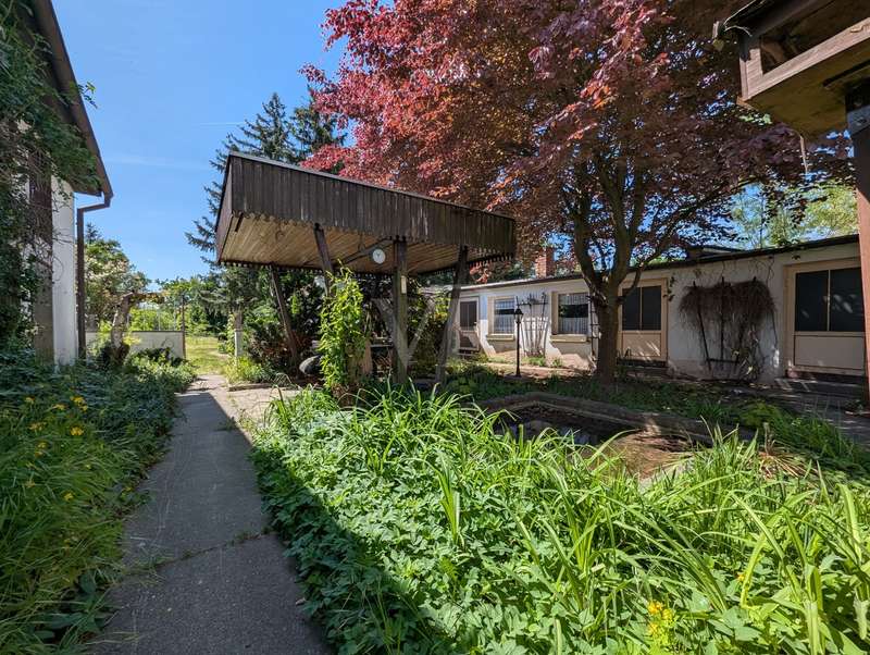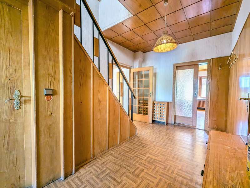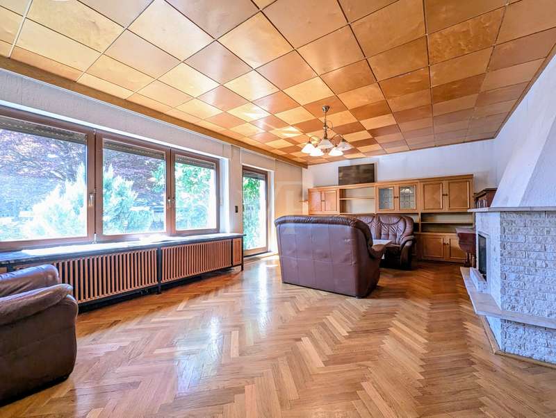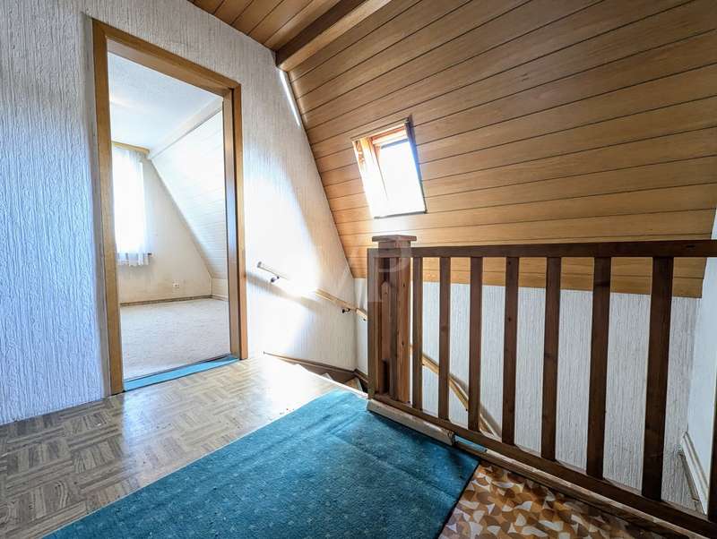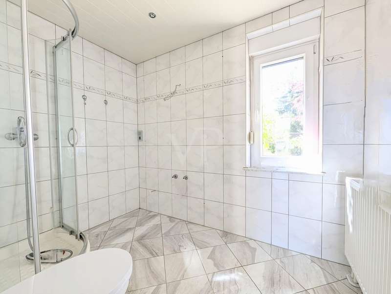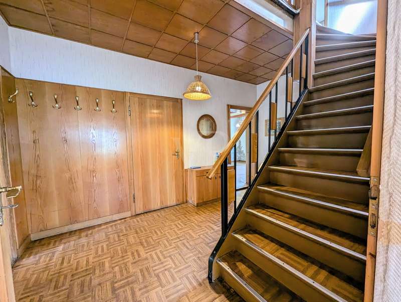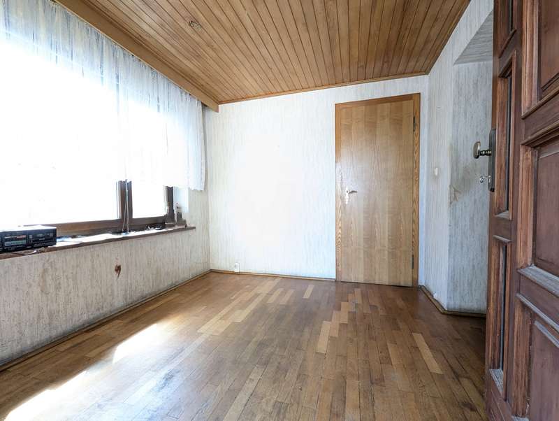 This detached single-family home from 1933 offers an ideal basis for individual living dreams with its solid building structure and spacious plot. The house was renovated between 1975 and 1990 and is now in need of modernization and refurbishment - ideal for buyers looking for a project with character and development potential. The generous living space is spread over two floors (first floor and top floor) with a total of 6 living rooms, a kitchen and a daylight bathroom with shower. A fireplace has been integrated into the living room, which can be turned back into the highlight of the room with a little craftsmanship. From the living room, a small staircase leads directly to the garden-like outdoor area, which offers plenty of space for leisure and relaxation. The flat roof area on the top floor, which is accessible via a living room, offers plenty of potential and is ideal for use as a spacious roof terrace. With the right design, an additional, attractive outdoor area with plenty of light and a view of the property's greenery can be created here. The house has a full basement. The cellar is in very good condition and offers plenty of storage space or potential uses for hobbies and workshops. The heating and oil tanks have a separate room here. The plot has a pleasant layout and surprises with a green oasis at the rear - perfect for garden lovers, families with children or simply for relaxing. The property is complemented by a practical outbuilding with versatile potential - whether as storage, a studio or hobby room. There is also a garage with an adjoining room on the property, which offers additional space for tools, garden equipment or bicycles.