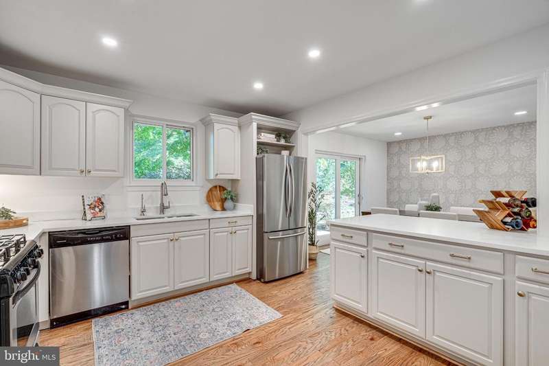 Welcome to 9896 Becket Court, a Regent model in Kings Park West. This 4 bedroom, 3 full bath home has been lovingly improved for sale and it is so very nice! As you approach this home, you are likely to be greeted by dappled sunlight from the large, front-yard tree. You'll love the replaced front door and you'll love even more the freshly refinished hardwood floors that run through the entire main level of the house as well as upstairs through the bedrooms (refinished 2025 with our favorite custom stain!). The focal point of the living room is the stunning gas fireplace with beautiful tile surround. Wallpaper in the dining room and new lighting bring this dining room to life while the open kitchen with new quartz counters (2025) will make cooking and sharing meals a delight! Upstairs, you'll find three super cute bedrooms and two completely renovated full bathrooms--both remodeled in 2025. Head back down to the lower level where you'll find our favorite luxury vinyl plank flooring (2025)--this durable flooring connects beautifully with the refinished floors from the upper two levels and we just love it! This level includes the fourth bedroom, a cozy family room with access to the back yard, and the third full bathroom--an exceptional floorplan for guests and family. But wait! There's one more level in this roomy home! The fourth level is such a gem. The LVP continues on the entire level through the recreation room, office, and the super cute laundry room. Kings Park West is such a special neighborhood. There's a large lake with a 2 mile nature trail, several parks and playgrounds, tennis and sports courts, a soccer field and a KPW soccer league for the littles (seriously, so cute), 3 community pools with NO WAITING LIST, quick access to Metro bus and the VRE, and just a short distance from University Mall Theatre which has the best popcorn in Fairfax County.