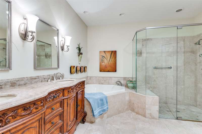 This Las Colinas location with access to Las Colinas Country Club has a most prestigious address. This particular home is that sought-after one-story floor plan with high-end finish out. This home has been maintained and updated in the best of taste. The walls of windows flood the home with natural light and show off the gleaming hardwood floors. There is a very roomy two-car garage. Security is enhanced by a gated entry as well as a security patrol. All the rooms are large. The spacious Living Room features a beautiful fireplace, built-in bookcases and walls of windows overlooking the impressive garden. The Dining Room is large enough for a banquet-sized table. The Chef's Kitchen is fun for all your guests to gather. The Utility Room accommodates a fuil-size washer and dryer with extra room for a sink. The Primary Bedroom is very roomy and comfortable with an adjoining luxury Bath. The other Bedroom has its own full Bath and also bookcases and a built-in desk. The garden areas are very special. The gorgeous custom drapes are controlled by remotes. Thls home is in move-in condition. See it today.